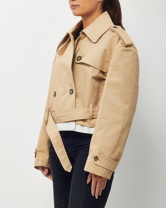 Beige Nylon Padded Quilted Belted Jacket - US 10