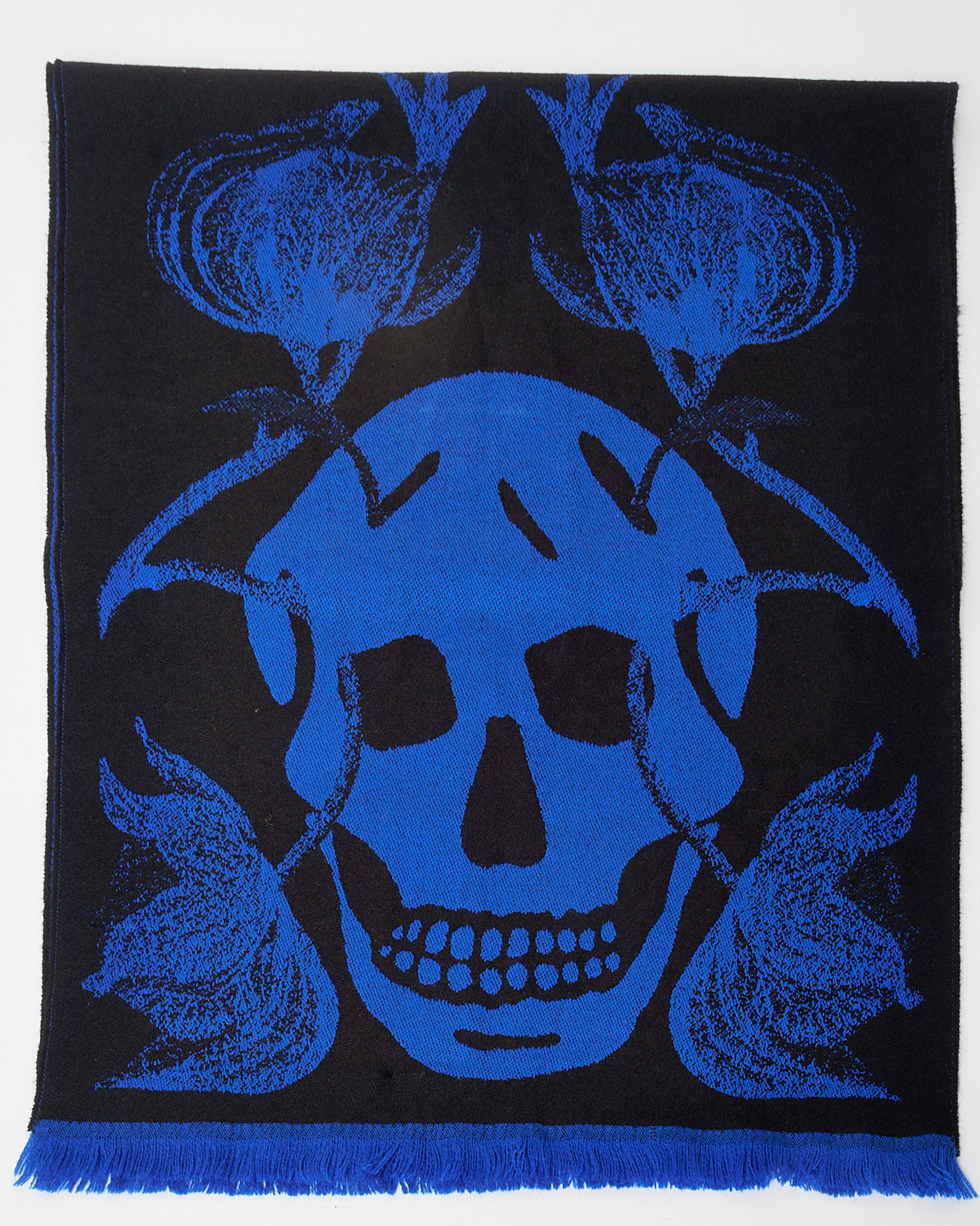 Explore Alexander McQueen's exquisite collection of accessories, featuring this certified pre-owned Blue Skull & Leaf Print Knit Scarf. Embodying timeless elegance and modern sustainability, each piece, including favorites like this, is authenticated by Retyche. Discover sustainable luxury — shop our current treasures or find inspiration for your next coveted find.