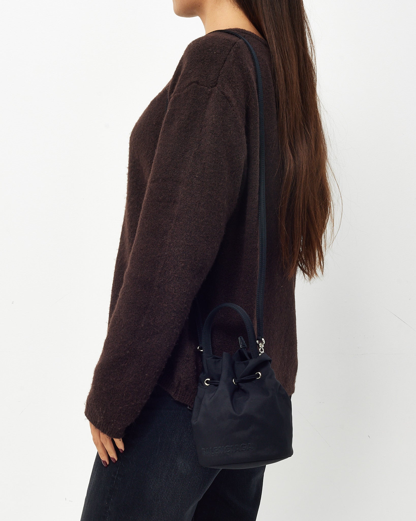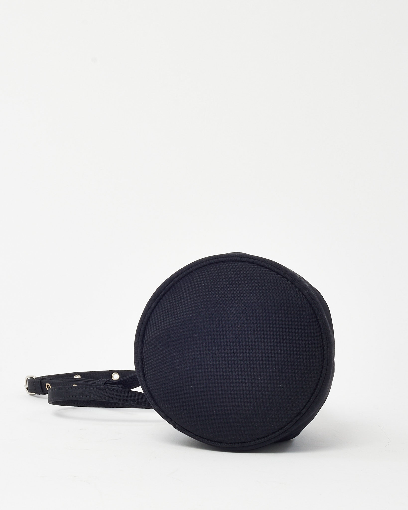 Black Nylon Logo Wheel Drawstring XS Bucket Bag with Strap