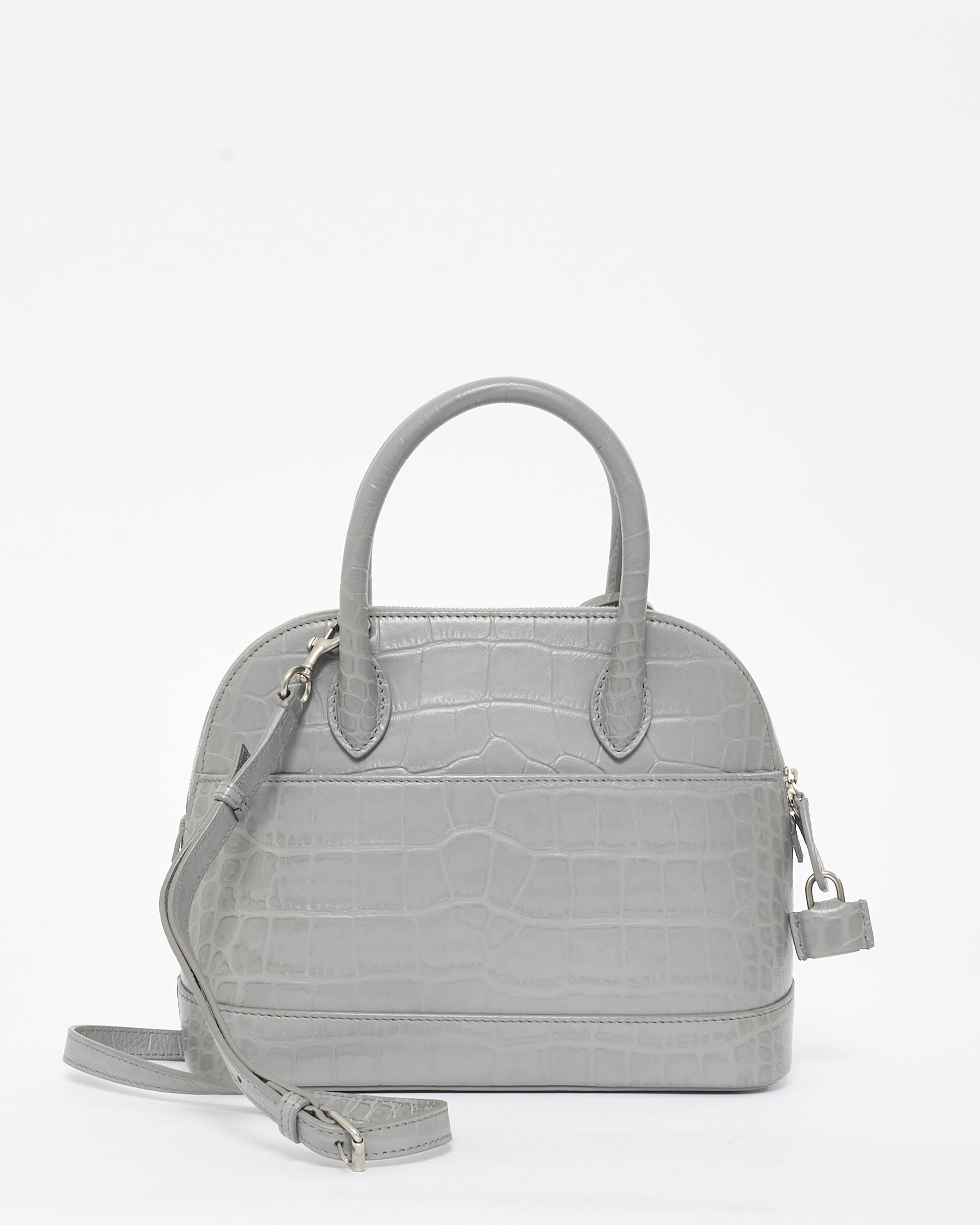 Light Grey Croc Embossed White Logo Ville Small Top Handle Bag