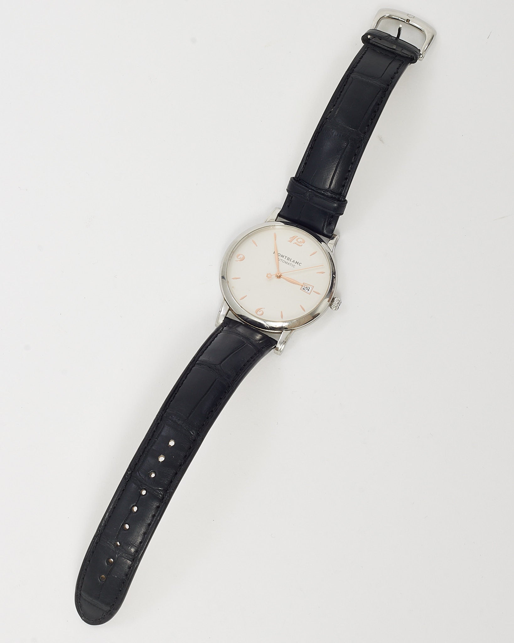 Stainless Steel, White Dial, Black Croc Leather Clifton Baumatic 40mm Watch