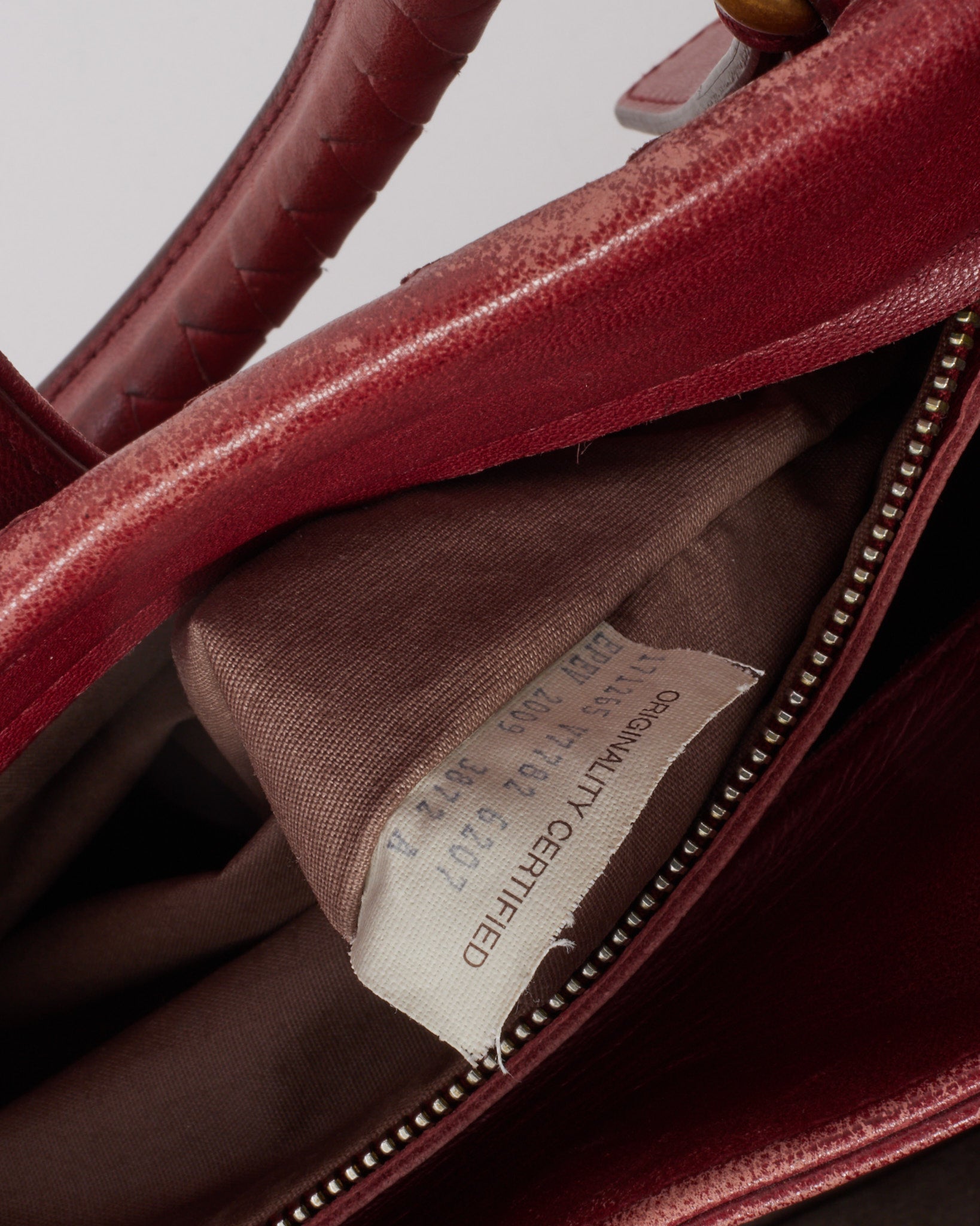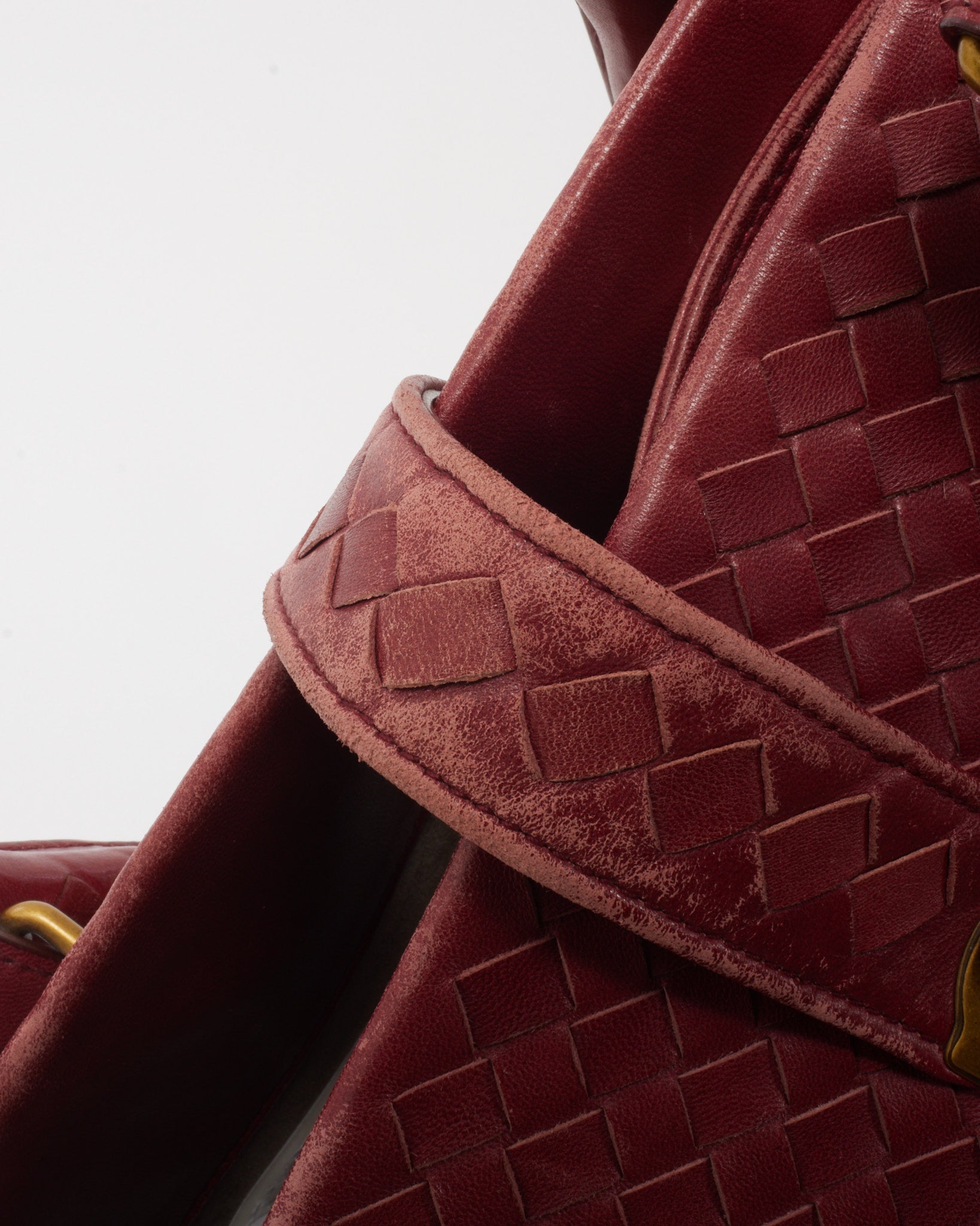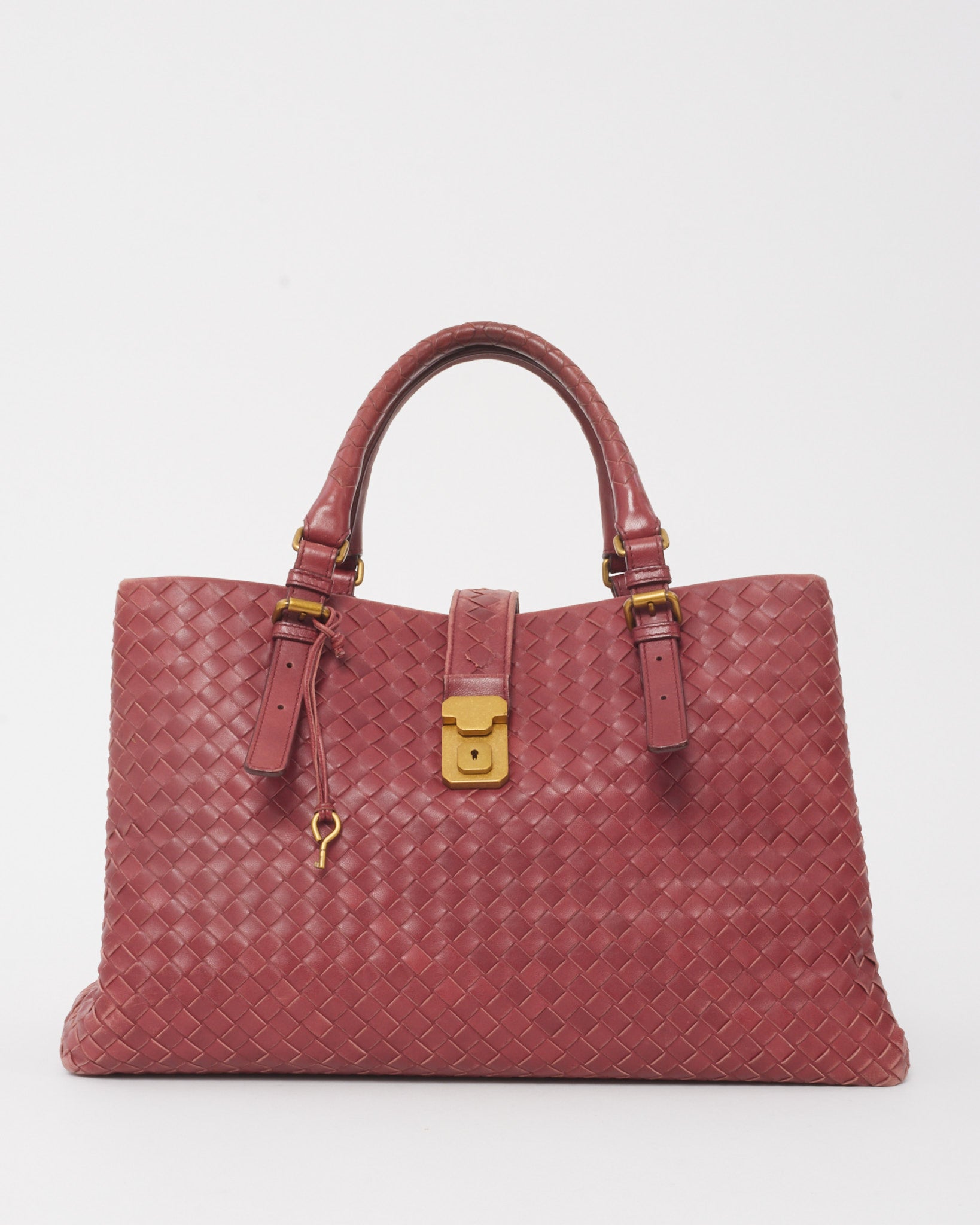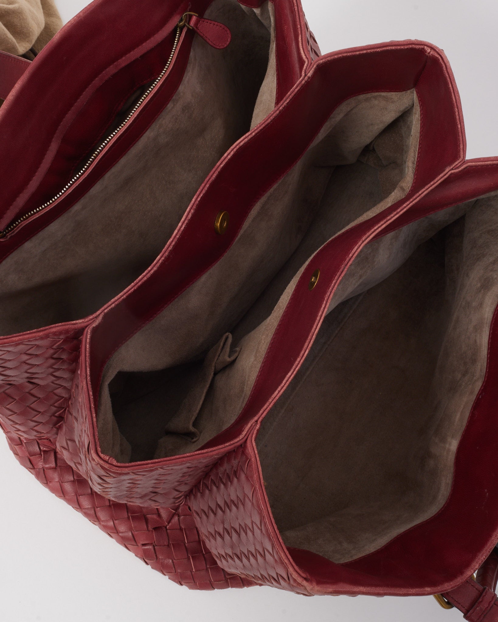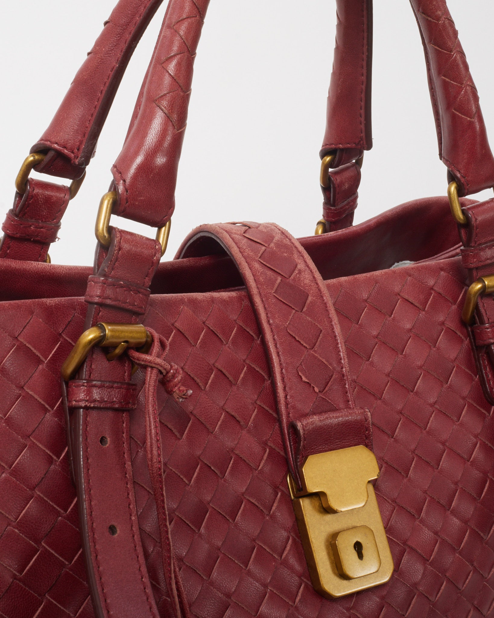 Burgundy Red Intrecciato Leather Medium Roma Tote Bag