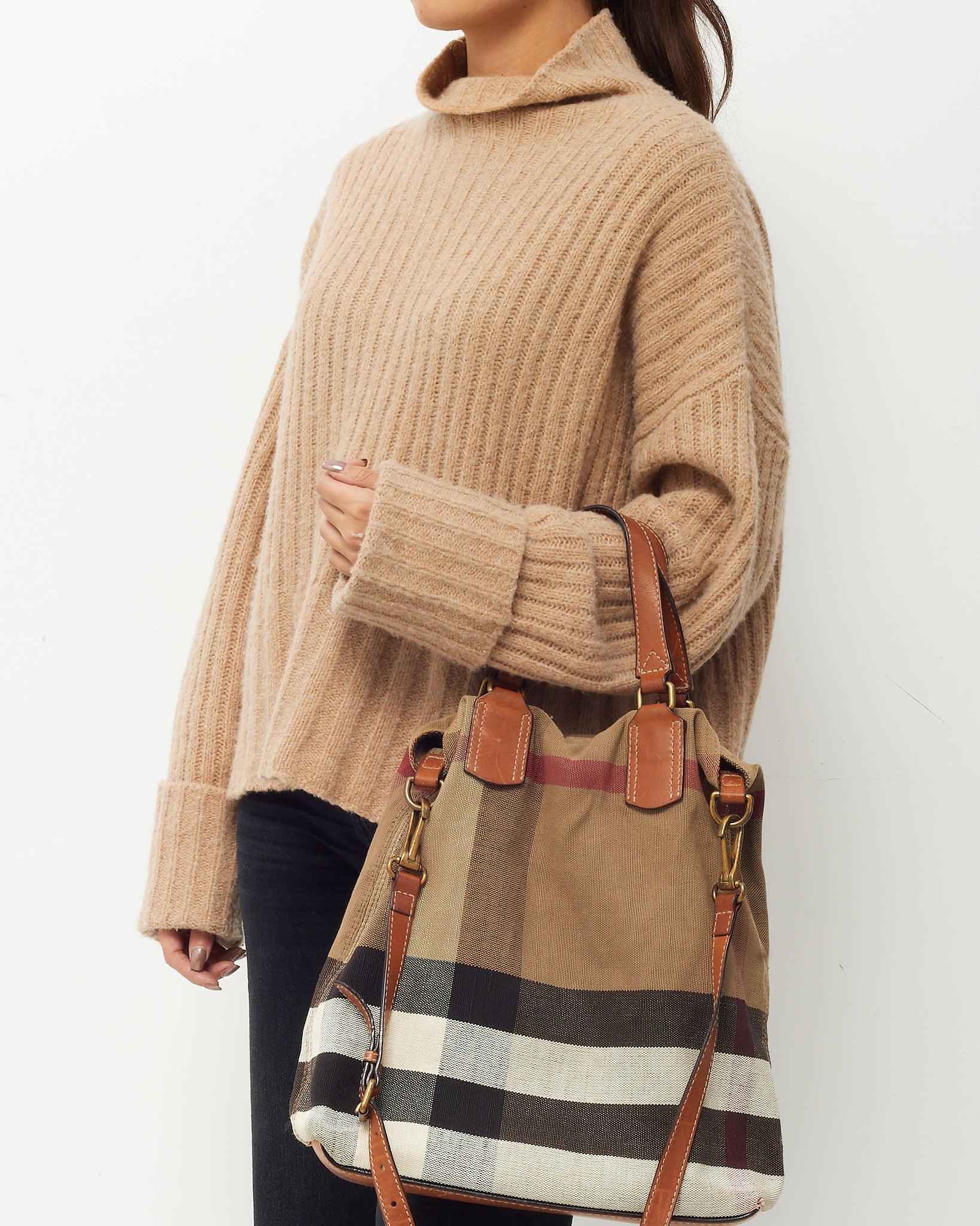 Beige House Check Canvas Medium Tottenham 2Way Tote Bag with Pouch