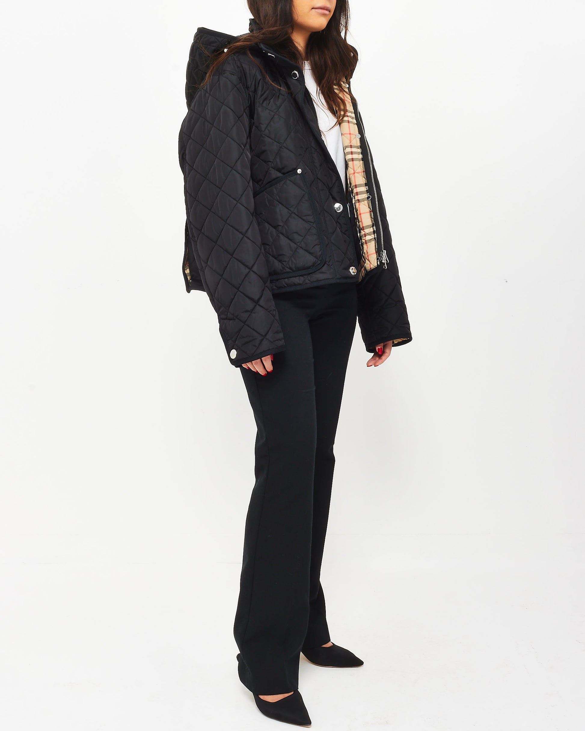 Wrap yourself in effortless sophistication with this authentic pre-owned Burberry Black Quilted Nylon Short Padded Coat. Designed for both comfort and style, this elegant outerwear piece features a sleek quilted design crafted from premium nylon, offering lightweight warmth without compromising on luxury. The tailored silhouette and short length make it versatile for layering over your favorite ensembles, while the subtle Burberry detailing adds a refined touch of heritage. With its padded construction, this coat delivers cozy insulation, perfect for brisk city strolls or weekend getaways.