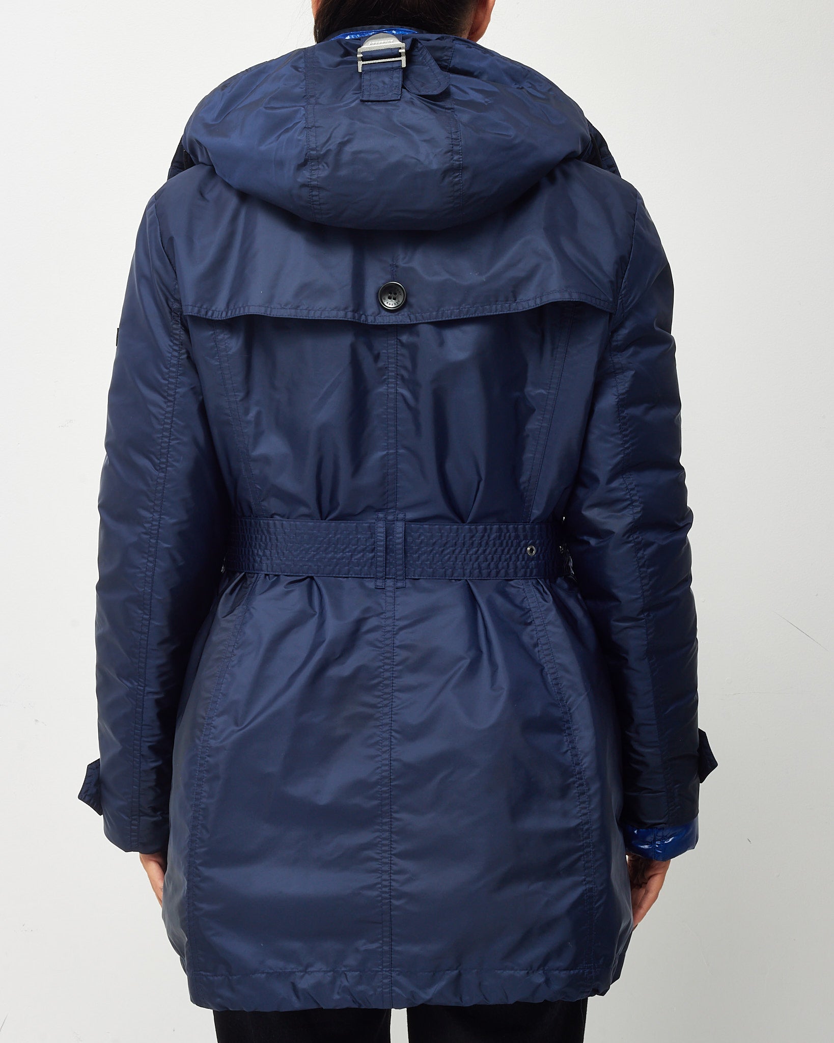 Navy Nylon and Down Puffer Lined Hooded Midi Trench Coat - US 14