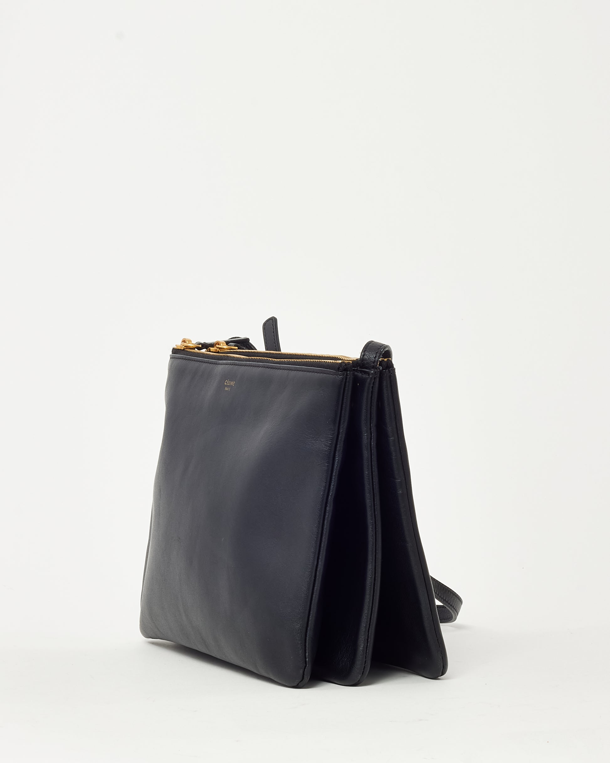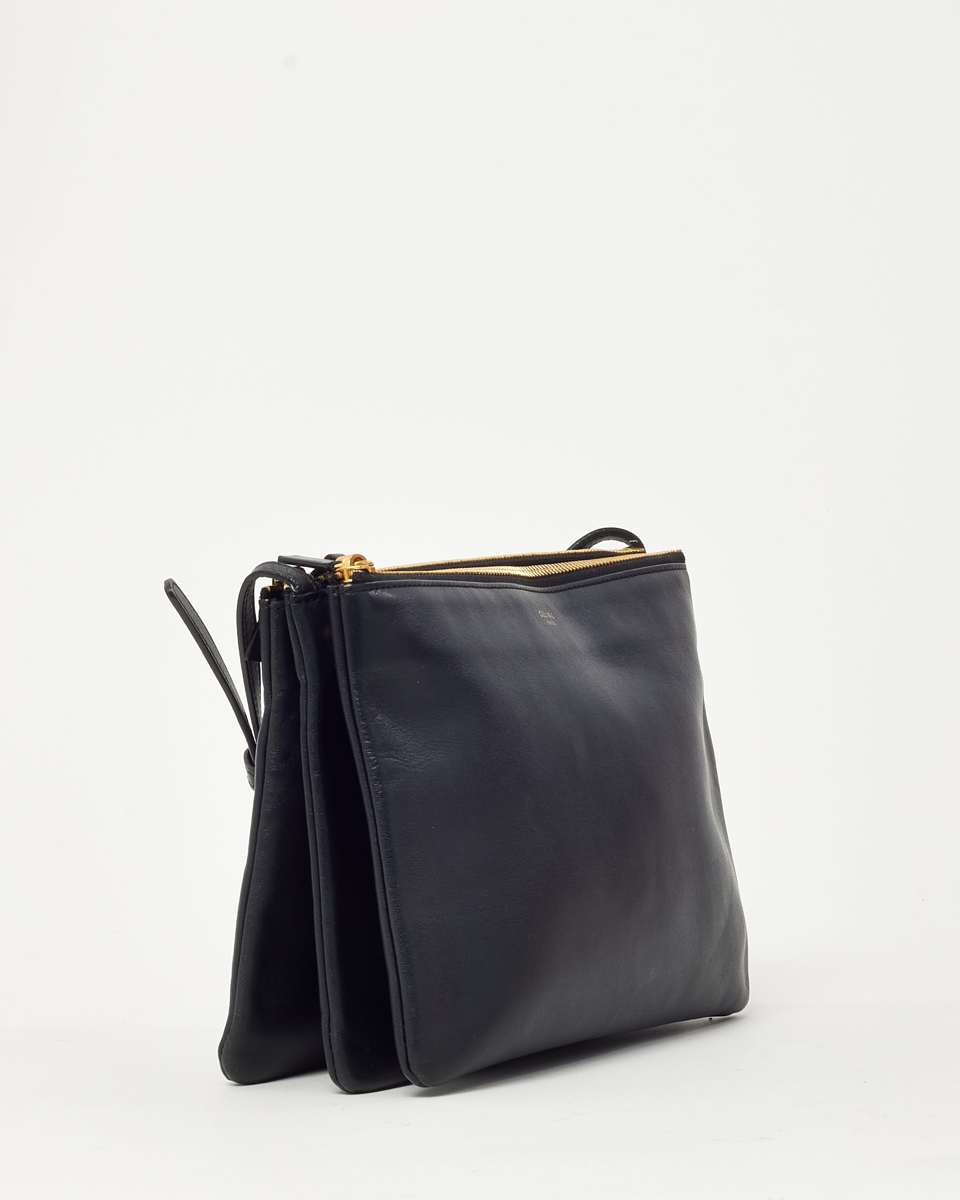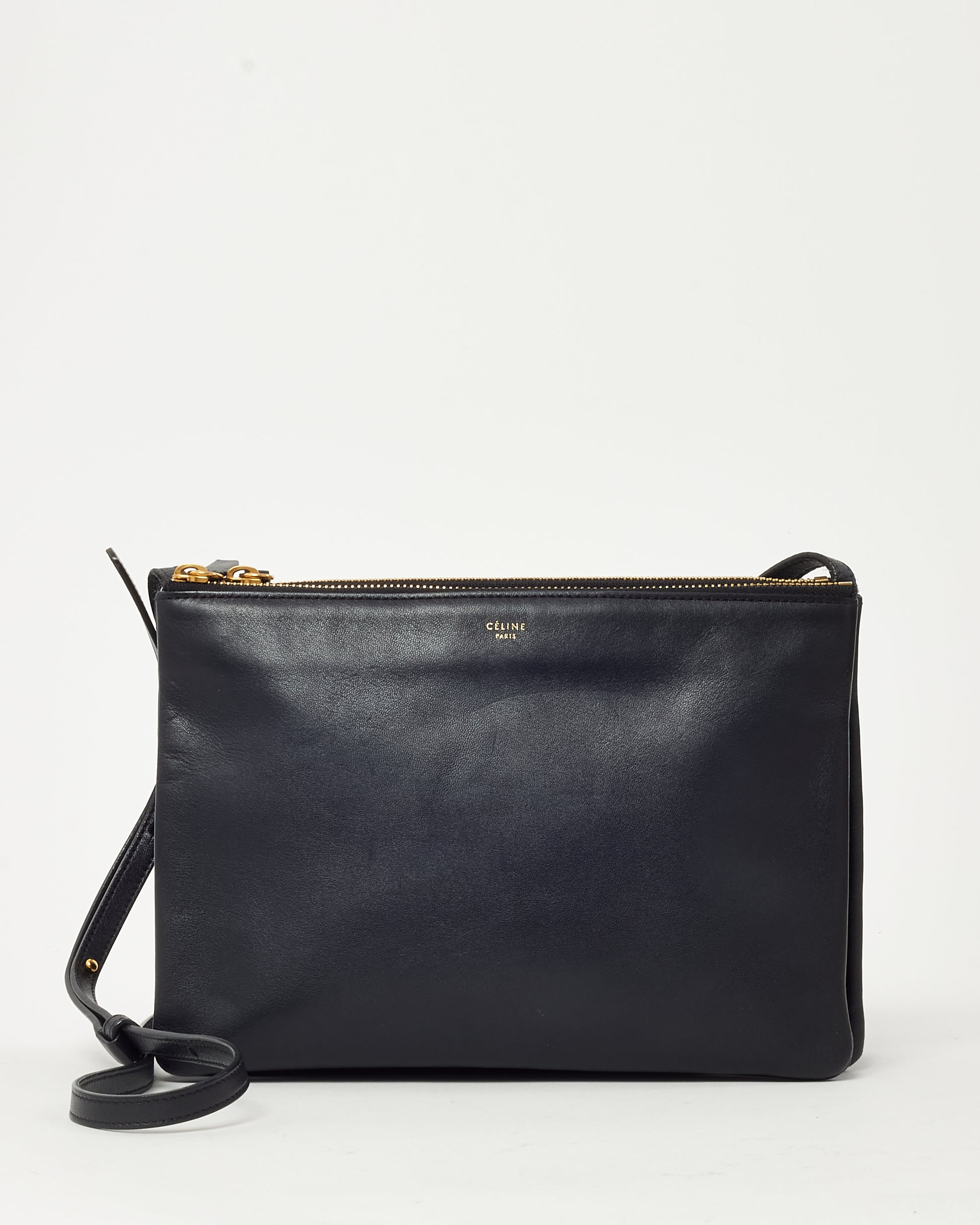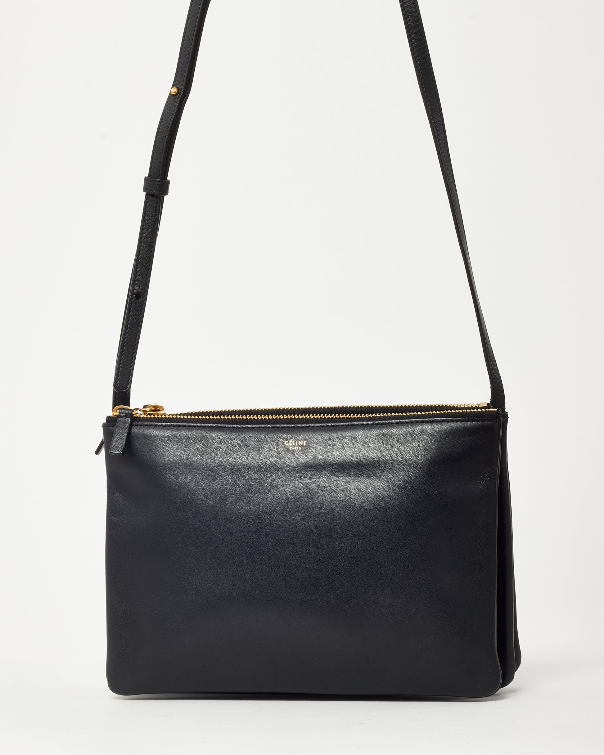 Sublimez votre look quotidien avec ce sac Céline Classique Triomphe authentique d'occasion, confectionné en cuir de veau brillant noir élégant. La silhouette structurée est raffinée par le fermoir iconique Triomphe doré, offrant un clin d'œil intemporel au minimalisme parisien. Parfaitement dimensionné pour contenir vos essentiels quotidiens, ce sac à bandoulière moyen est doté d'une sangle réglable pour un porté polyvalent — en bandoulière ou à l'épaule. Une véritable icône du luxe discret pour la garde-robe moderne.