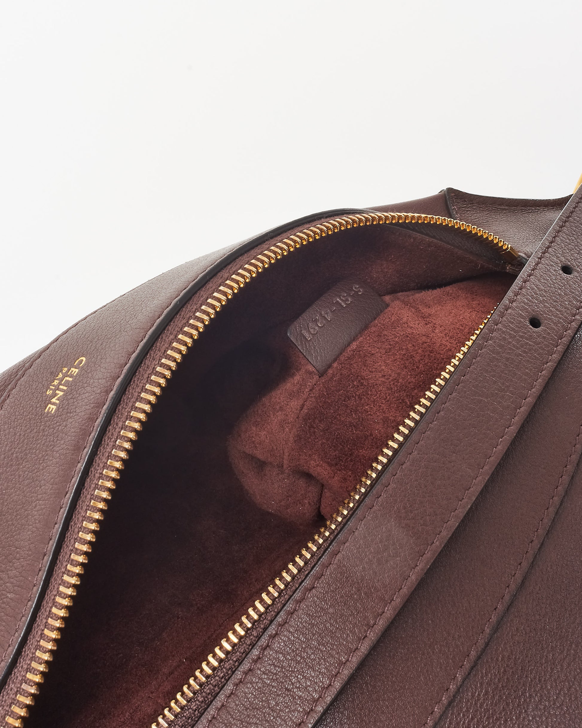 Understated luxury at its finest—this pre-loved authentic Celine Medium Romy Shoulder Bag in rich chocolate burgundy leather is the definition of quiet elegance. Crafted in smooth calfskin with minimal hardware and clean lines, this designer shoulder bag embodies the effortless sophistication Celine is known for.