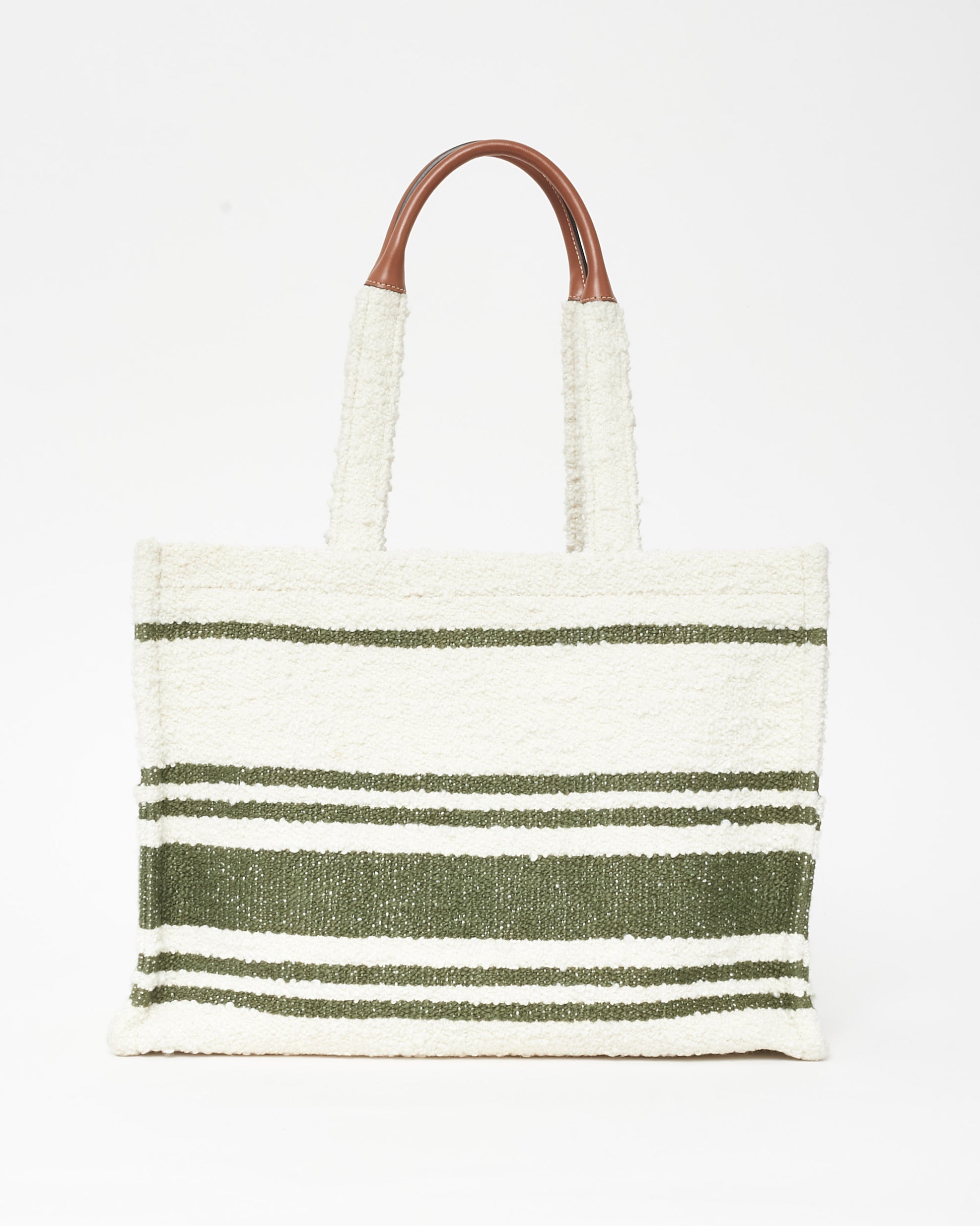 Ivory & Green Shearling Brown Triomphe Leather Logo Tote