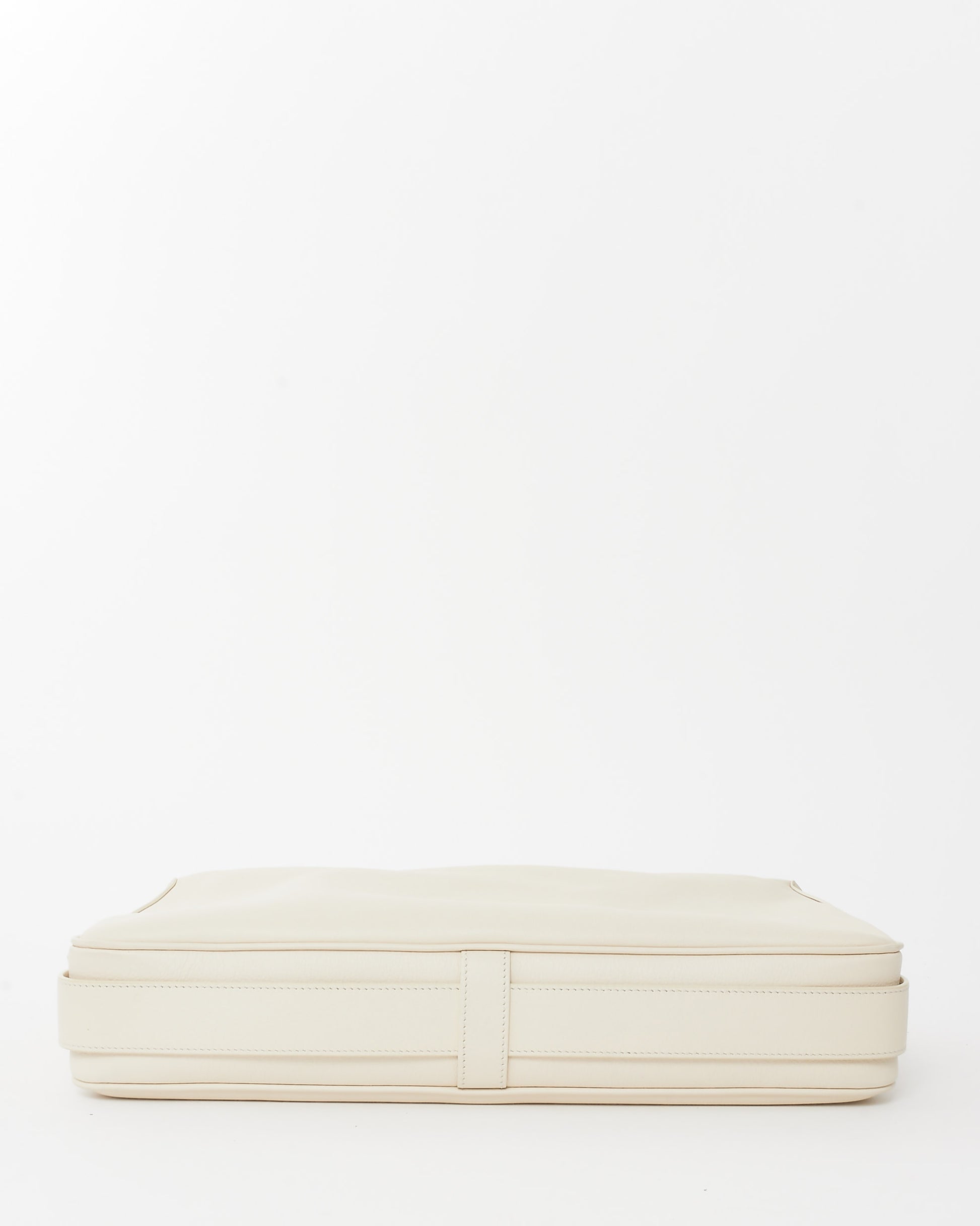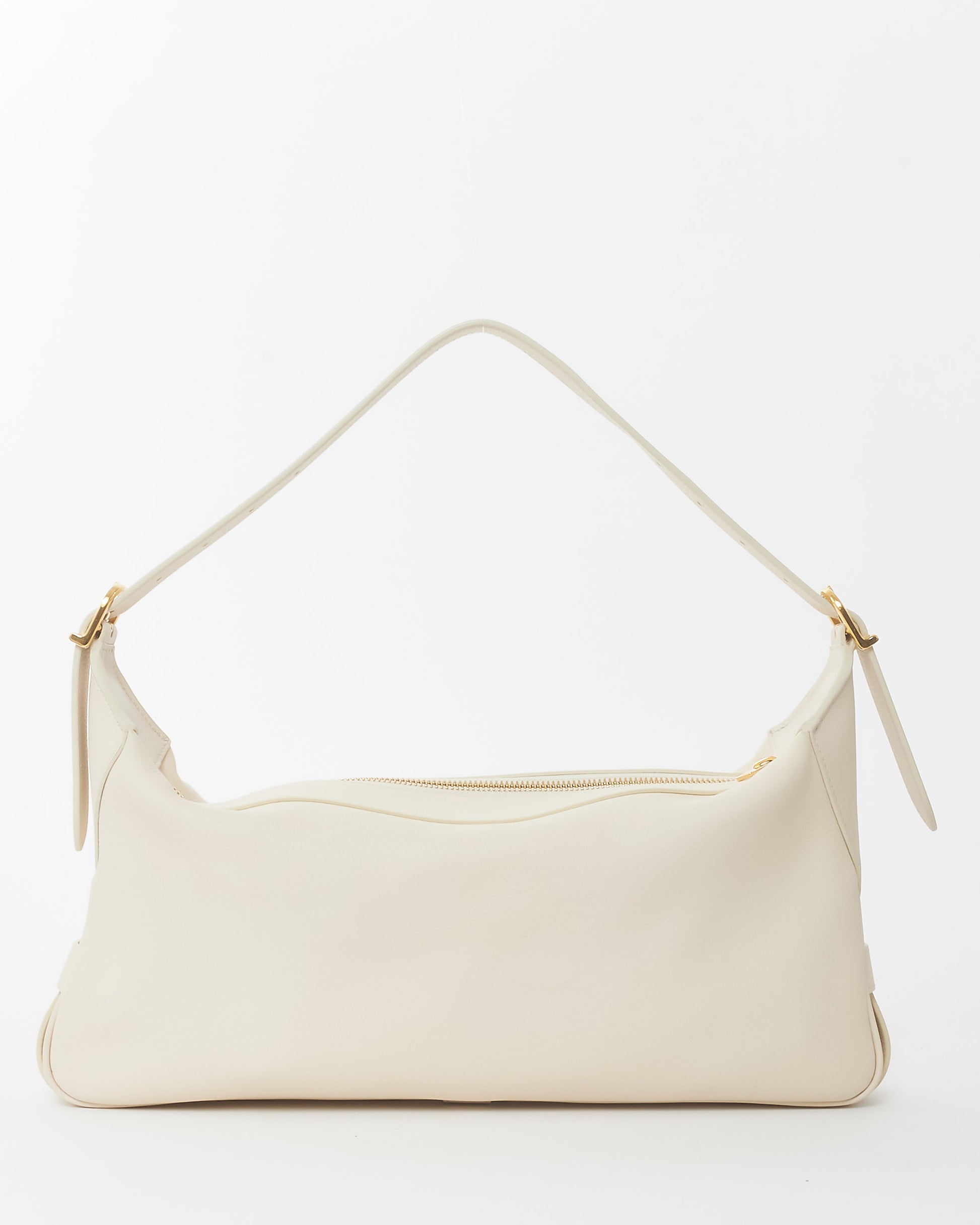 Effortlessly sleek and timeless, the pre-owned authentic Celine White Leather Medium Romy Shoulder Bag is a study in minimalist elegance. Crafted from buttery smooth white leather, this refined silhouette features a curved, slouchy design that molds gracefully to the body for a relaxed yet polished look.