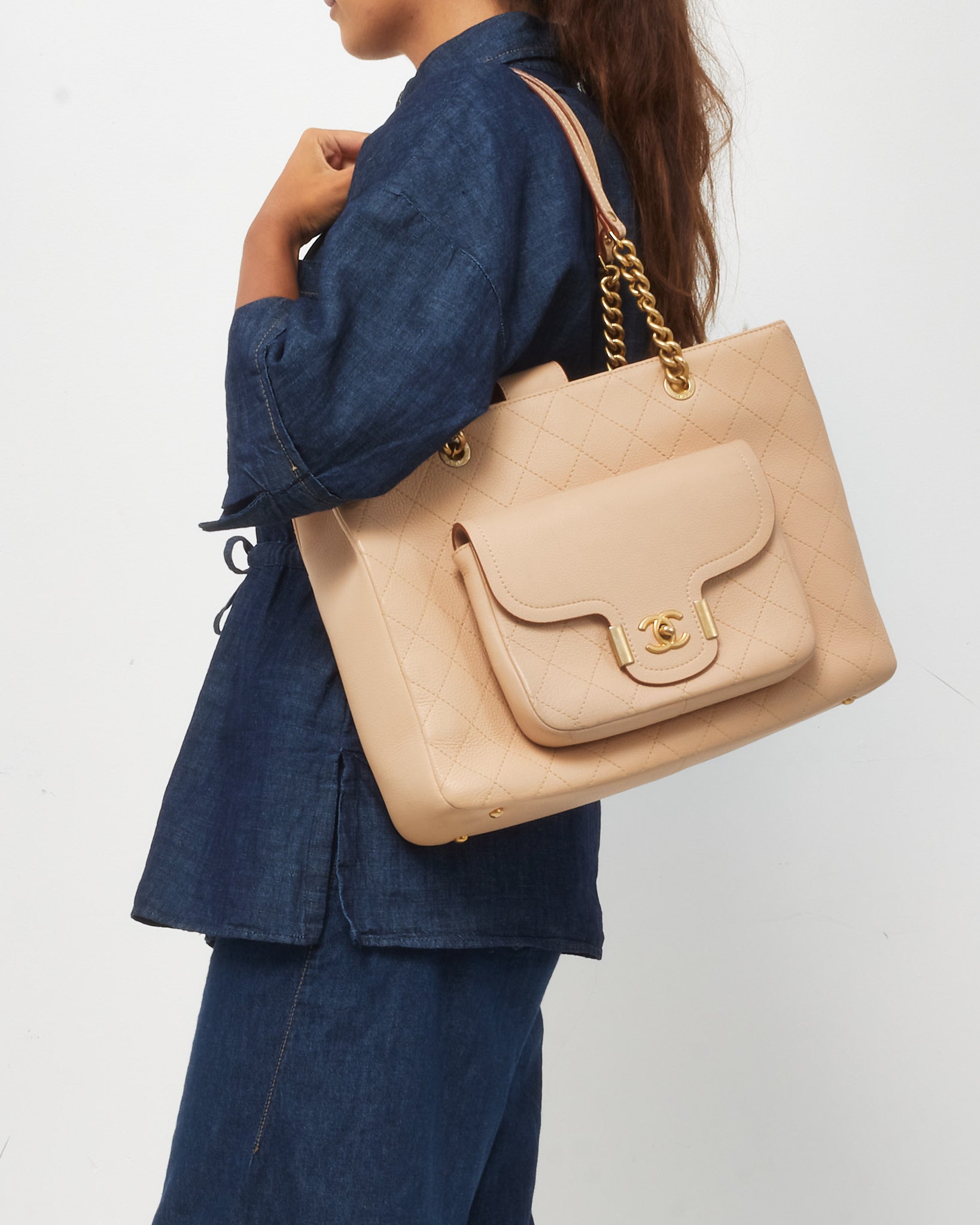 Beige Caviar Leather Large Archi Chic Shopping Tot Bag GHW