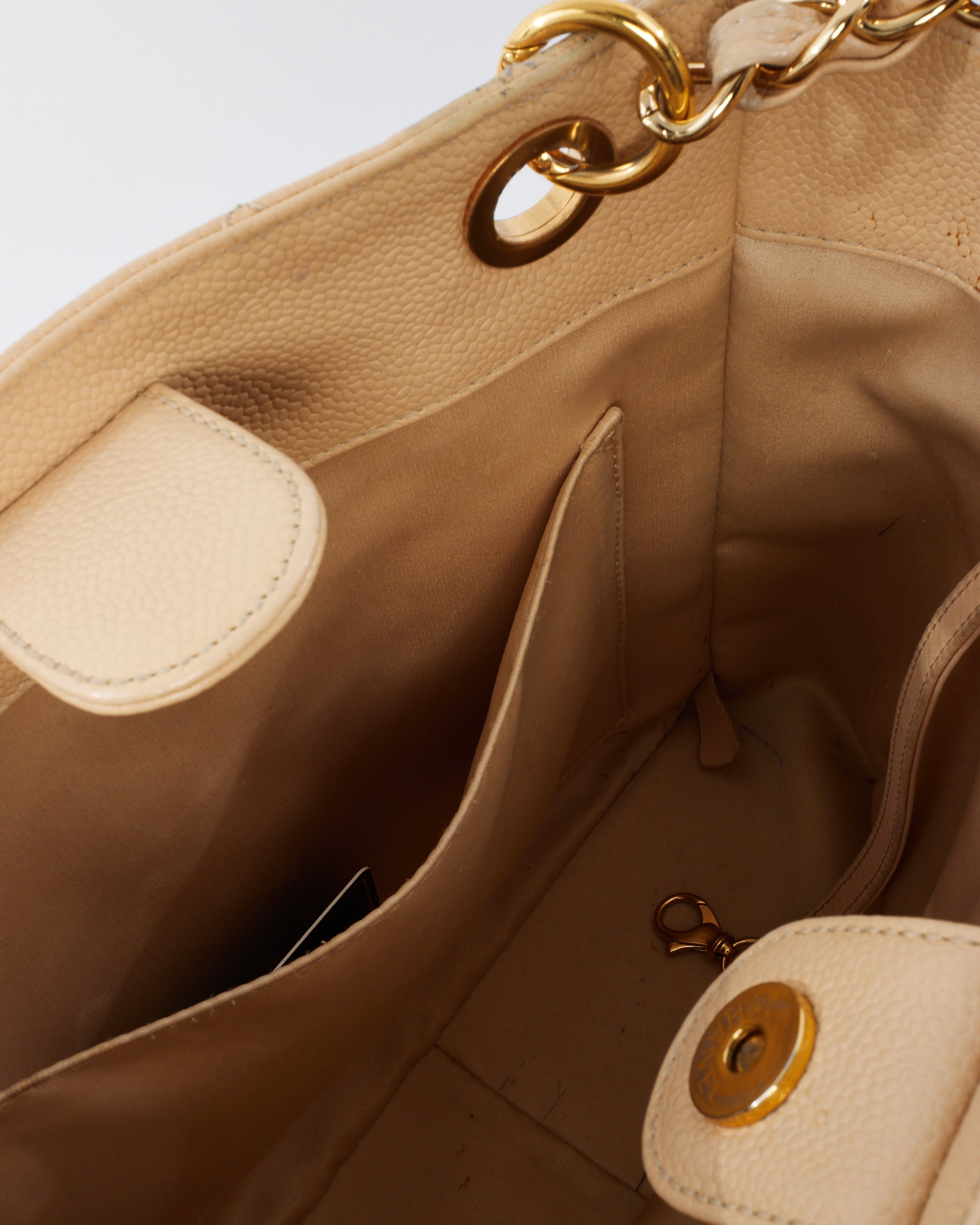 Explore Chanel's exquisite collection of handbags, featuring this certified pre-owned Beige Caviar Leather PST Shopping Tote. Embodying timeless elegance and modern sustainability, each piece, including favorites like this, is authenticated by Retyche. Discover sustainable luxury — shop our current treasures or find inspiration for your next coveted find.