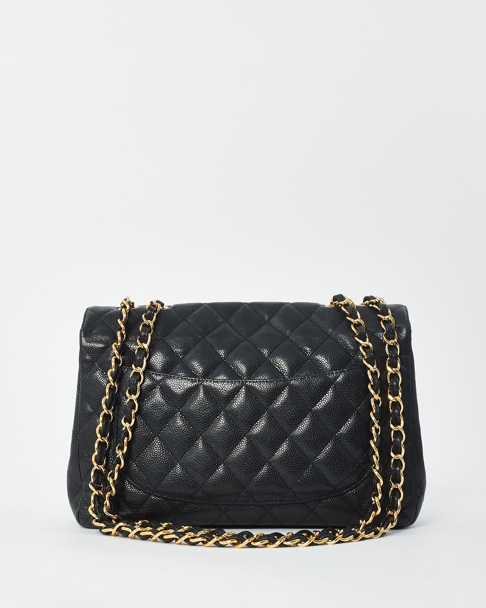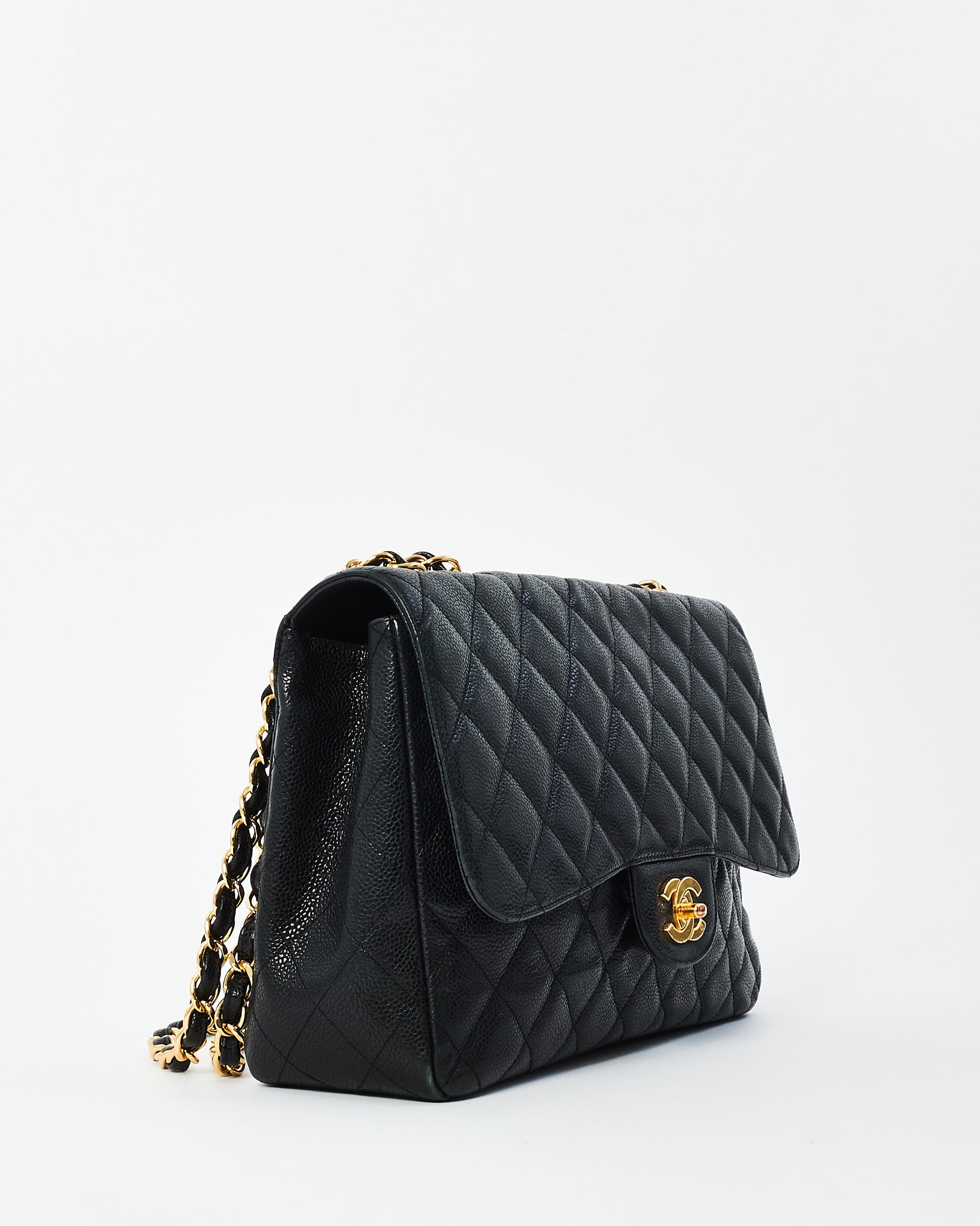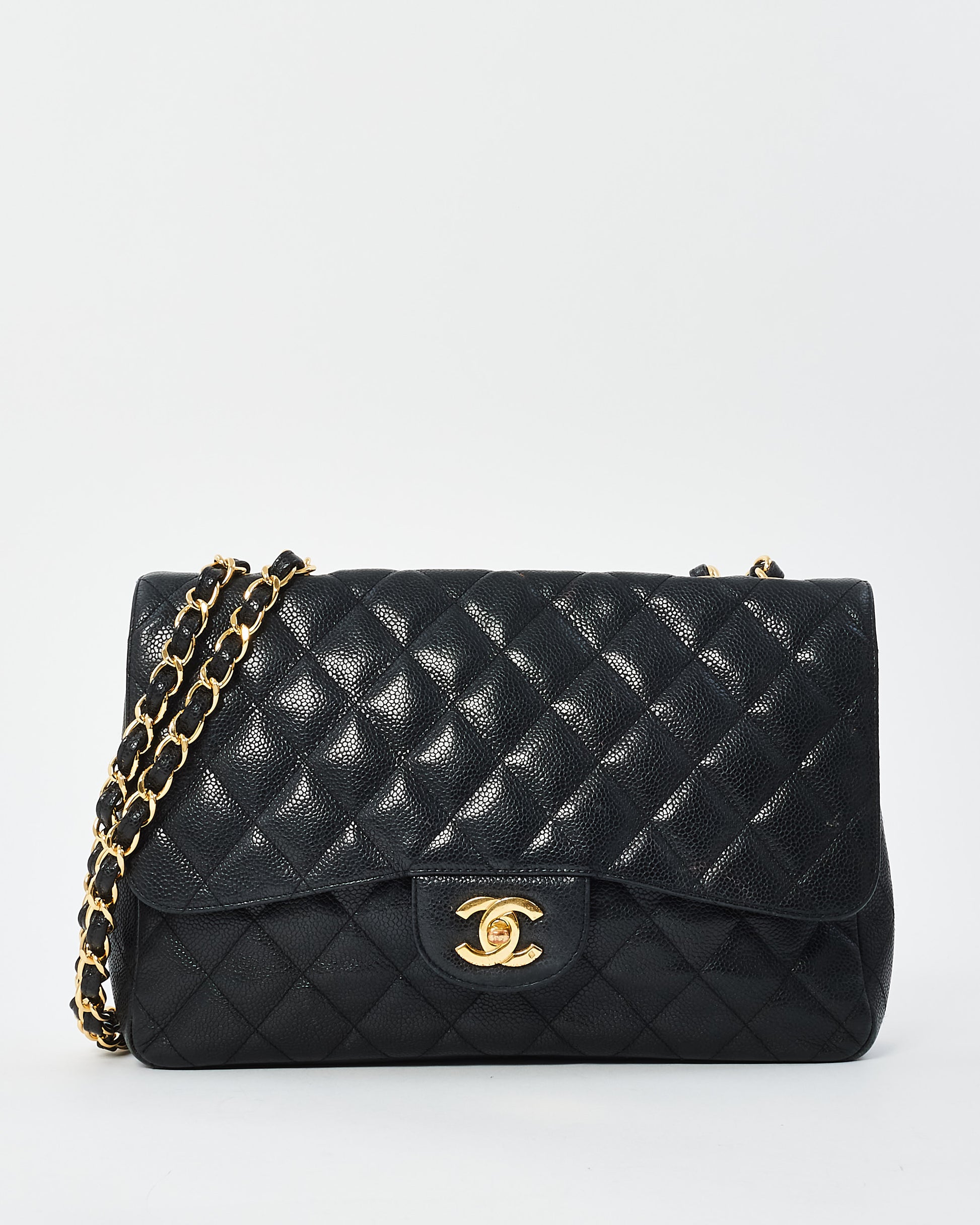 Explore Chanel's exquisite collection of handbags, featuring this certified pre-owned Black Caviar Leather Jumbo Single Flap Bag. Embodying timeless elegance and modern sustainability, each piece, including favorites like this, is authenticated by Retyche. Discover sustainable luxury — shop our current treasures or find inspiration for your next coveted find.