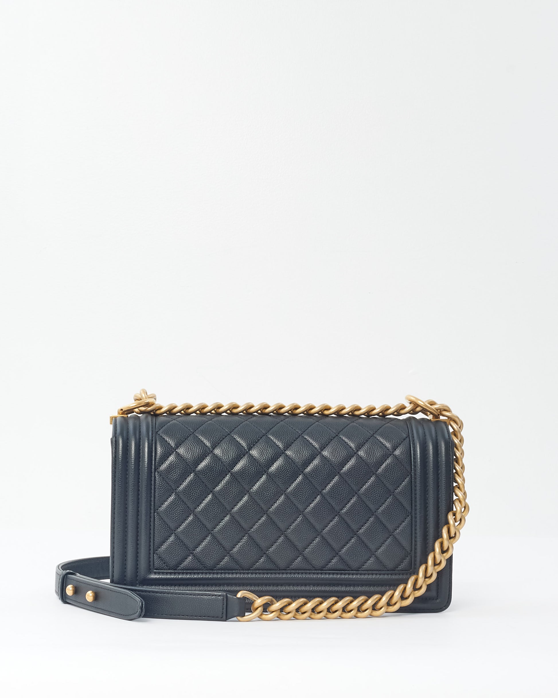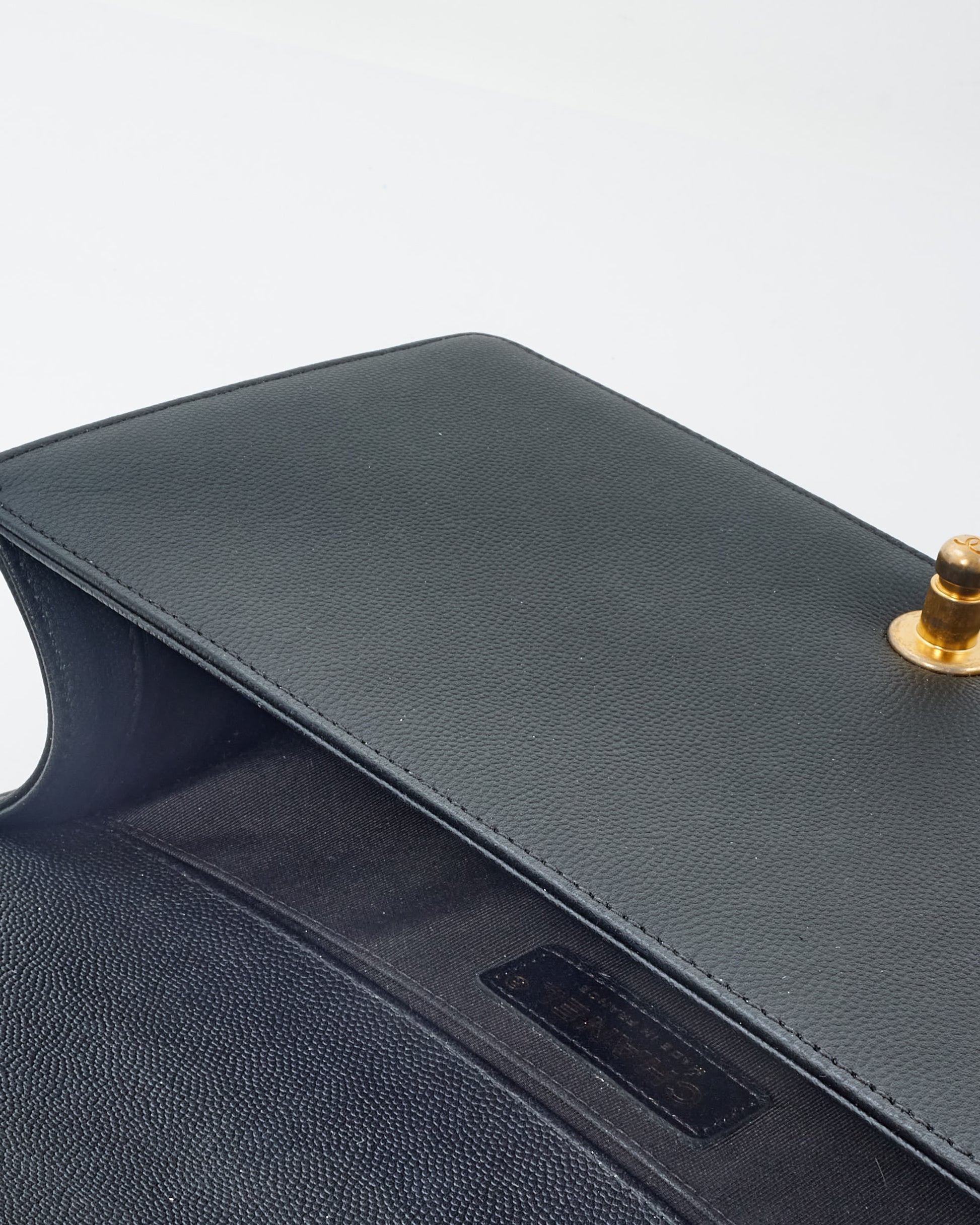 Black Caviar Leather Old Medium Boy Bag with GHW