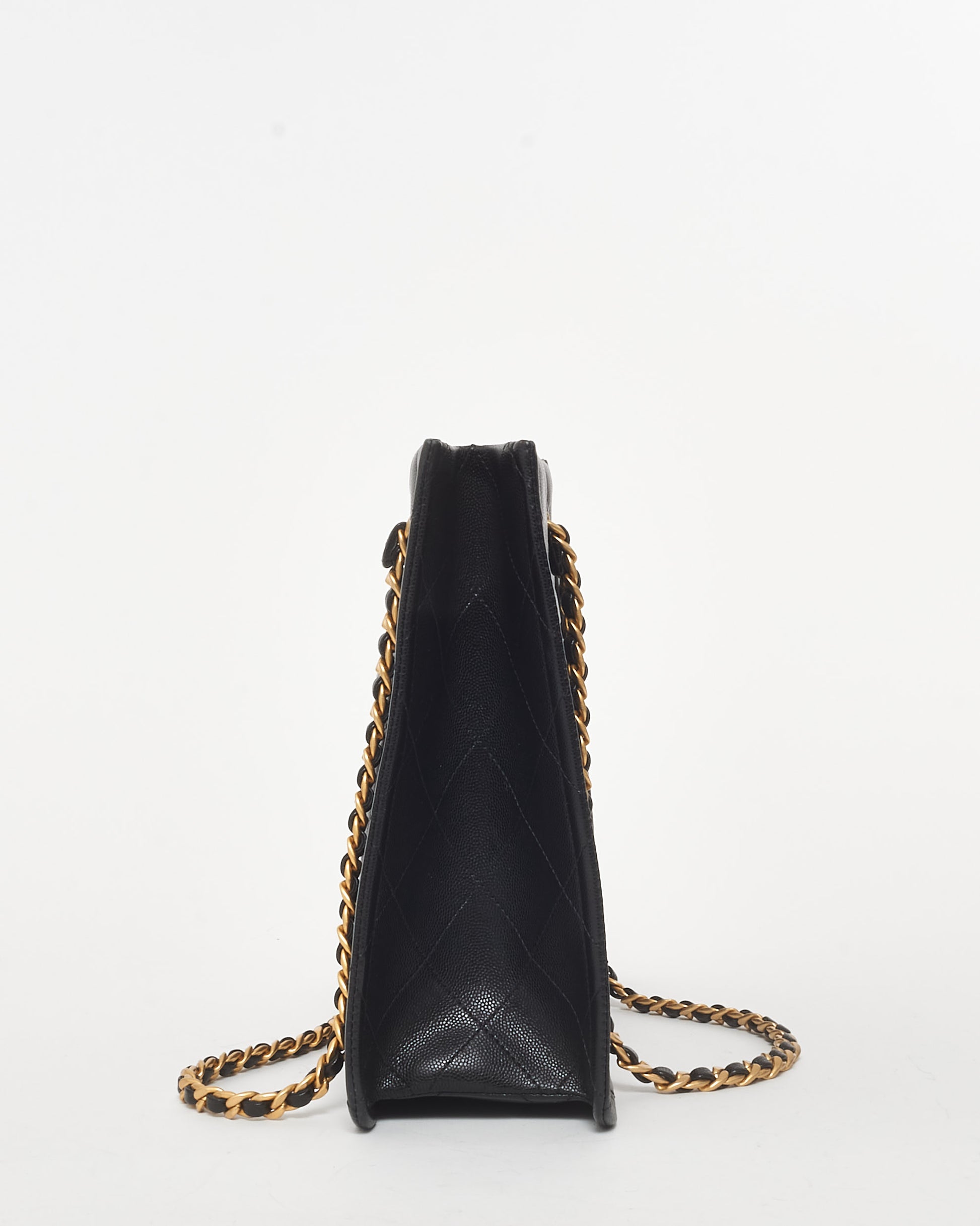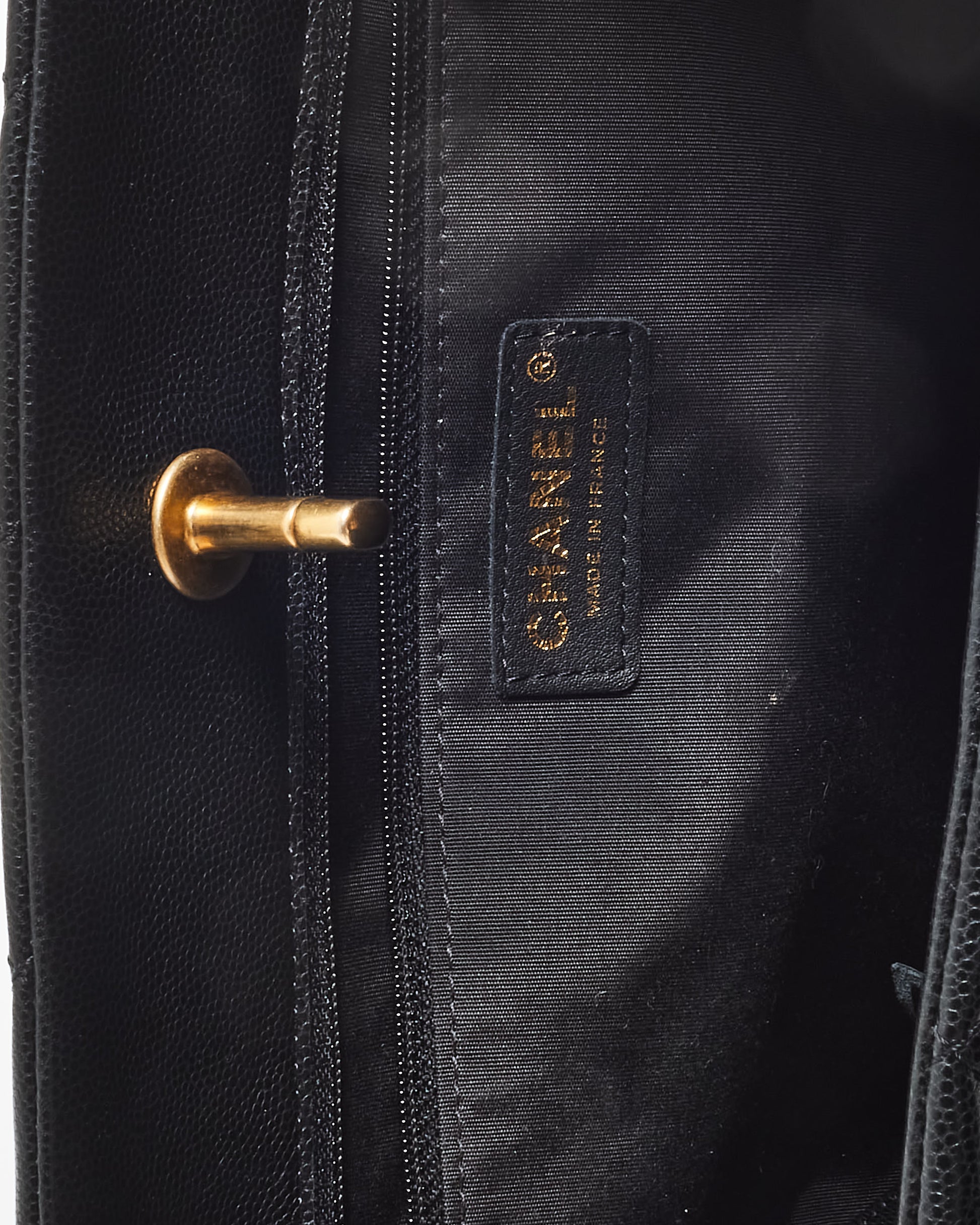 Black Caviar Leather Sweet Classic Shopping Tote Bag GHW