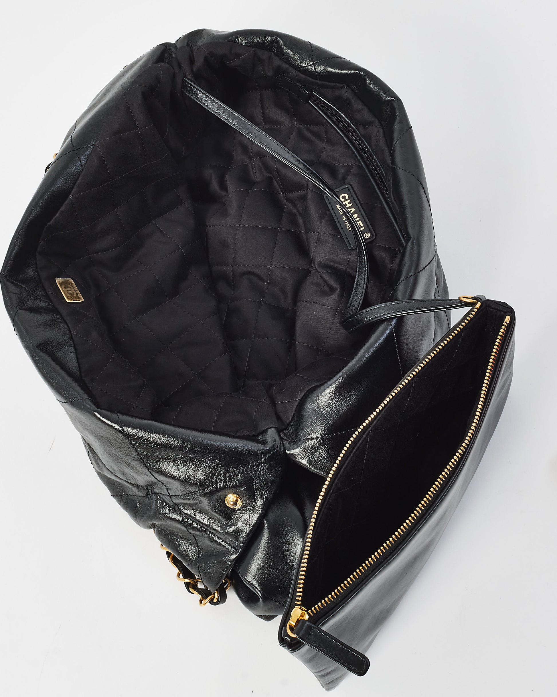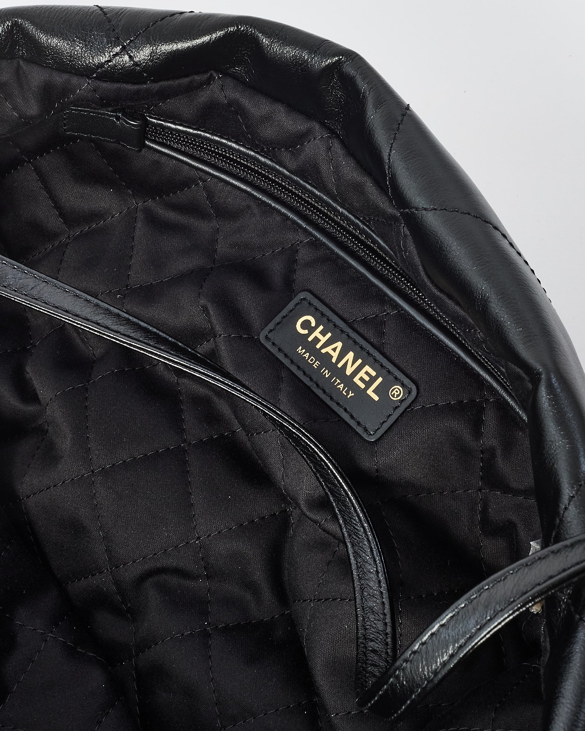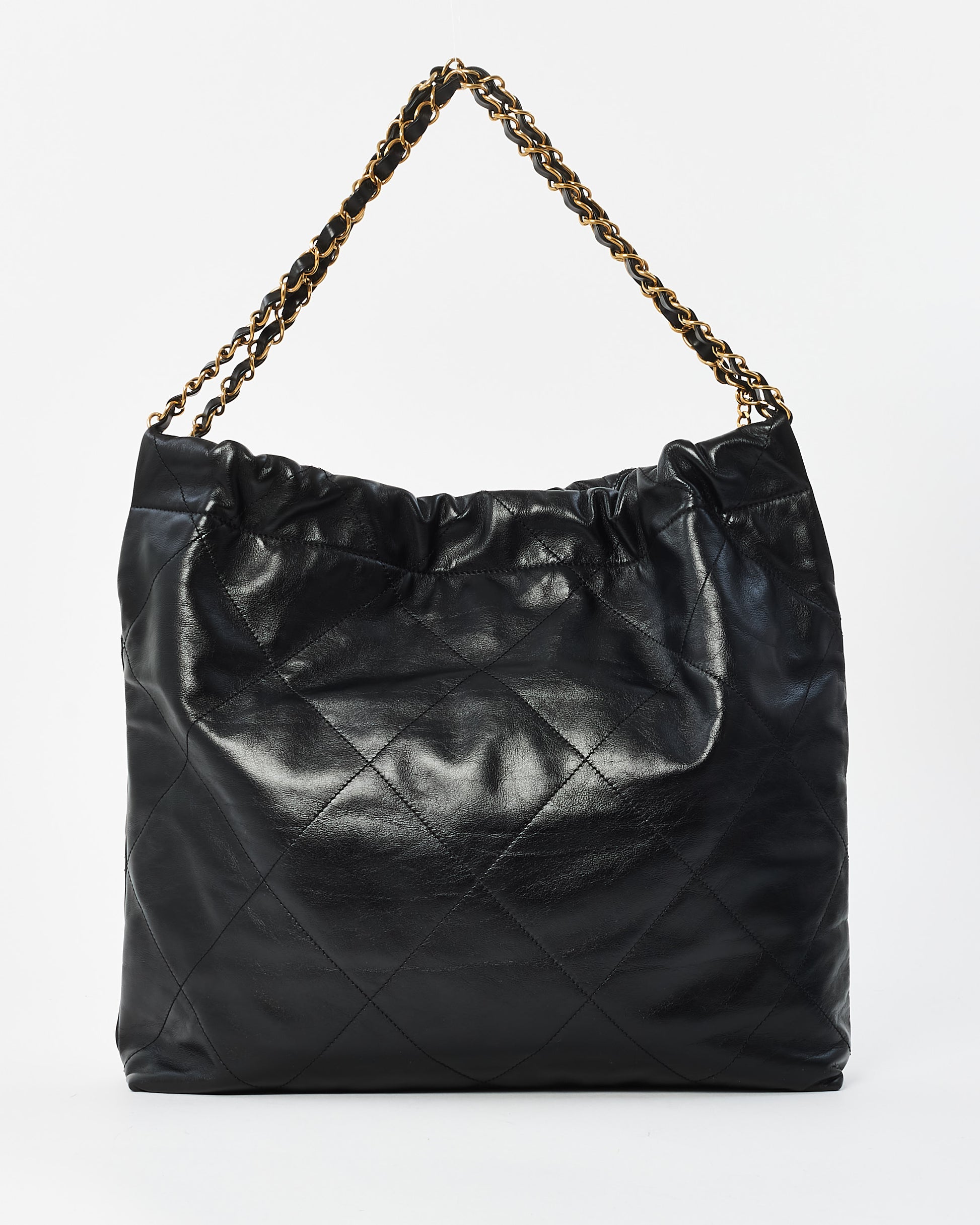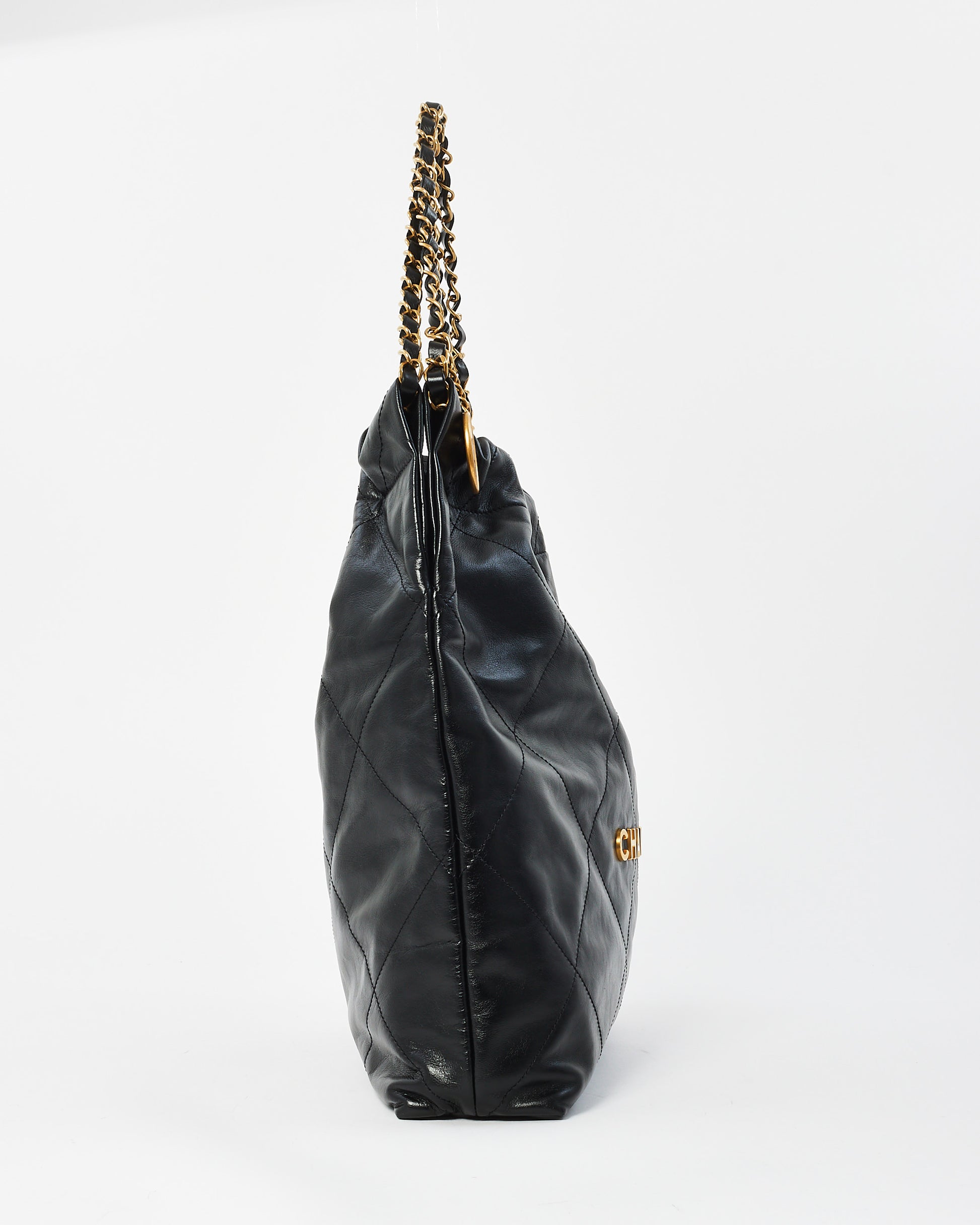 Explore Chanel's exquisite collection of handbags, featuring this certified pre-owned Black Lambskin Leather Chanel 22 Shoulder Bag. Embodying timeless elegance and modern sustainability, each piece, including favorites like this, is authenticated by Retyche. Discover sustainable luxury — shop our current treasures or find inspiration for your next coveted find.
