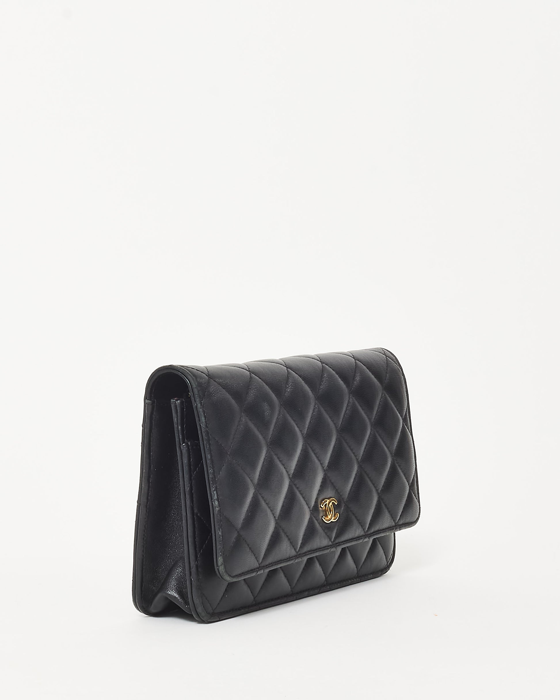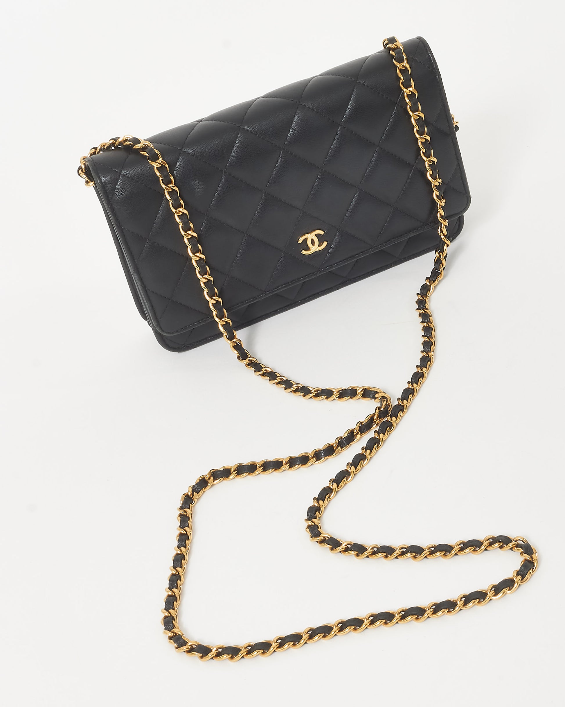 This authentic pre-owned 2023 Chanel Black Lambskin Leather Wallet on Chain (WOC) with Gold Hardware is a timeless accessory that combines elegance with practicality. Crafted from luxurious black lambskin leather, it features Chanel’s signature quilted pattern and the iconic interlocking CC logo in gold-tone metal. The versatile chain strap allows it to be worn as a shoulder bag, crossbody, or clutch, making it suitable for various occasions. Classic quilted black lambskin leather with gold-tone hardware, compact yet spacious enough to hold essentials, the interior includes multiple card slots, a zippered pocket, and an open compartment for organization and the interwoven leather and chain strap can be adjusted to different lengths or tucked inside to transform the WOC into a clutch. Shop authentic pre-owned Chanel at Retyche.