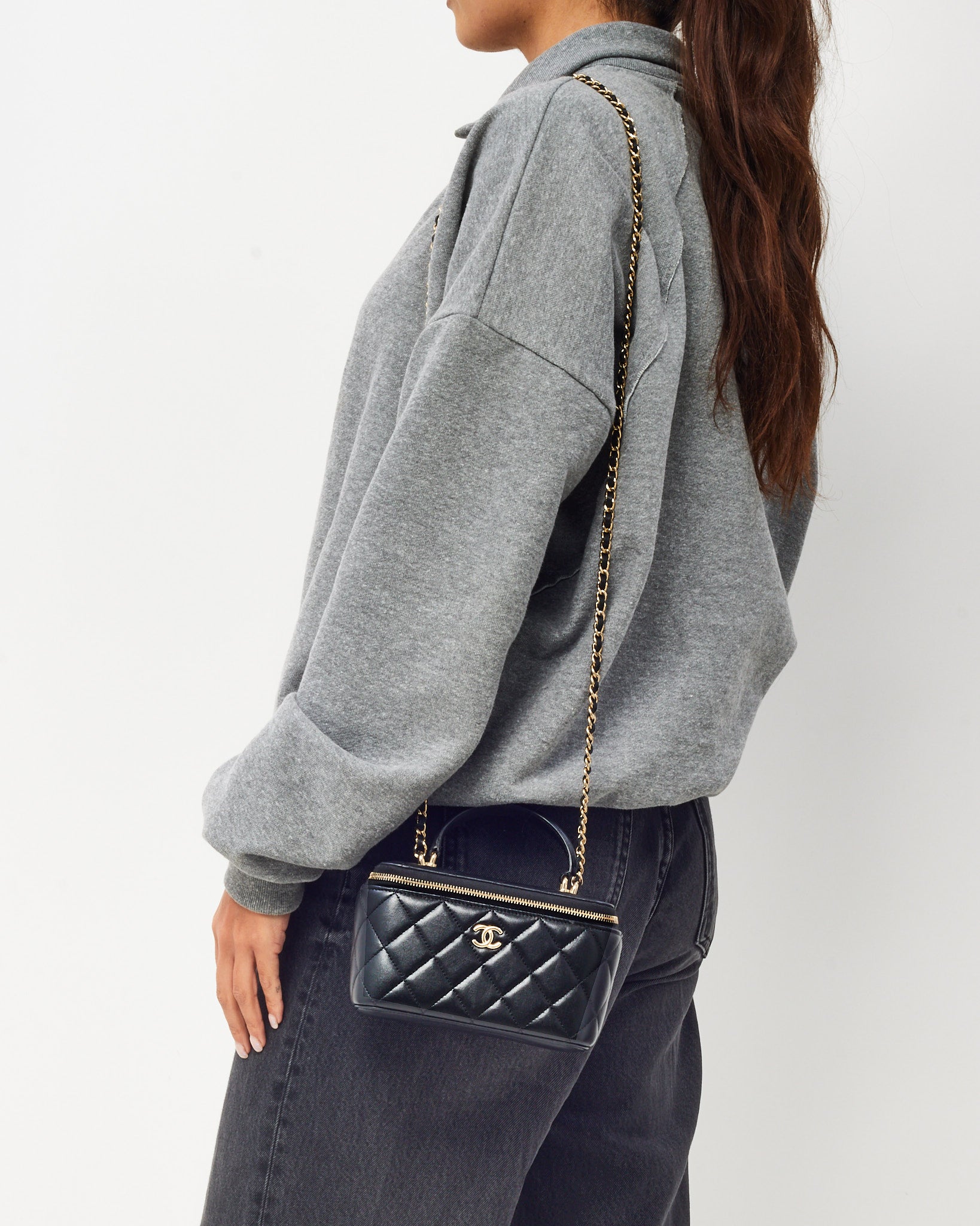 Black Lambskin Leather Top Handle Chain Vanity Bag GHW