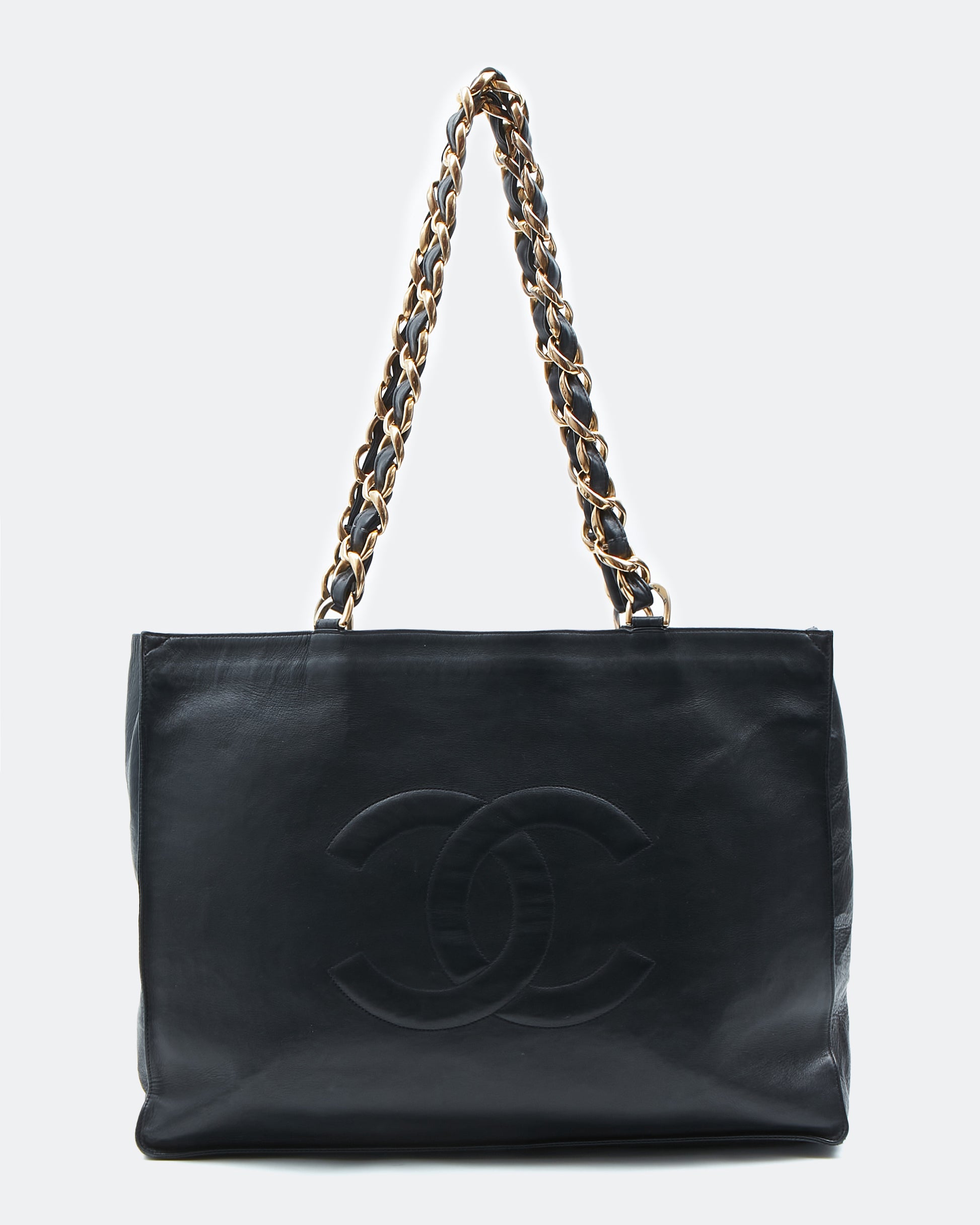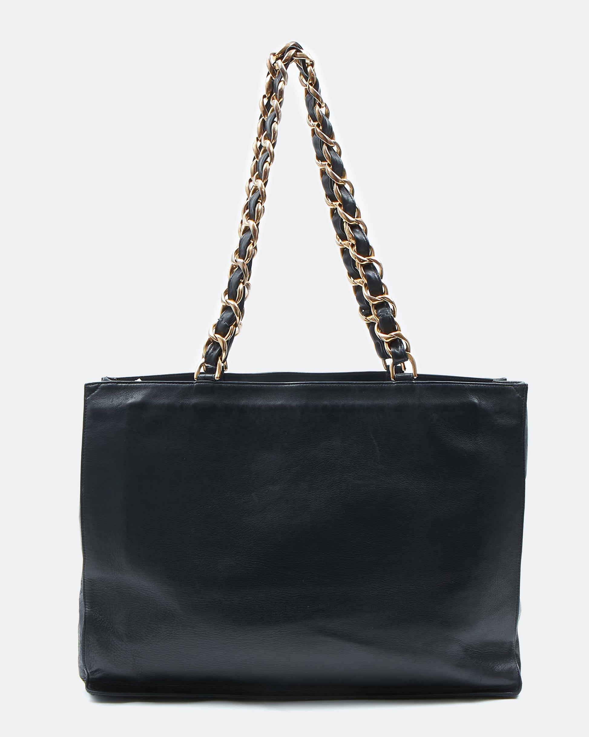 Sac cabas CC entrelacé vintage en cuir d'agneau noir
