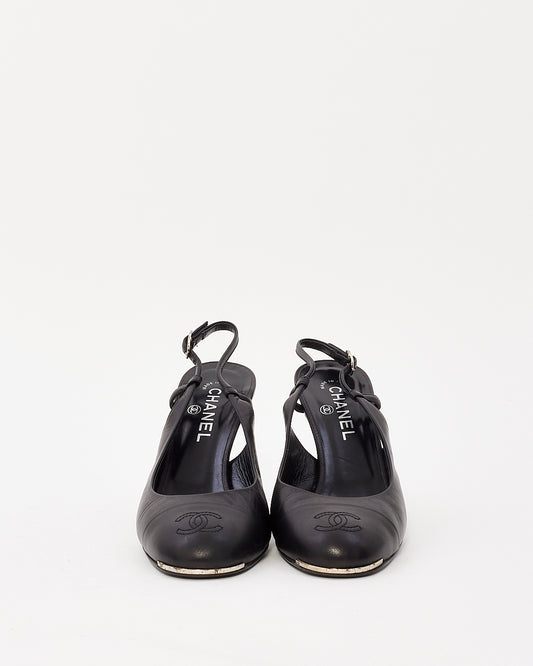 Escarpins à bride arrière à bout rond avec logo en cuir noir