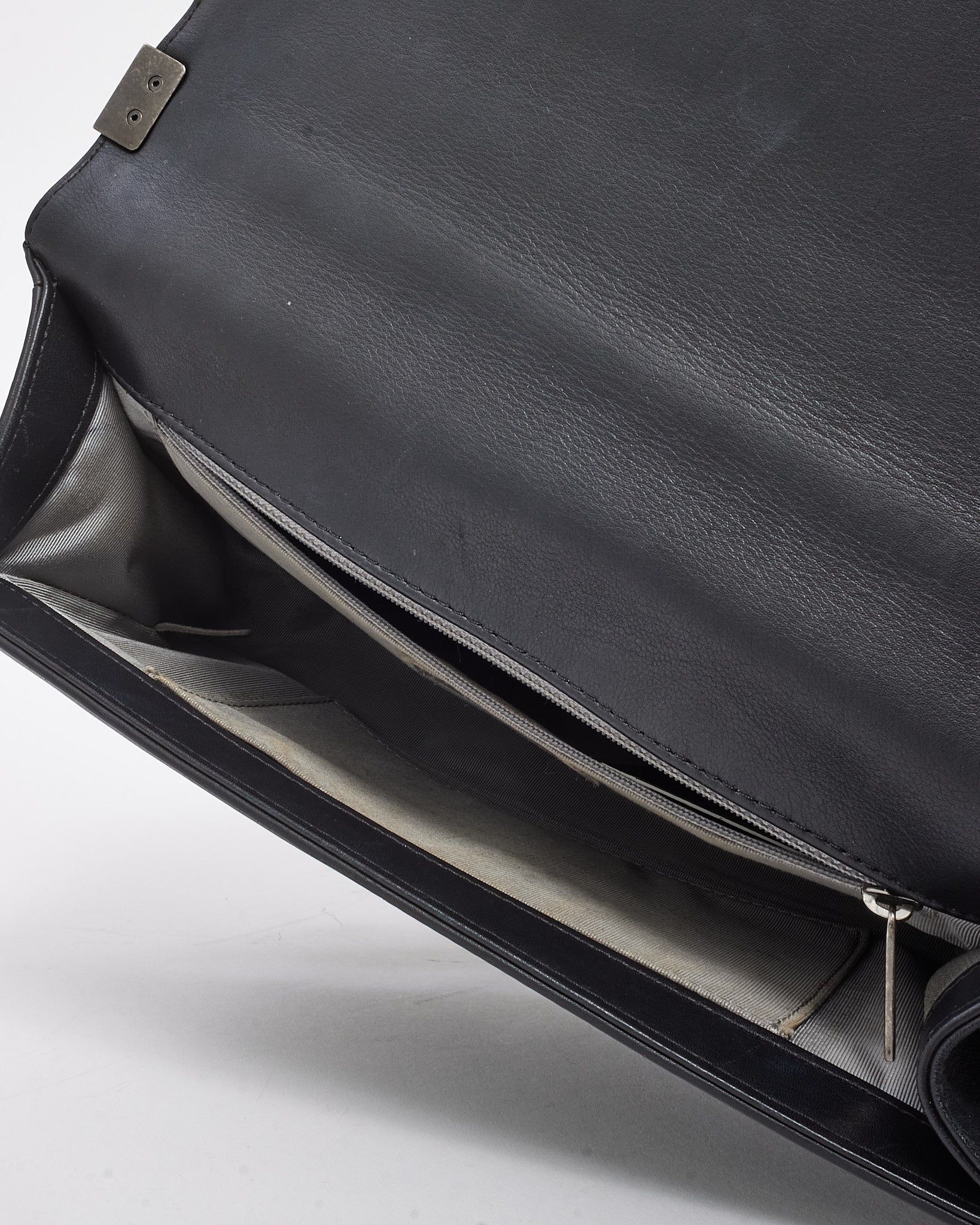Make a bold statement with this pre-loved authentic Chanel Large Boy Bag in black quilted calfskin leather. Featuring the iconic diamond quilting and structured silhouette, this standout piece is finished with silver-tone hardware (SHW) and the signature Boy push-lock clasp. The chunky leather-threaded chain strap allows for shoulder or crossbody wear, while the spacious interior is perfect for carrying daily essentials. A modern classic that blends edgy design with timeless Chanel elegance.