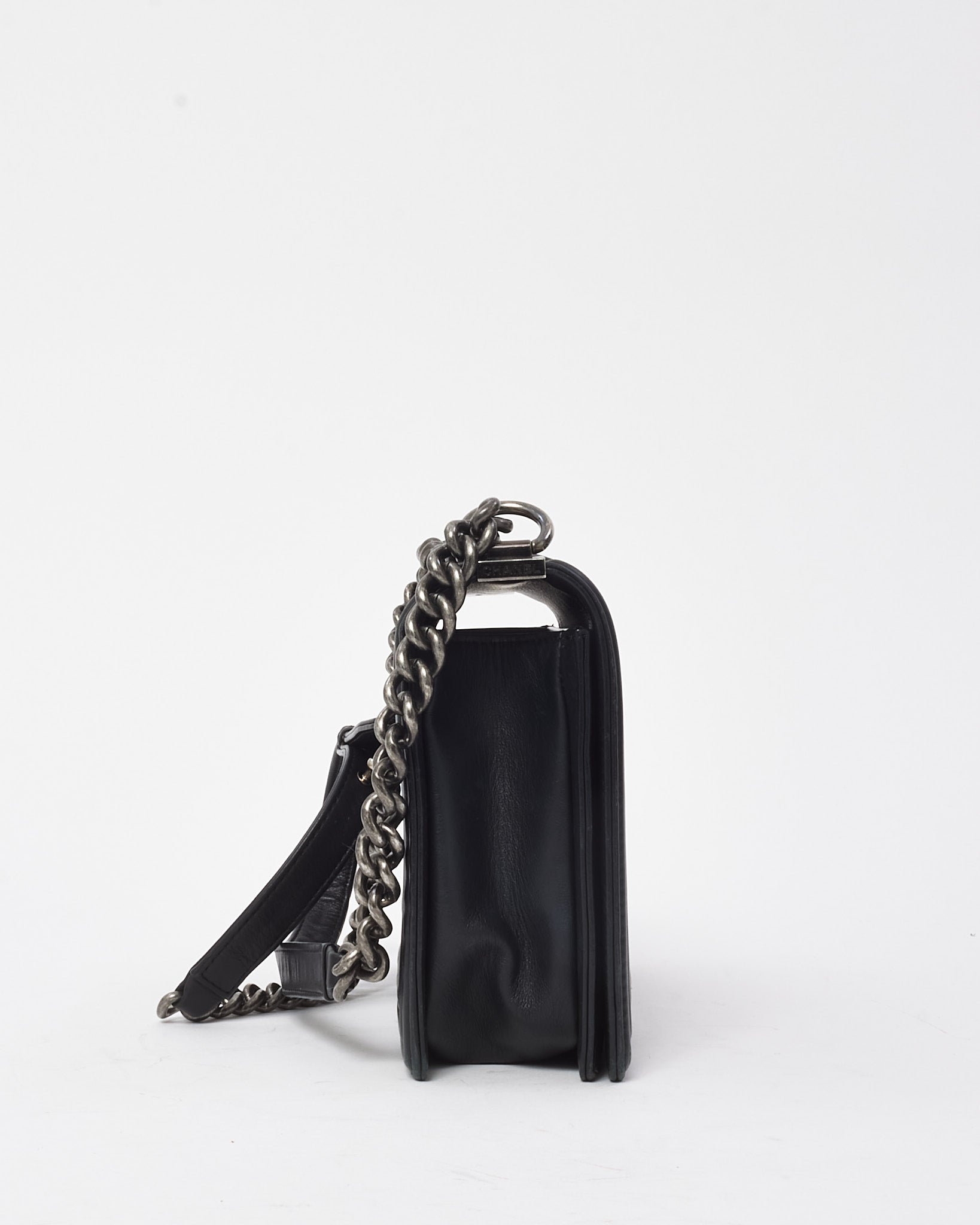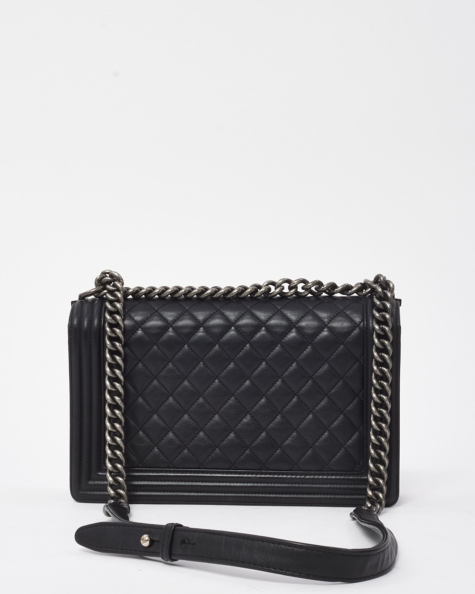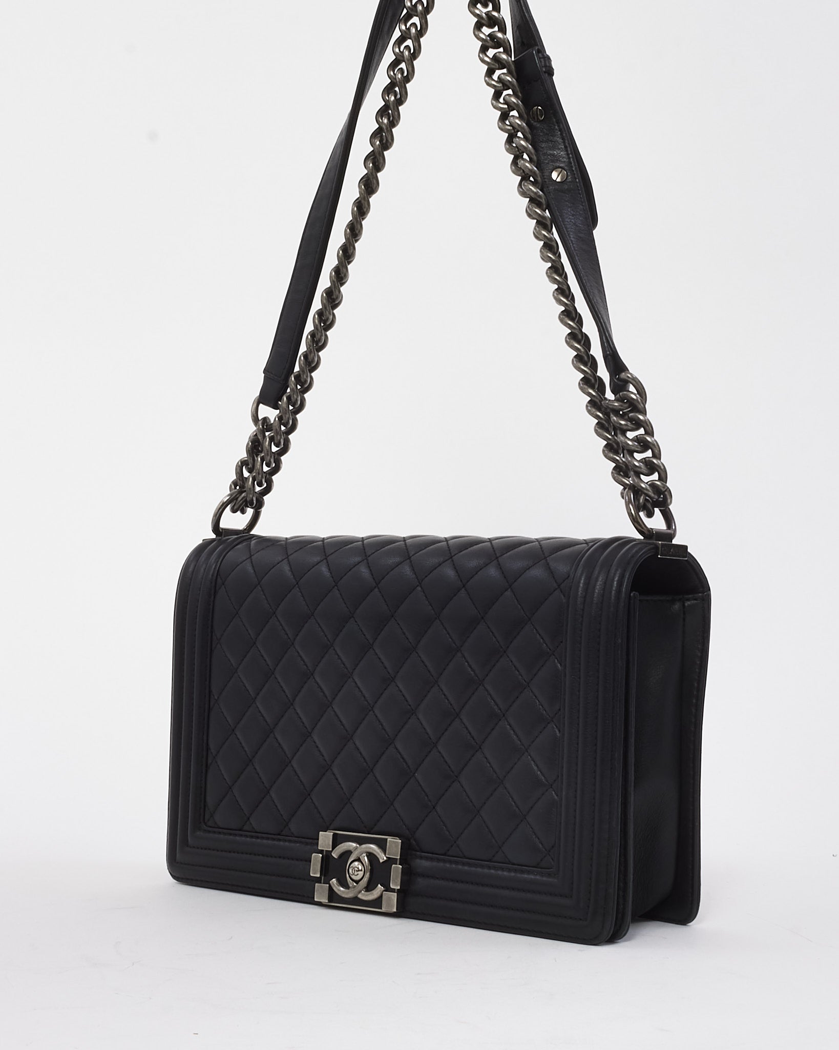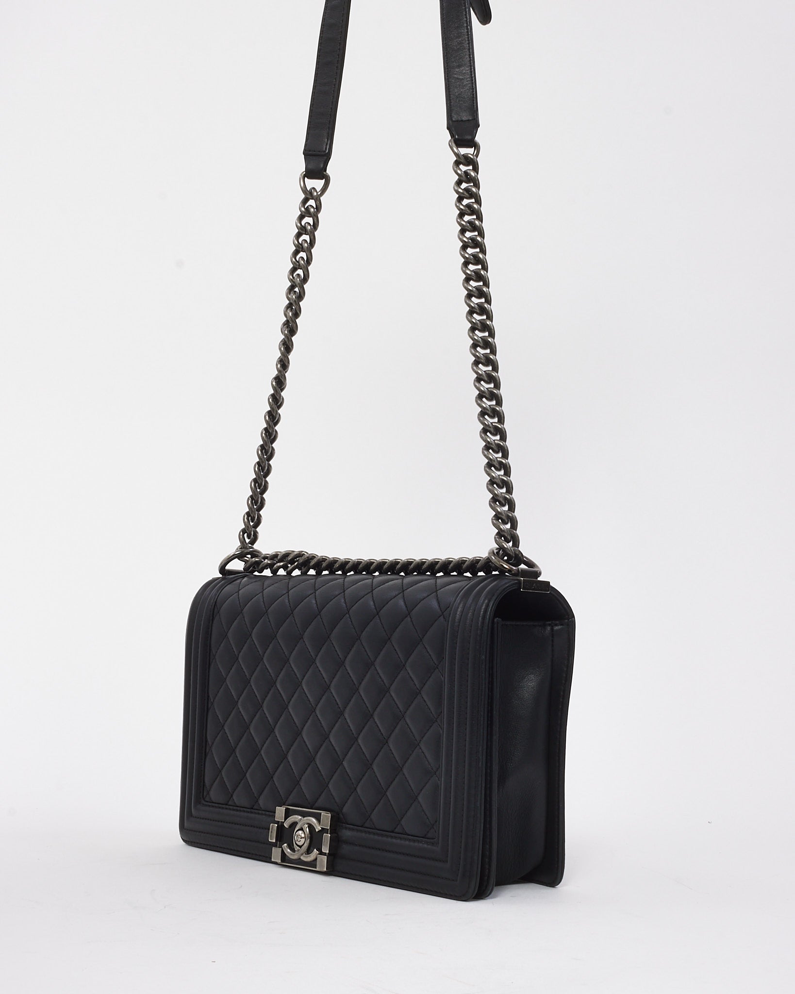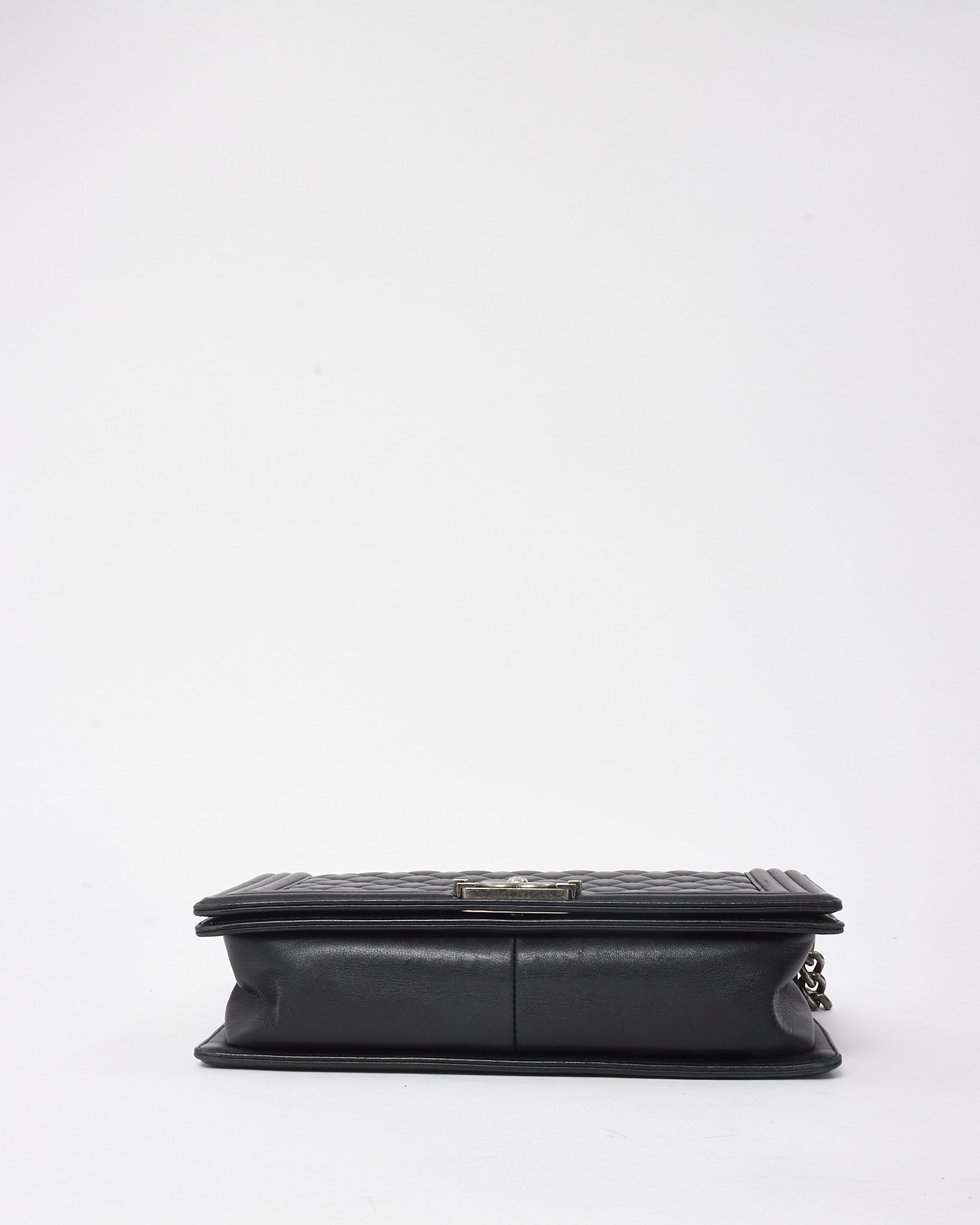 Black Quilted Calfskin Leather Large Boy Bag SHW