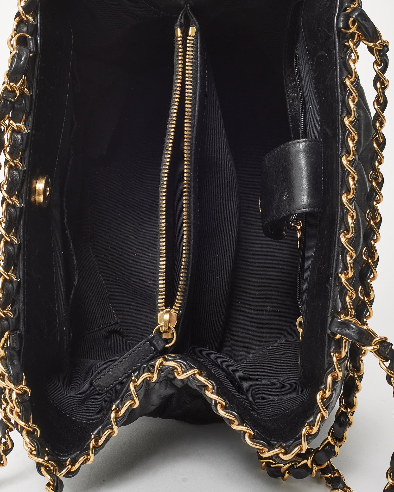 A refined blend of timeless elegance and modern utility, this pre-loved authentic Chanel Chain Me Tote is crafted in supple black quilted calfskin leather and finished with gleaming gold-tone hardware. The structured yet slouchy silhouette is accented by bold chain detailing, signature CC logo, and dual chain straps for versatile carry. A spacious interior with multiple compartments makes it ideal for everyday sophistication, while its polished design ensures a lasting impression.