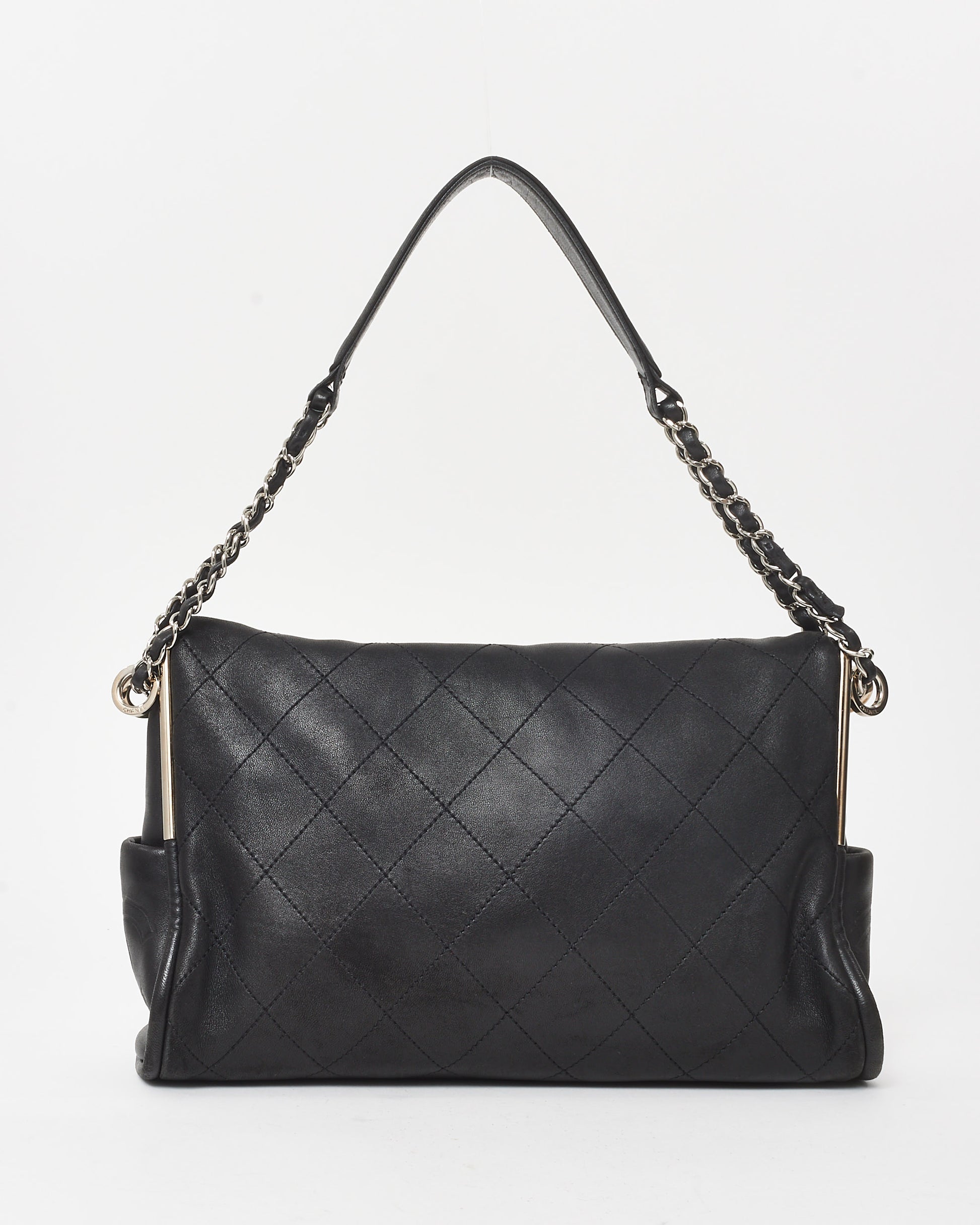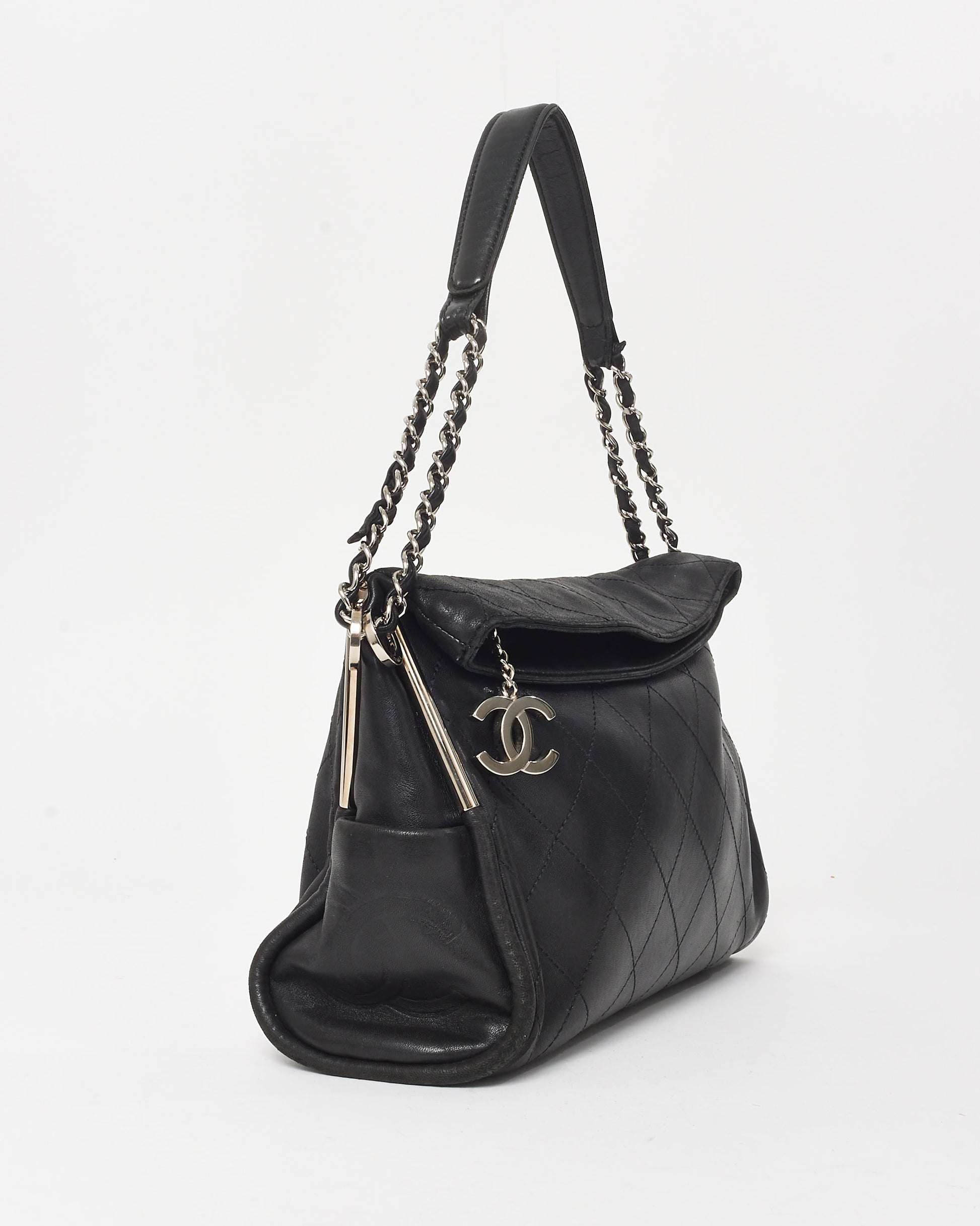 Black Quilted Lambskin Ultimate Soft Medium Hobo Shoulder Bag