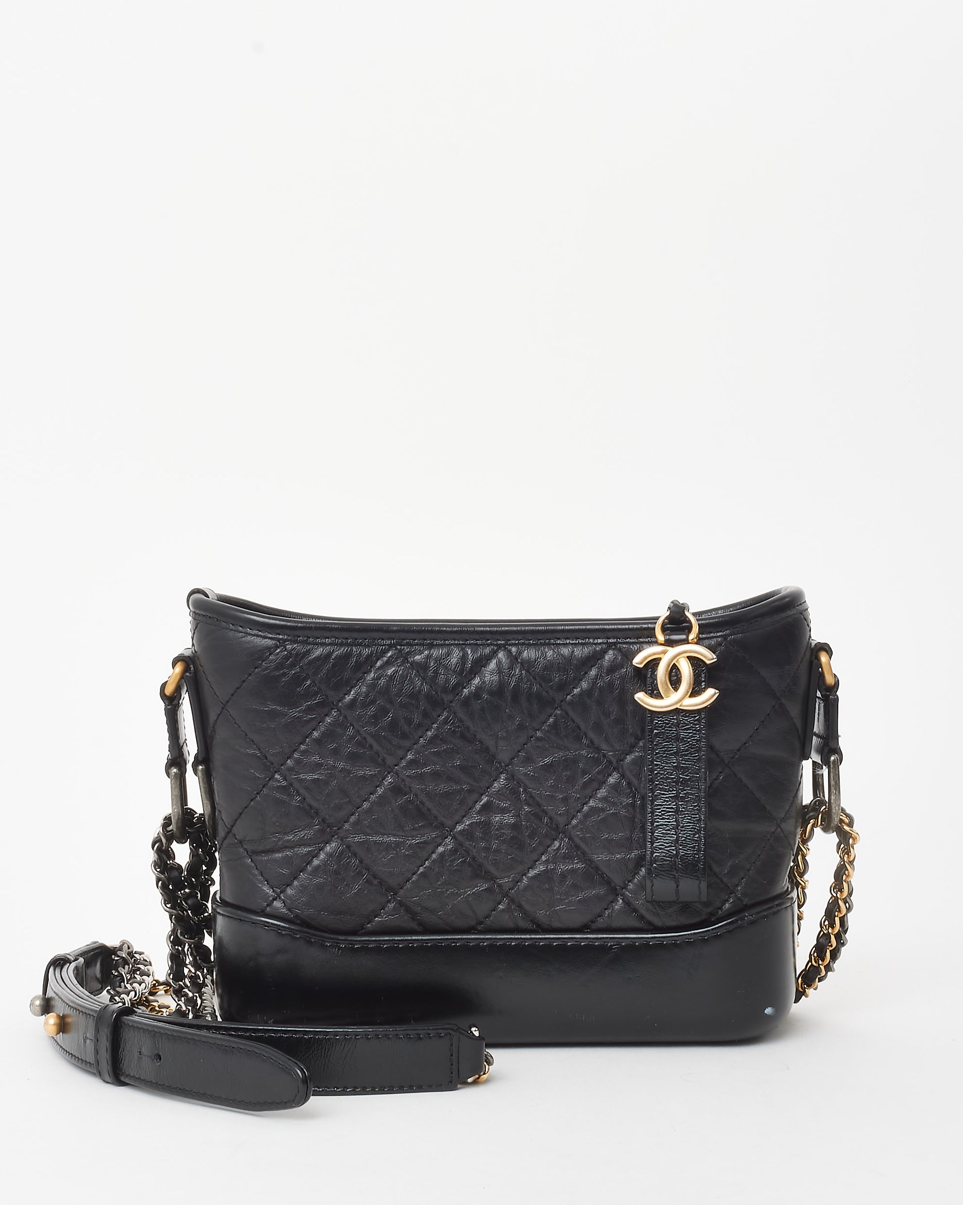 Black Quilted Leather Small Gabrielle Hobo Crossbody Bag