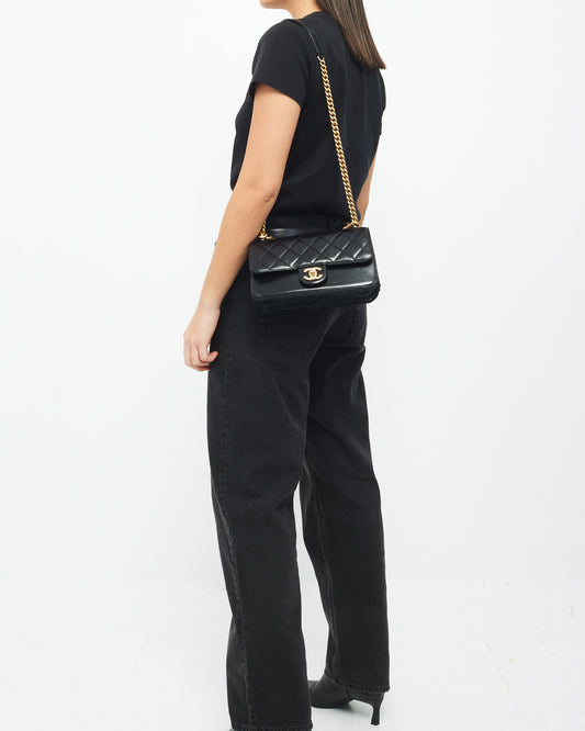 Sac à rabat droit doublé en cuir de veau matelassé noir