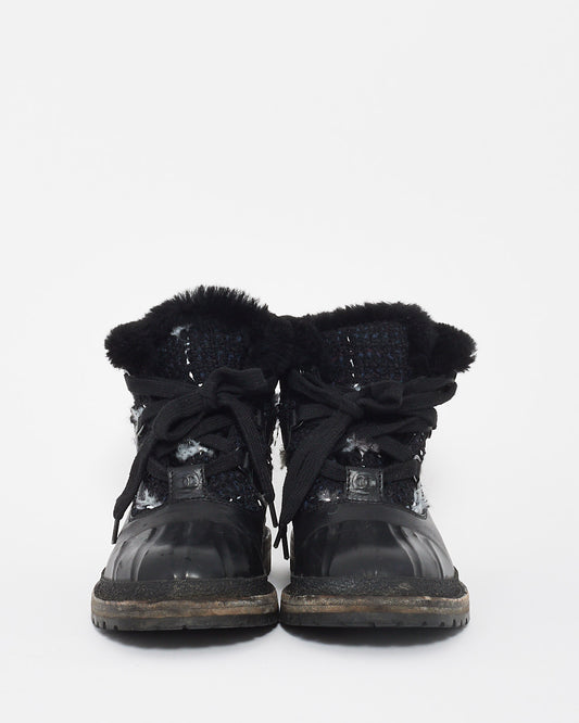 Bottines de combat à lacets en tweed/cuir noir