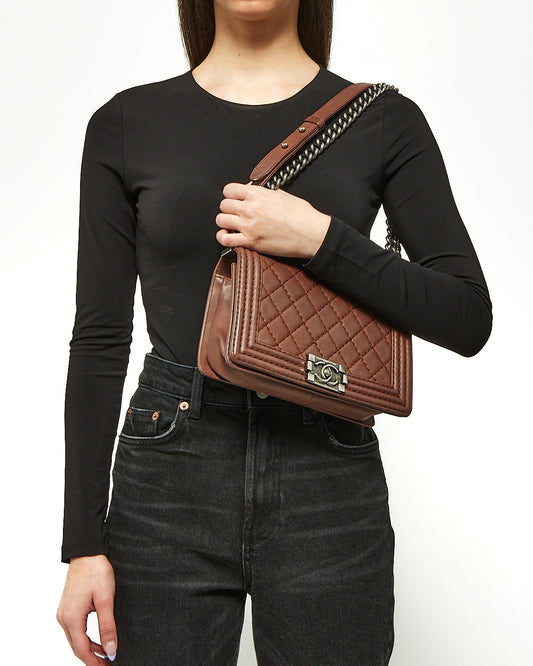 Sac Boy Old Medium en cuir matelassé marron