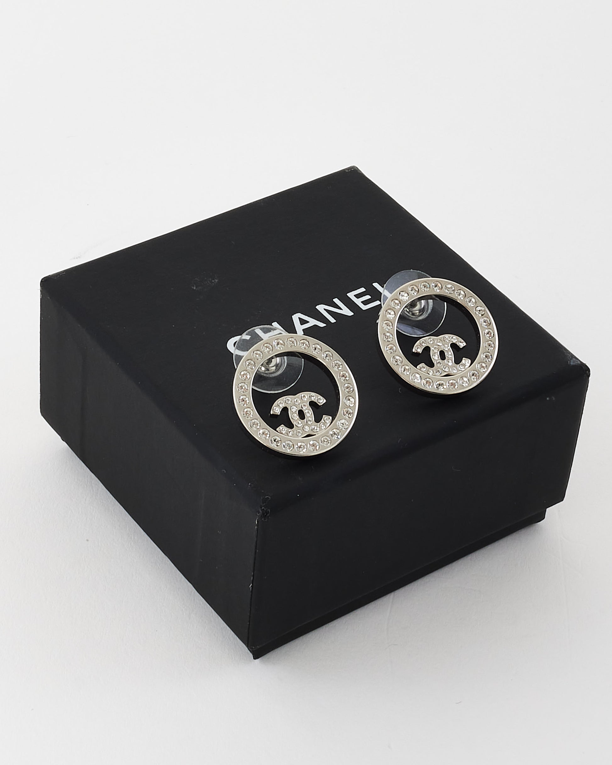 Boucles d'oreilles rondes avec logo en cristal et argent