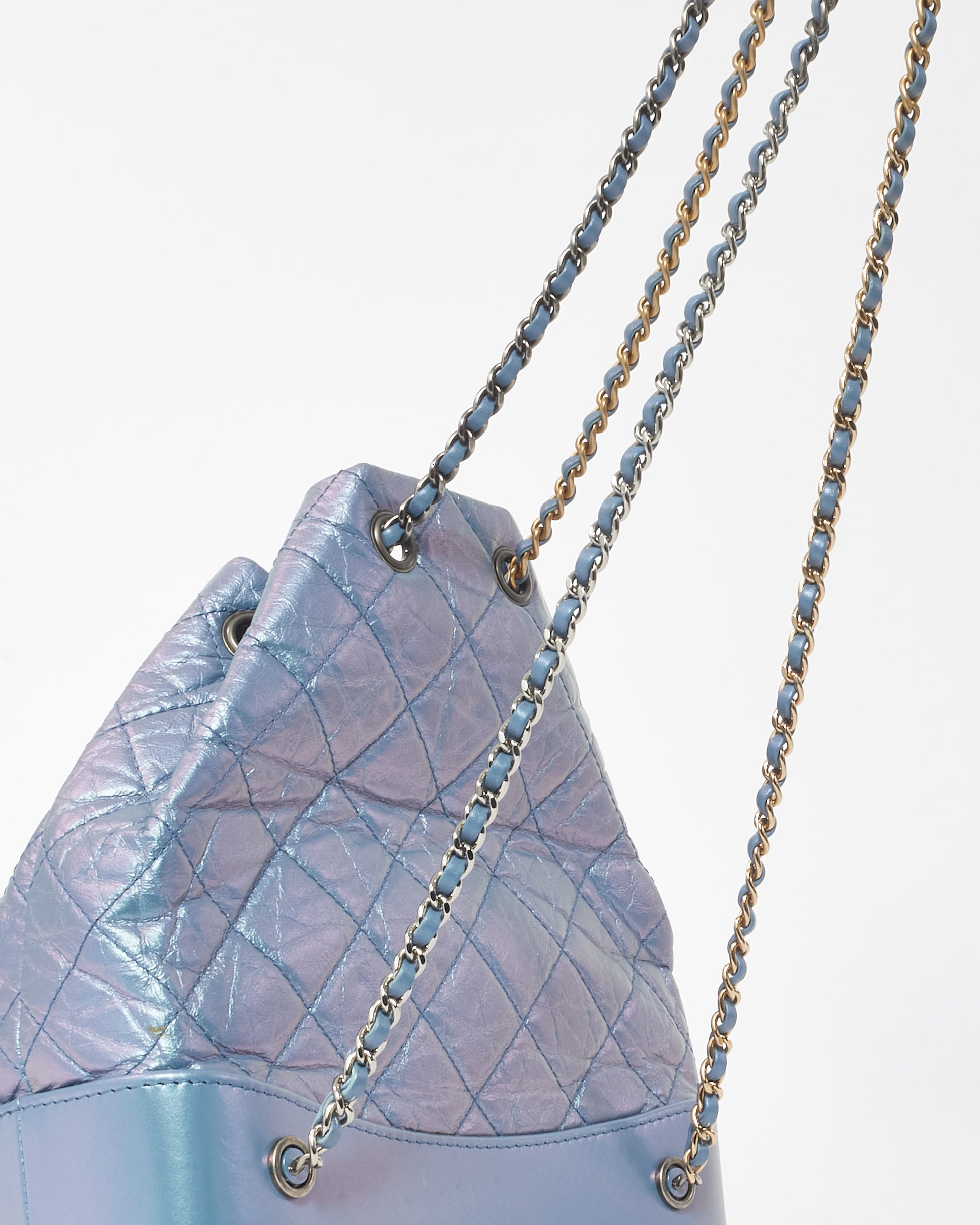 Explore Chanel's exquisite collection of Handbags, featuring this certified pre-owned Light Purple Quilted Lambskin Iridescent Gabrielle Backpack. Embodying timeless elegance and modern sustainability, each piece, including favorites like this, is authenticated by Retyche. Discover sustainable luxury — shop our current treasures or find inspiration for your next coveted find.