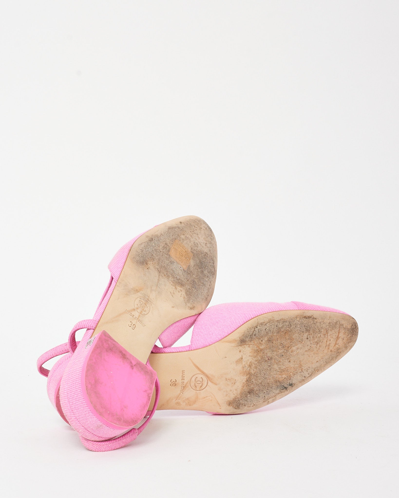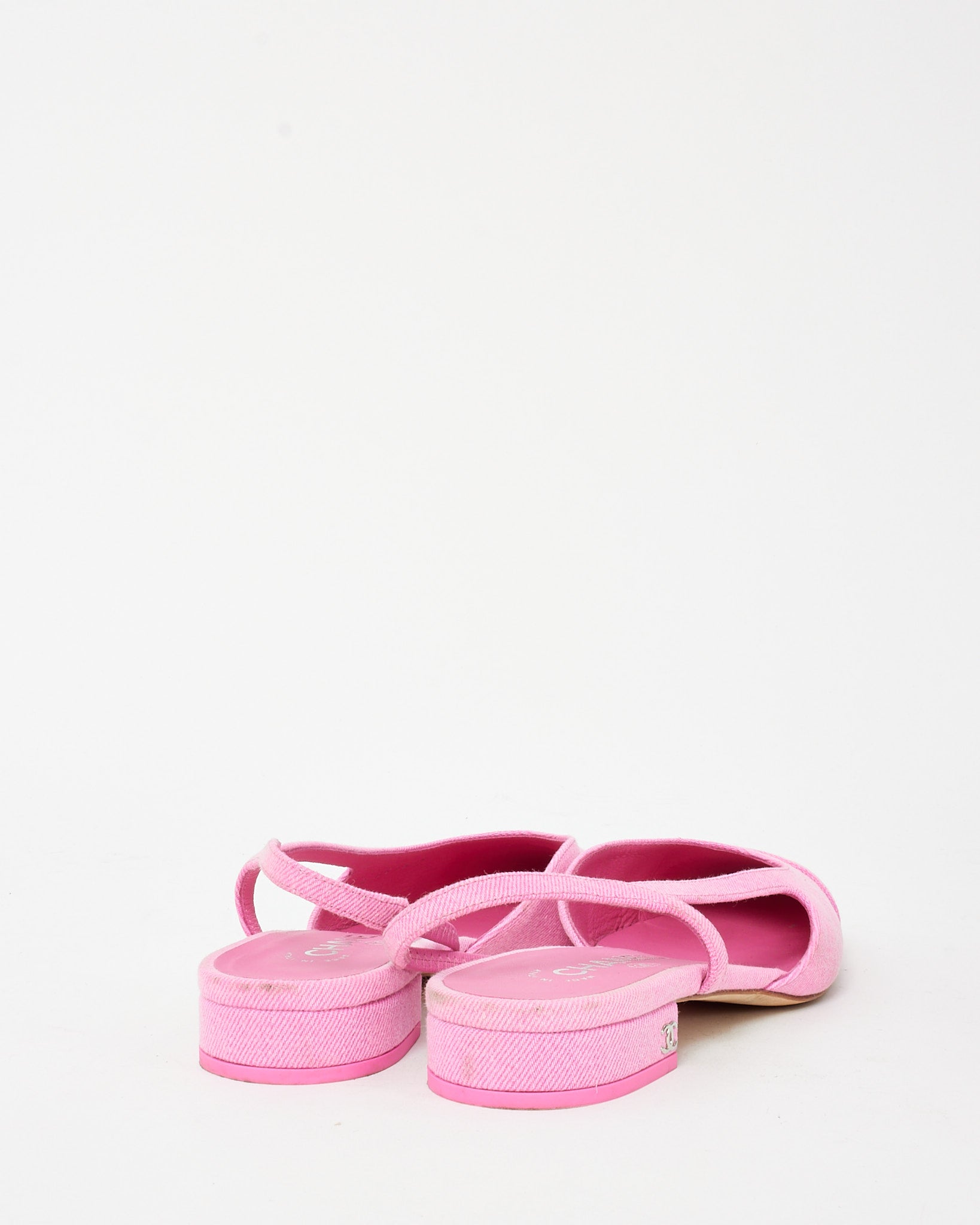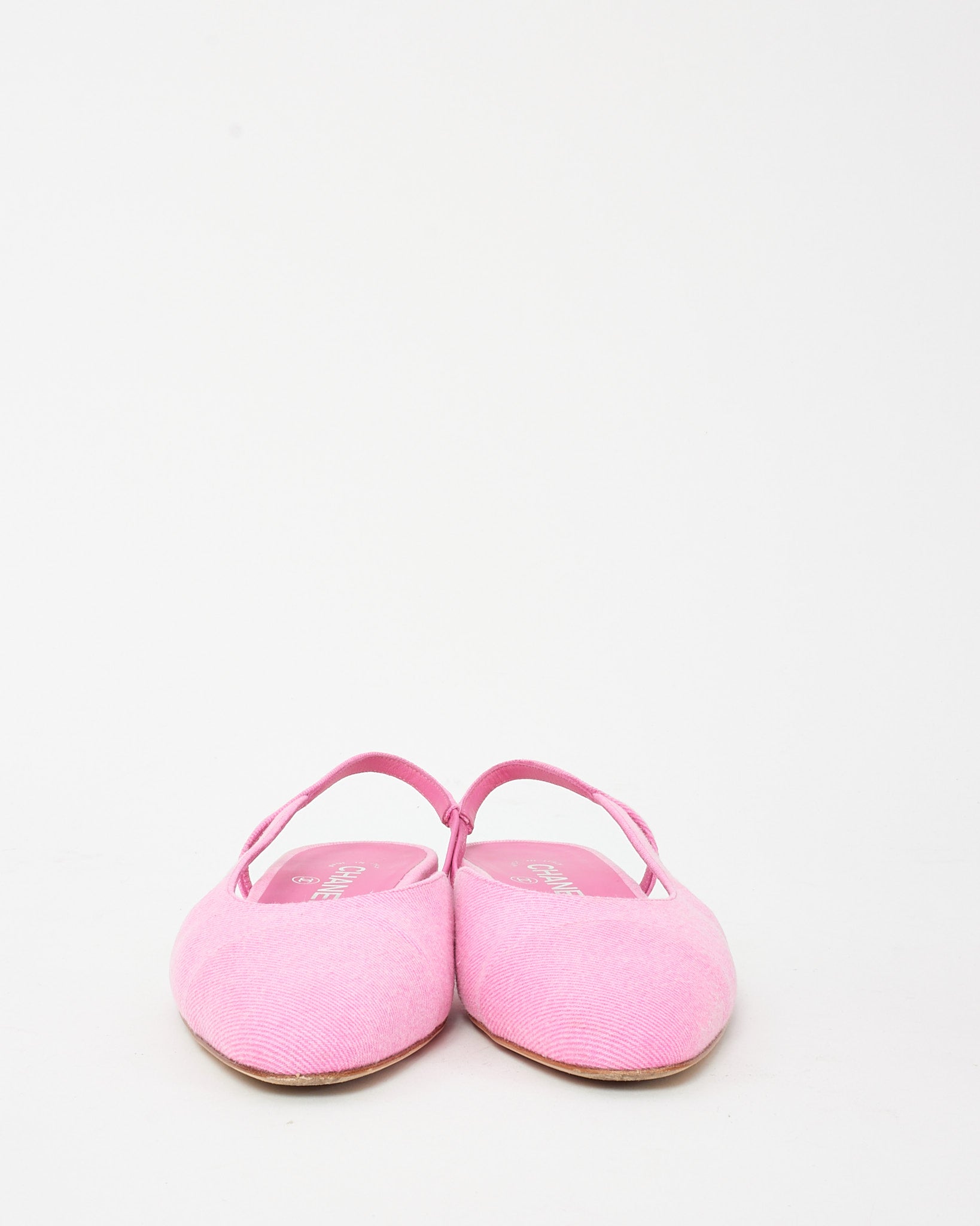 Pink Denim 2021 CC Logo Slingback Flats - 39