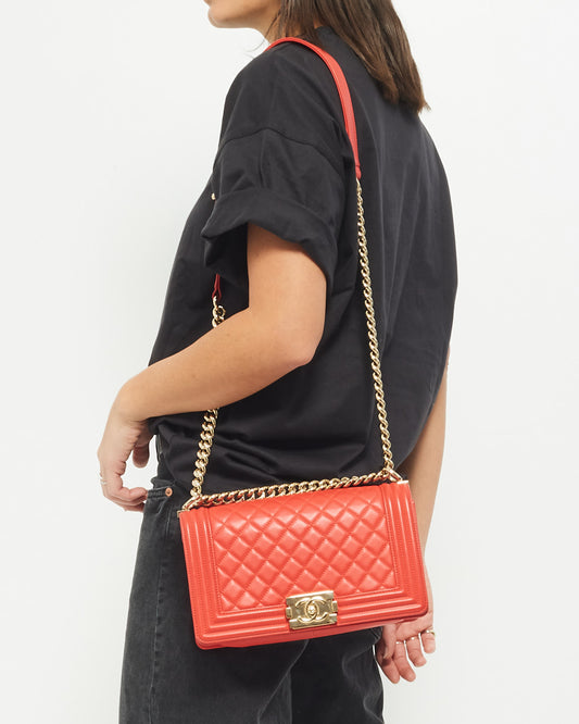 Old Medium Boy en cuir d'agneau rouge