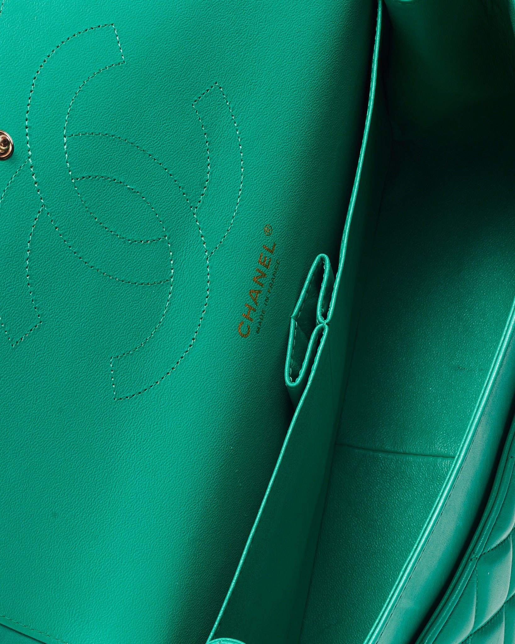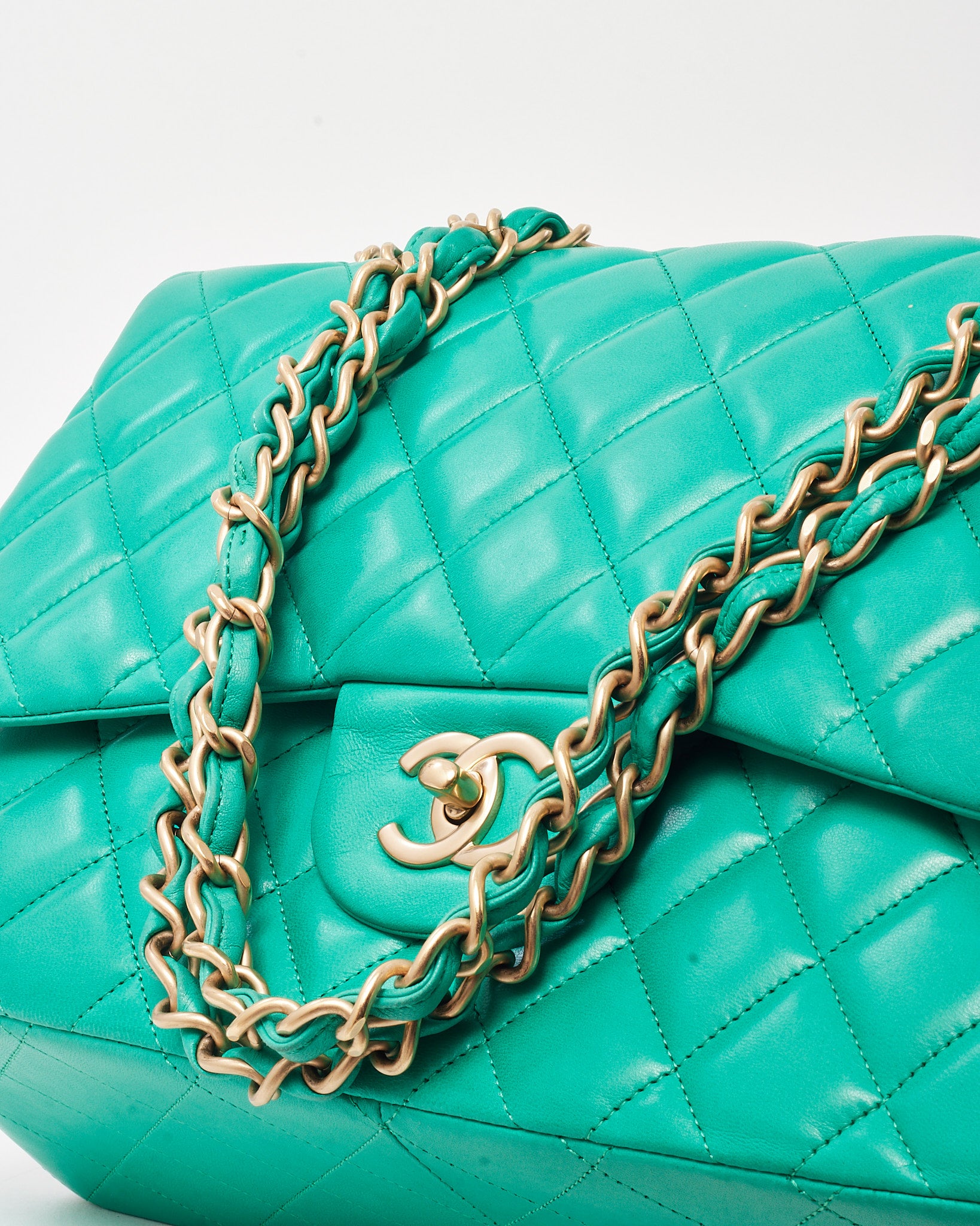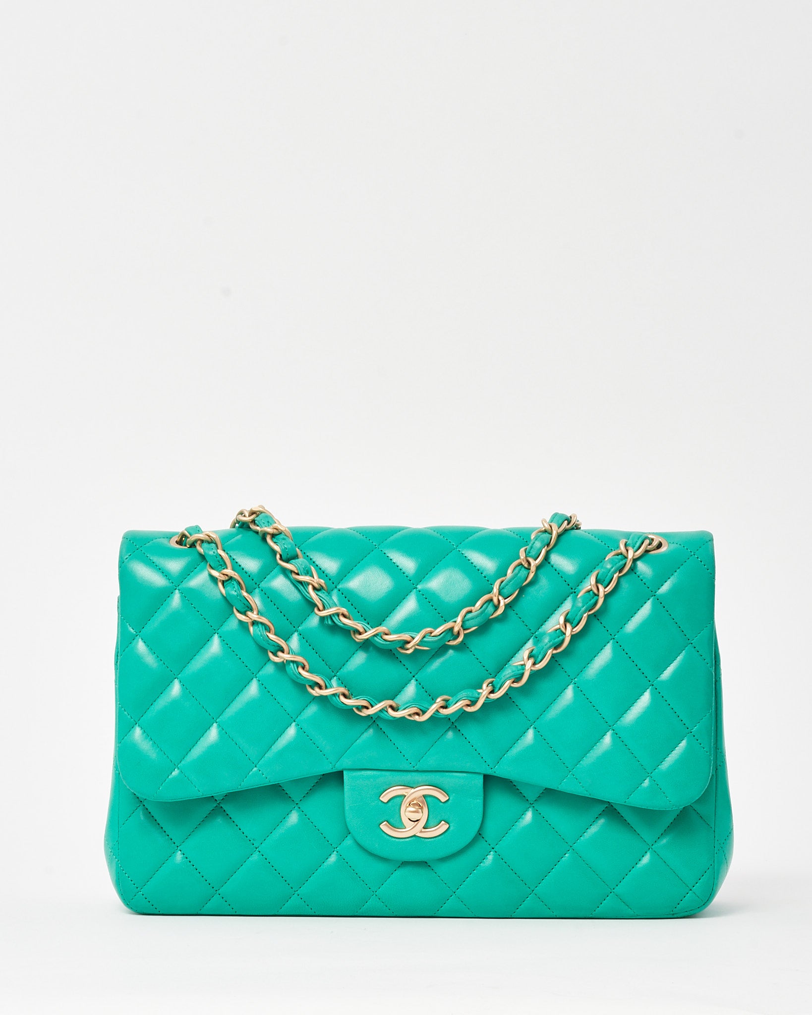 Turquoise Green Quilted Lambskin Leather Jumbo Double Flap Bag GHW