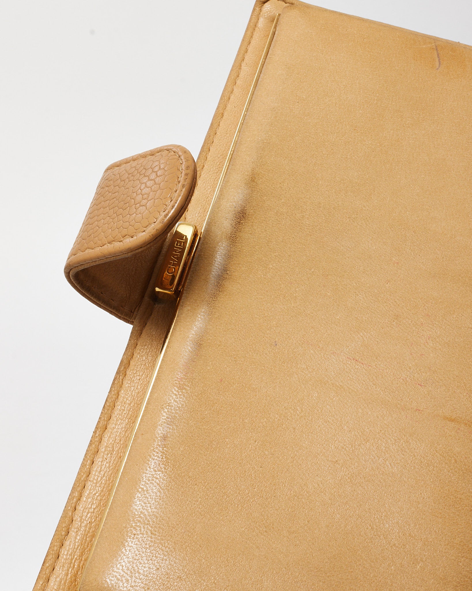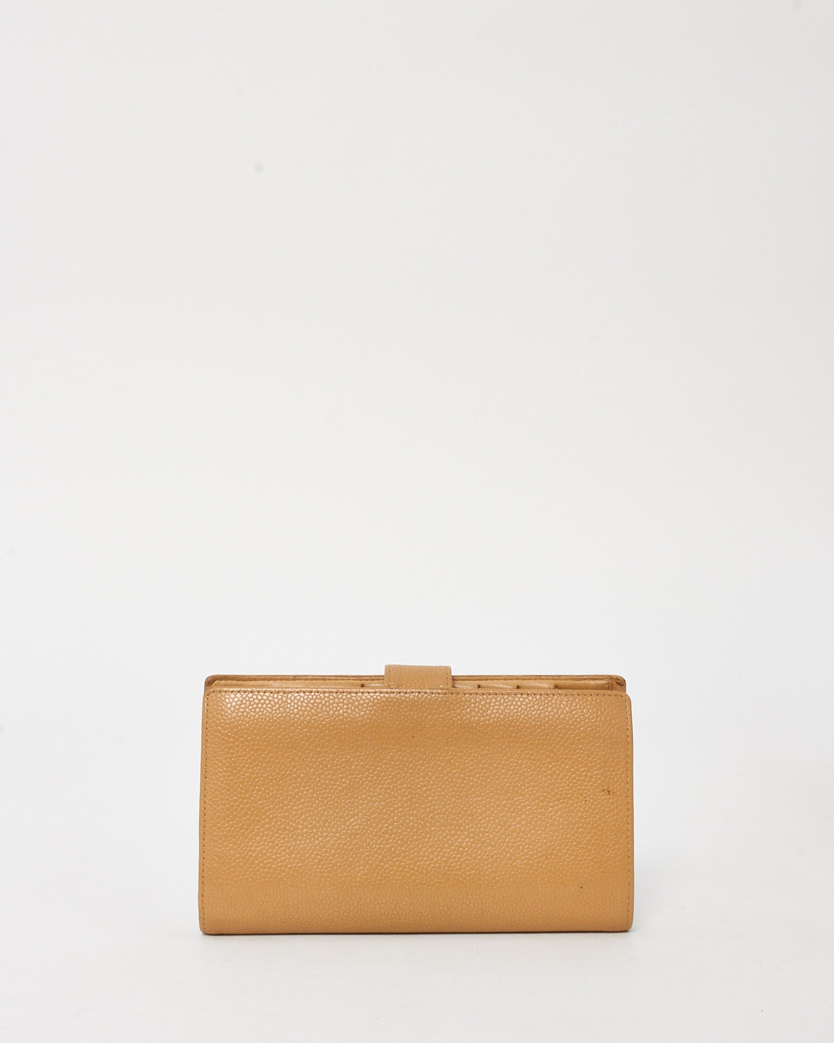 A refined classic with enduring appeal, this pre-loved authentic Chanel Timeless French Wallet is crafted in beige caviar leather and finished with the signature CC logo. Compact yet practical, it opens to reveal multiple card slots, a bill compartment, and a coin pocket, all secured with a snap closure. Perfect for daily use or tucking into a mini bag, this elegant vintage piece brings iconic Chanel charm to any accessory collection.