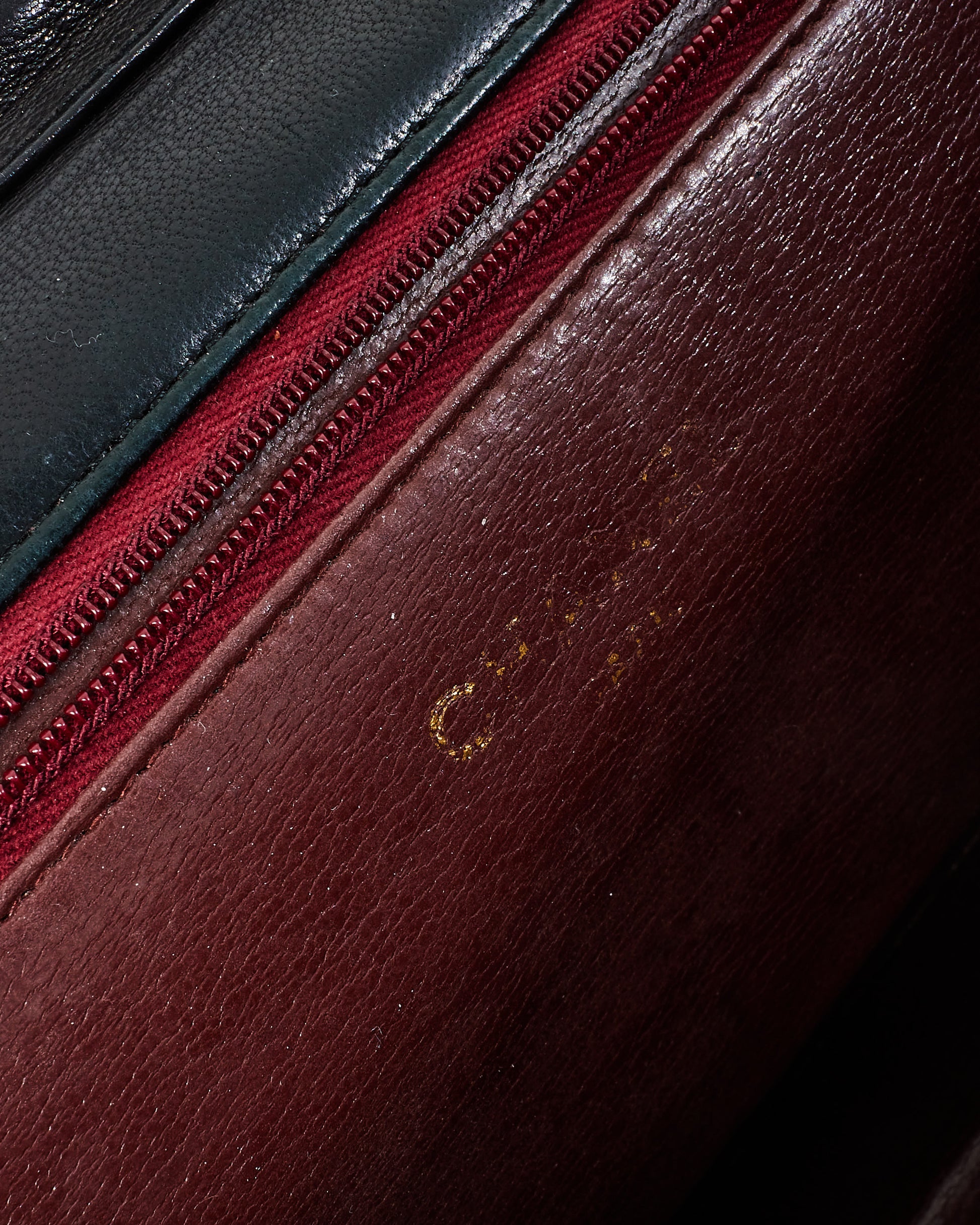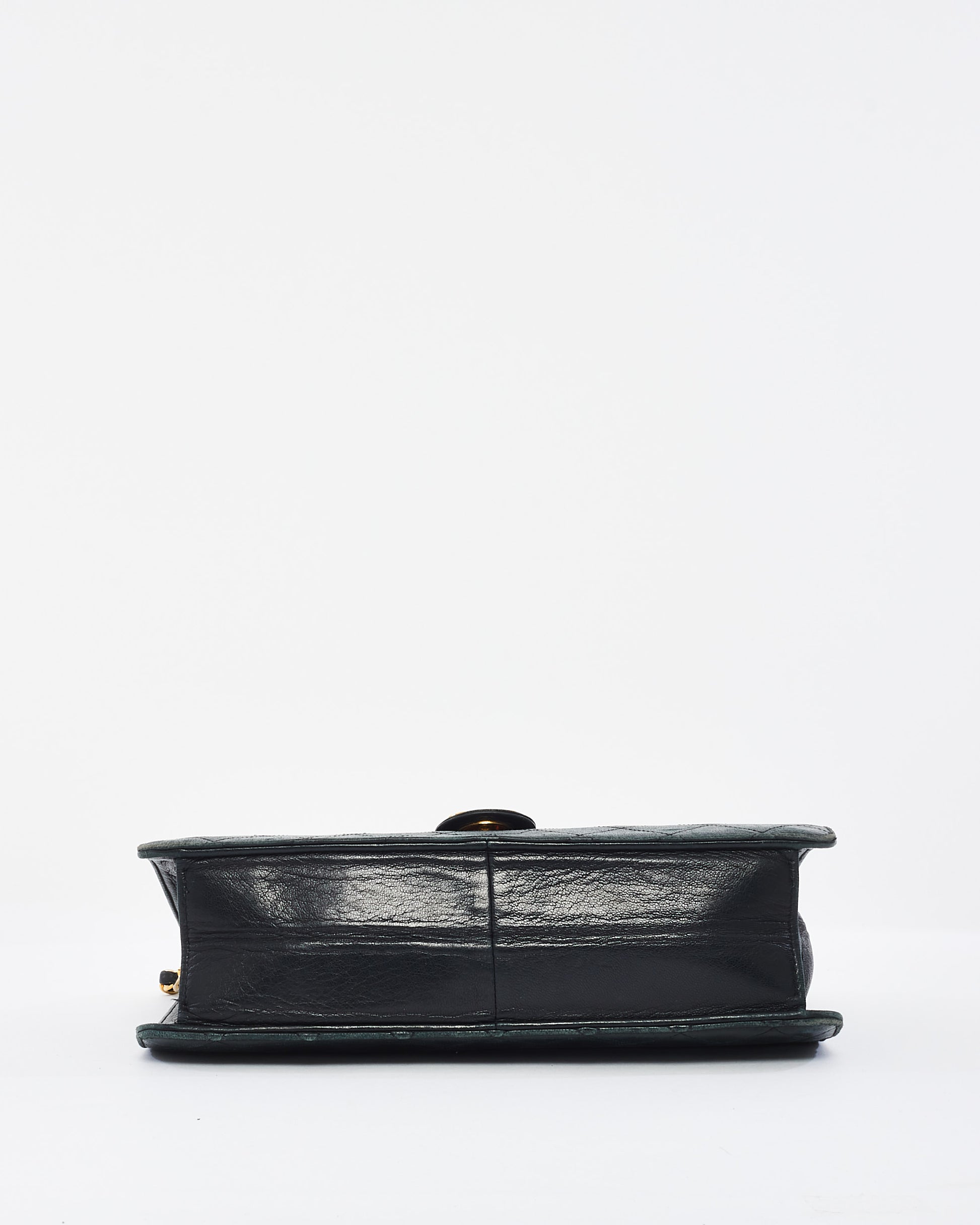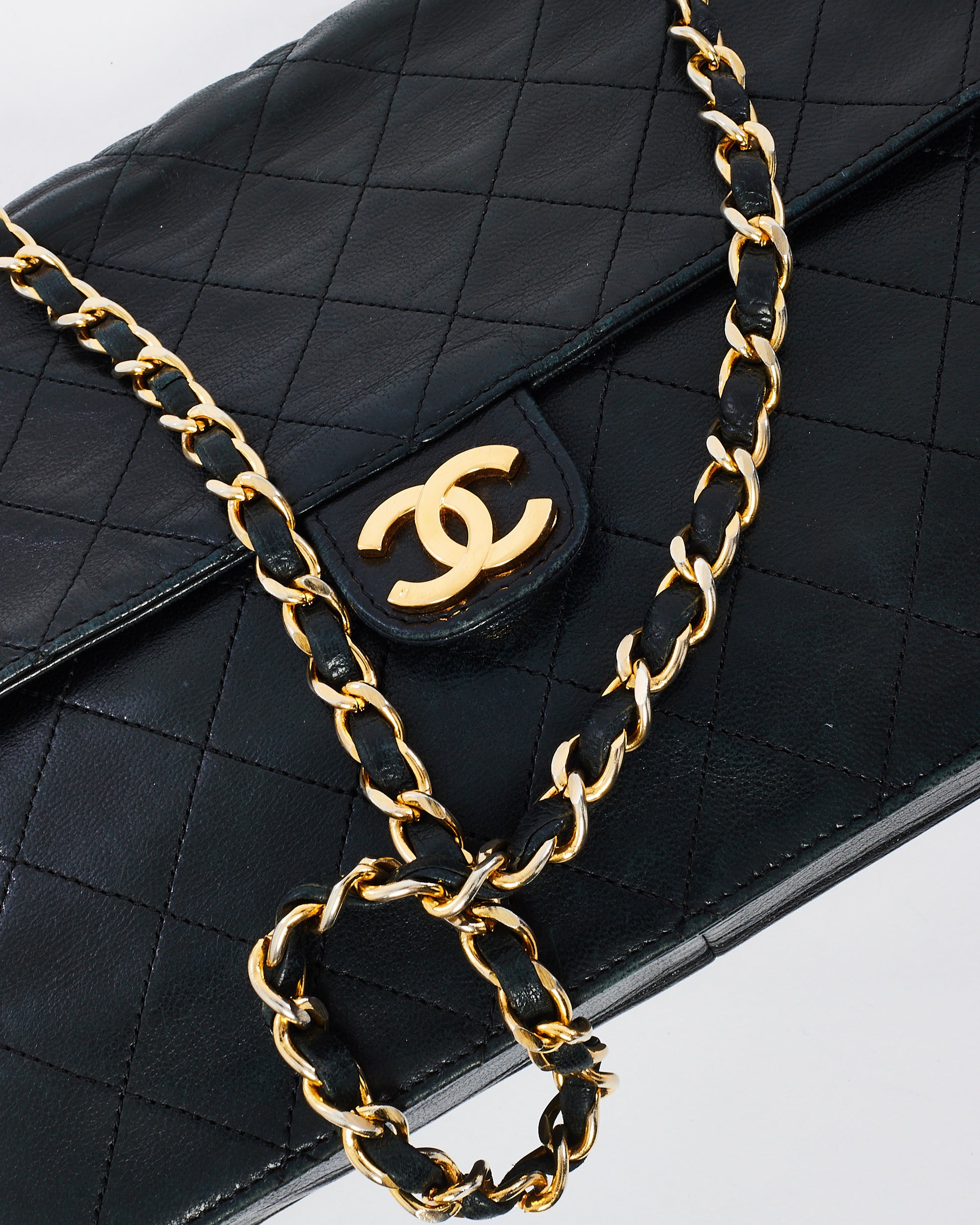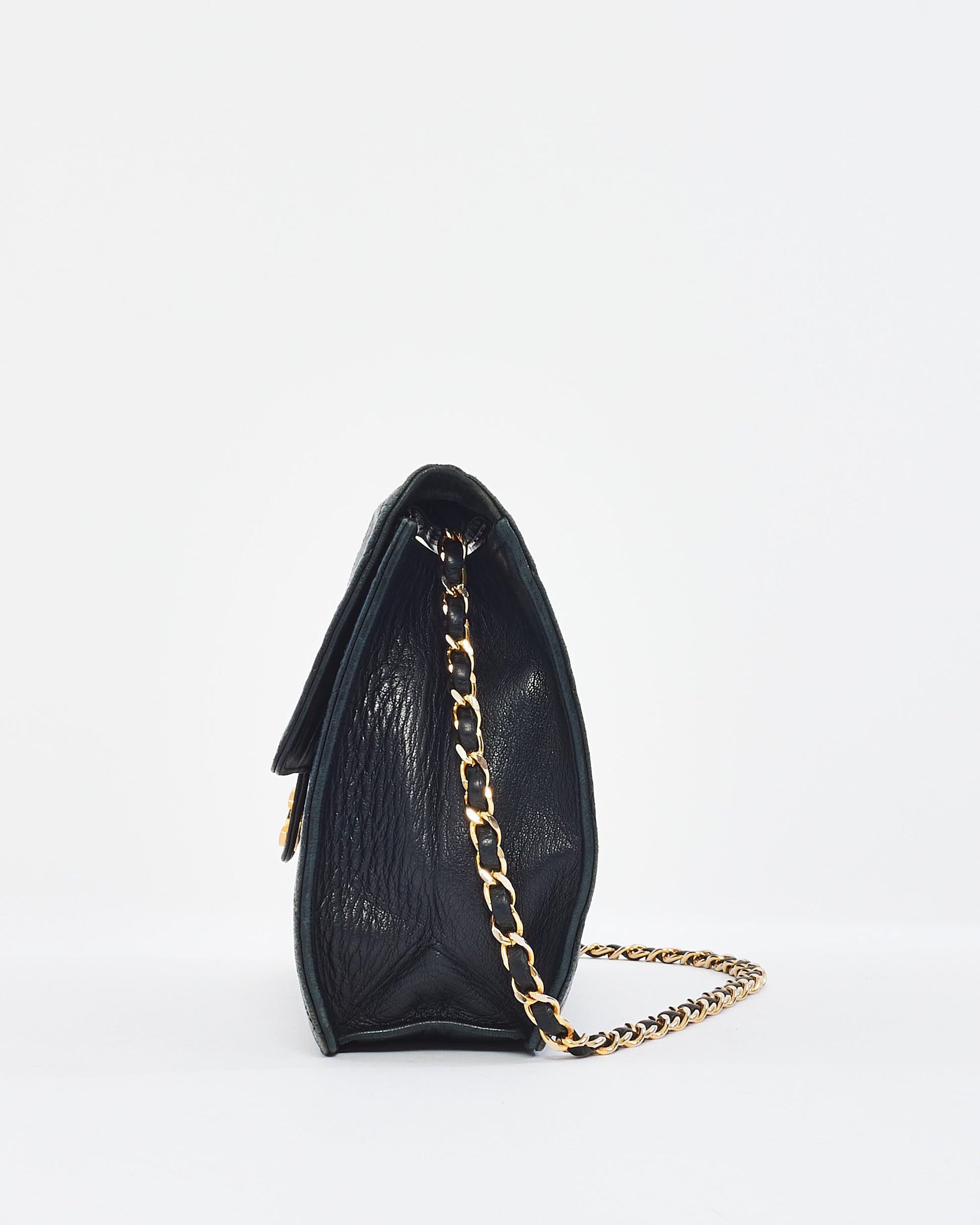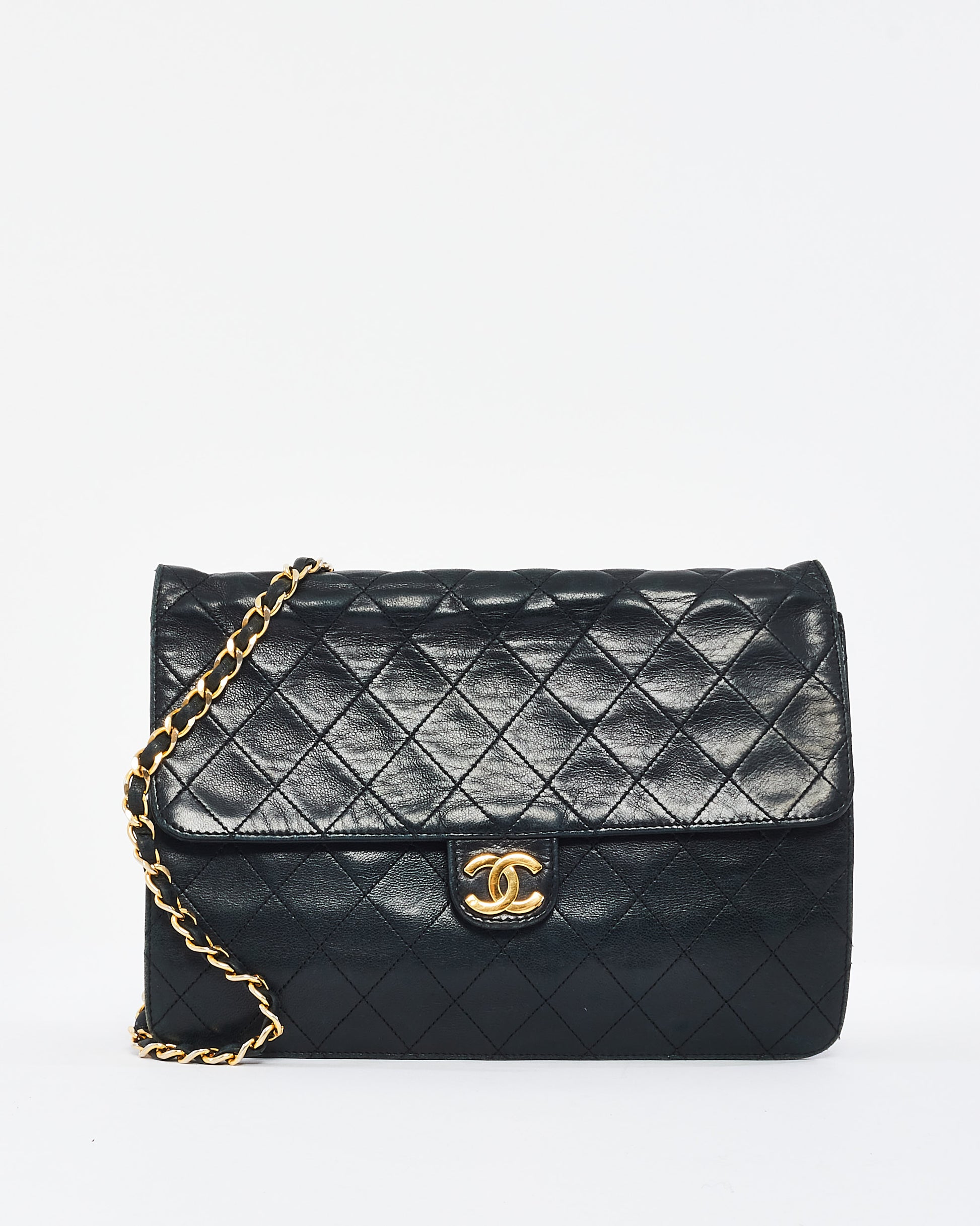 Sac à rabat simple en cuir d'agneau matelassé noir vintage