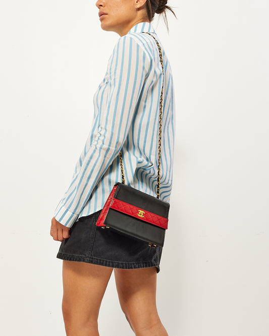 Sac à bandoulière trapèze en cuir noir et rouge vintage
