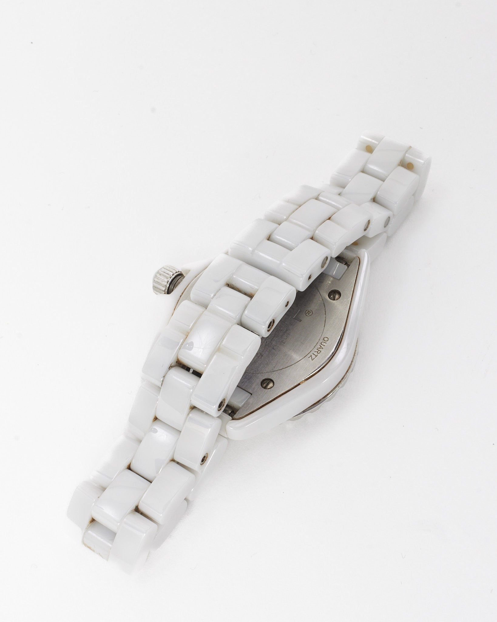 Elevate your timepiece collection with this pre-loved authentic Chanel J12 watch, crafted from high-gloss white ceramic for a sleek, modern finish. This 33mm model features a polished unidirectional bezel and a luminous dial accented with diamond hour markers for a subtle touch of luxury. A scratch-resistant sapphire crystal and Swiss quartz movement ensure long-lasting precision and durability. Finished with a concealed deployment clasp and stainless steel accents, this iconic J12 blends sporty elegance with timeless Chanel refinement.