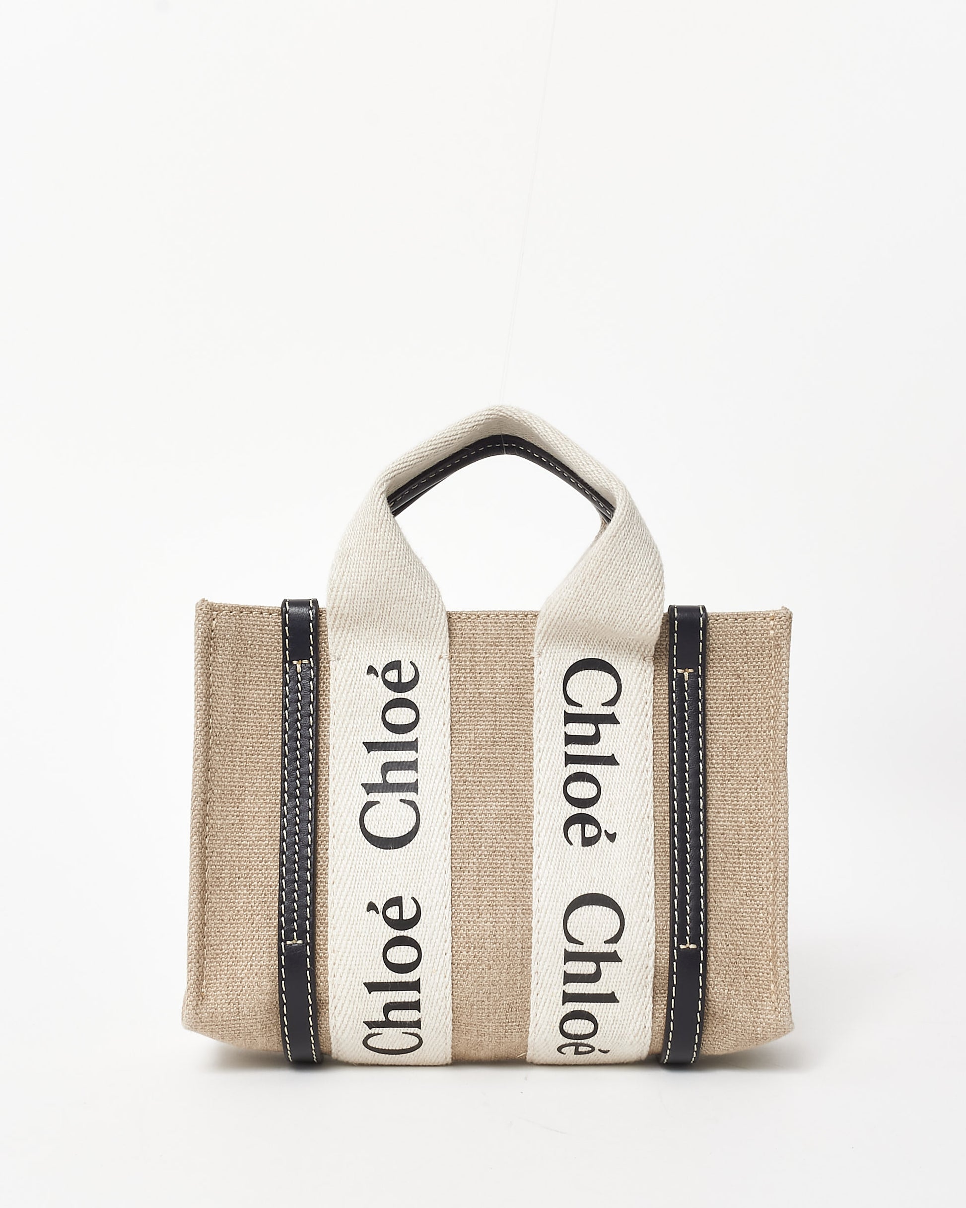 Effortlessly chic and delightfully versatile, this authentic pre-owned Chloé Canvas Mini Woody Crossbody Tote Bag is the epitome of understated elegance. Crafted from durable canvas, this petite tote features the brand’s signature “Chloé” logo-embroidered straps, offering a playful yet refined touch to its minimalistic design.