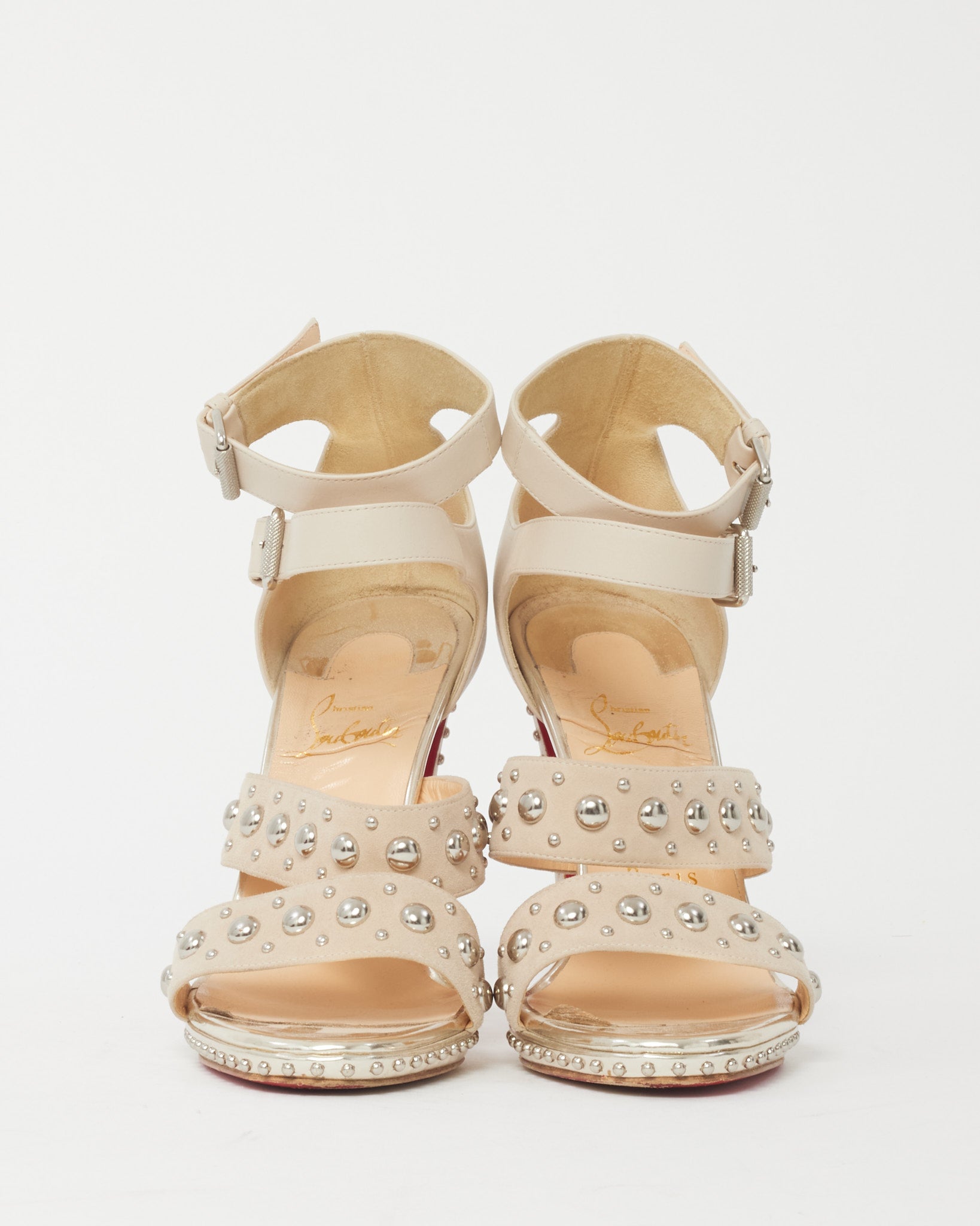 Beige Leather and Suede Decodeme Studded 120mm Platform Sandals - 37