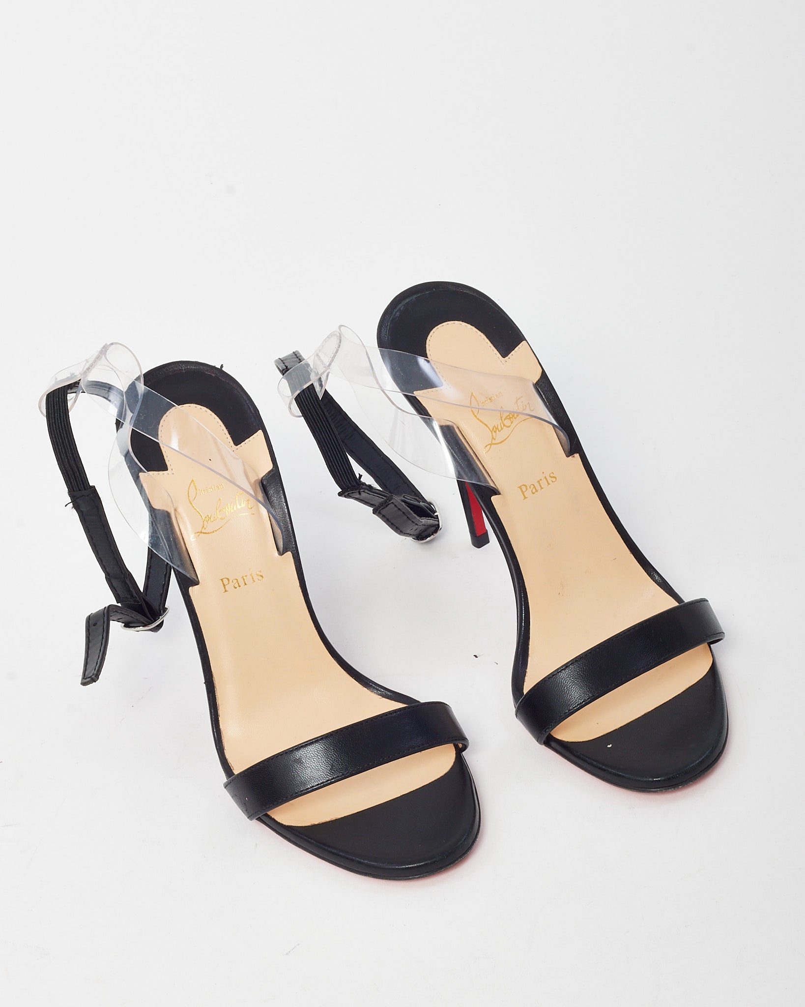 Step into modern elegance with these pre-loved authentic Christian Louboutin Jonatina sandals. Expertly crafted in sleek black leather with translucent PVC panels, these striking heels offer a barely-there illusion and a sharp, architectural edge. The 100mm stiletto heel adds confident lift, while the signature red sole completes the look with an iconic finish. Perfect for evenings out, cocktail parties, or occasions when you want your footwear to make the statement.