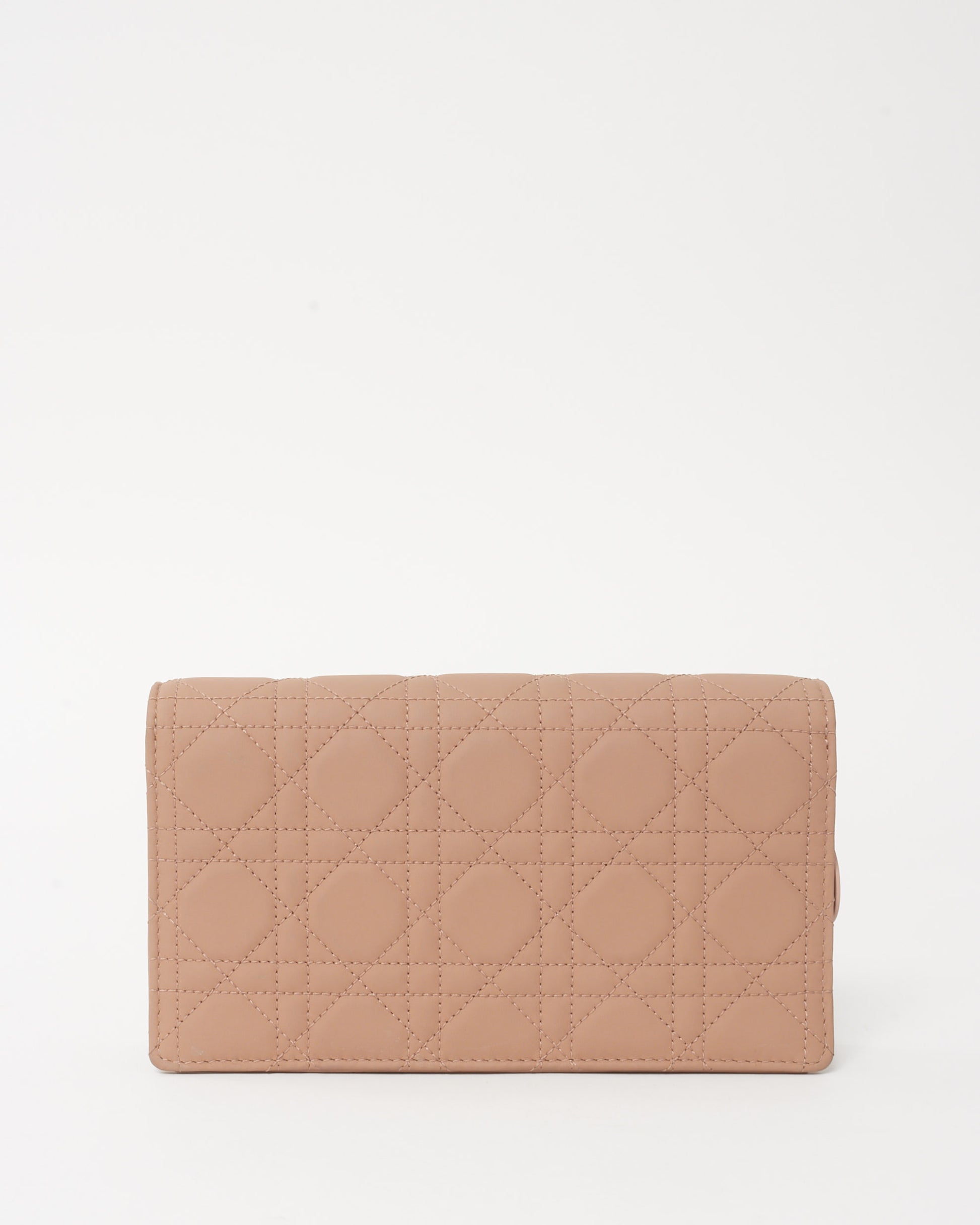 Refined and versatile, the pre-owned authentic Dior Beige Ultra Matte Cannage Leather Wallet on Chain Crossbody Bag is the perfect blend of elegance and function. Crafted from supple lambskin leather in a soft beige hue, it features Dior’s signature cannage quilting and a tone-on-tone ultra matte finish, giving it a modern, monochromatic appeal.