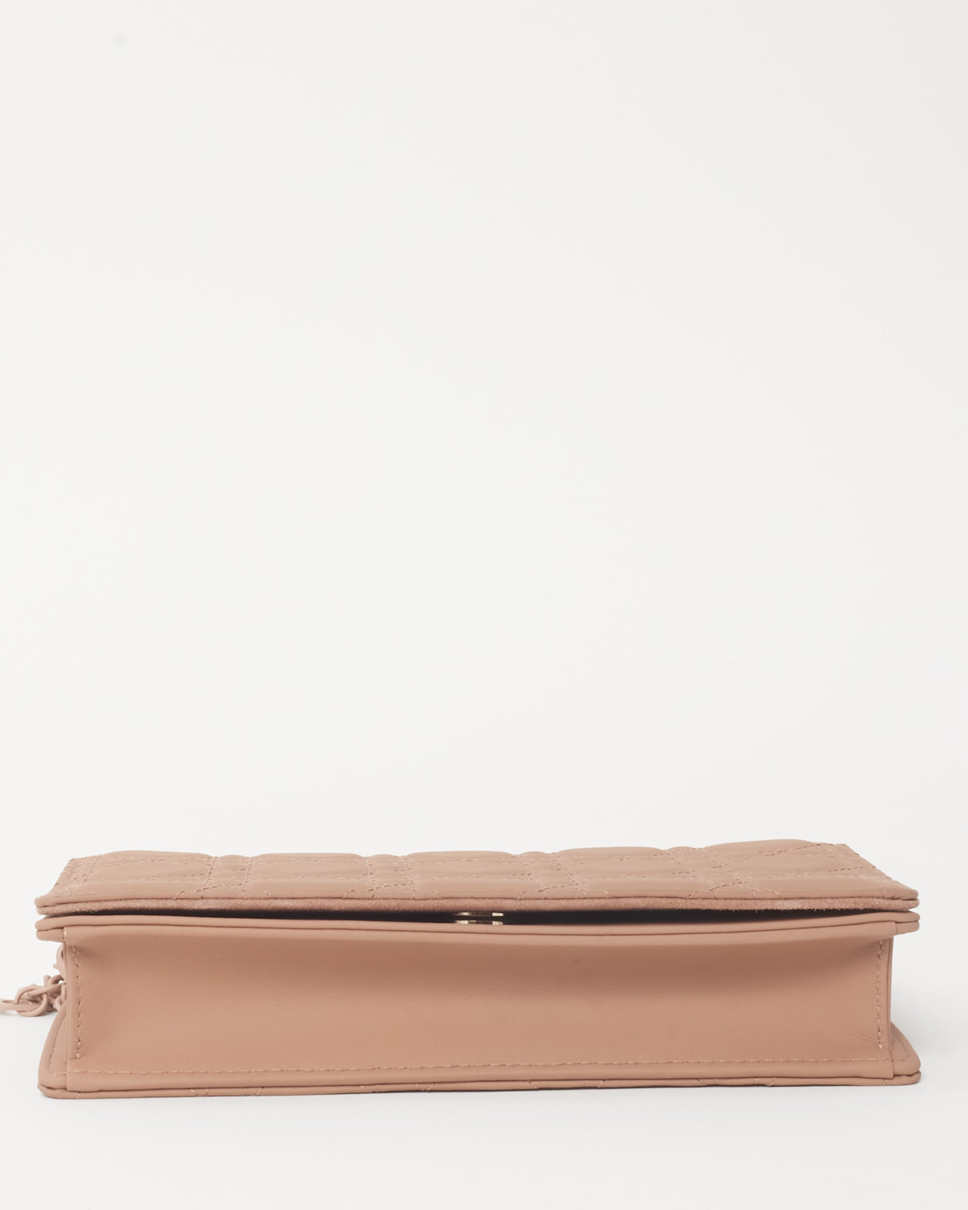 Beige Ultra Matte Cannage Leather Wallet on Chain Crossbody Bag