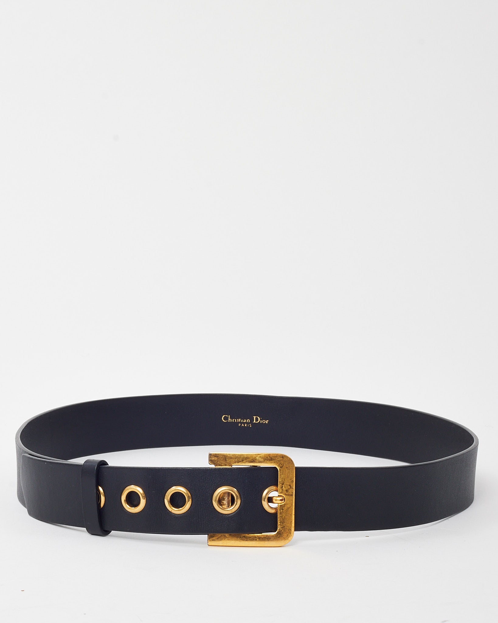 Add a bold finishing touch to your wardrobe with this pre-loved authentic Dior Black Leather Gold D DiorQuake Belt in size 90. Crafted from smooth black calfskin leather, this statement accessory features a striking gold-tone ‘D’ buckle inspired by the DiorQuake collection. The wide silhouette and clean lines offer modern structure, while the adjustable design ensures a comfortable, customized fit. Perfect for cinching dresses or elevating tailored looks with signature Dior elegance.