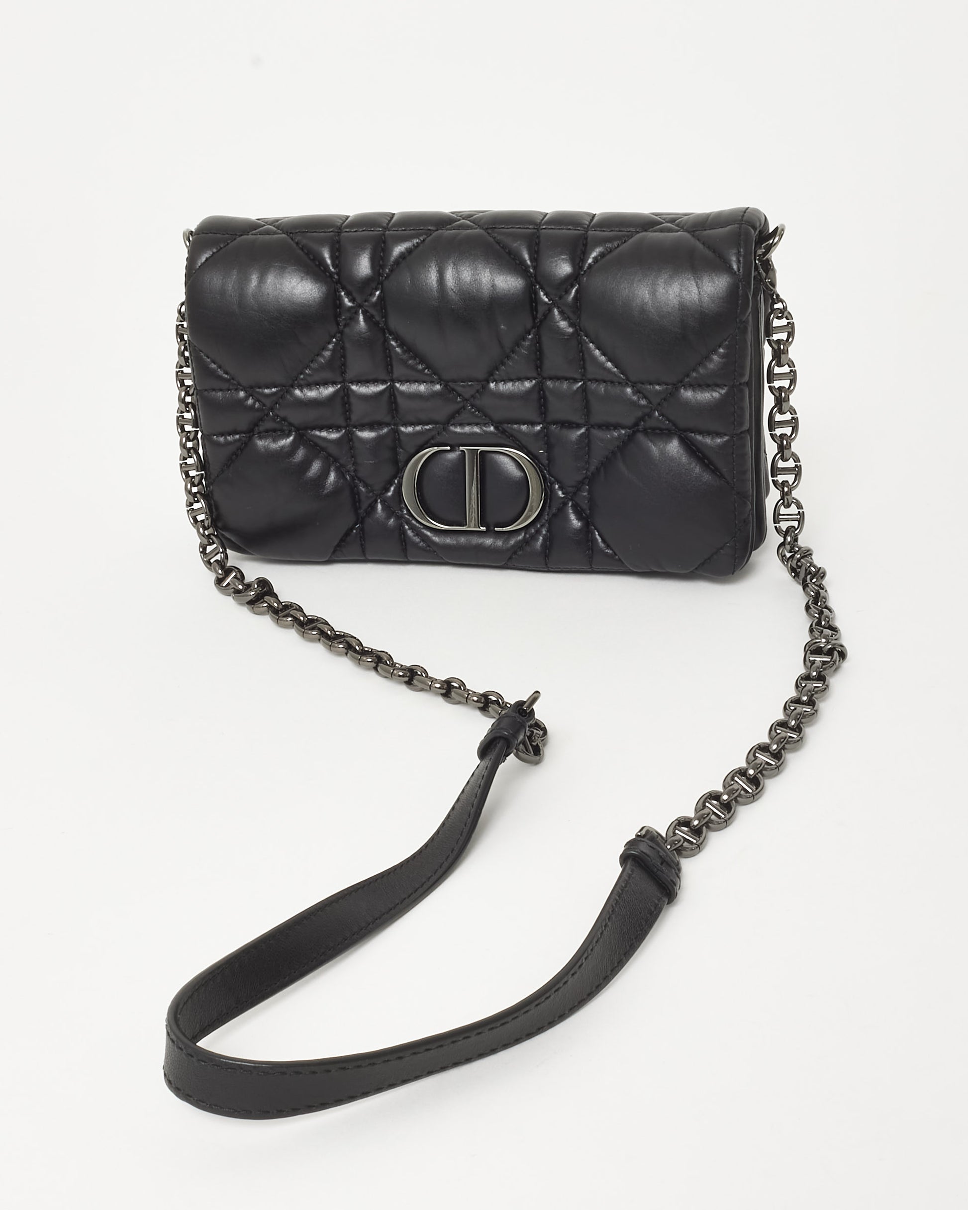 Chic, compact, and undeniably elegant, the pre-owned authentic Dior Black Macrocannage Leather Mini Caro Crossbody Bag is a refined take on modern luxury. Crafted from smooth black calfskin leather, this mini bag features the bold and graphic Macrocannage quilting, a contemporary nod to Dior’s heritage stitching.