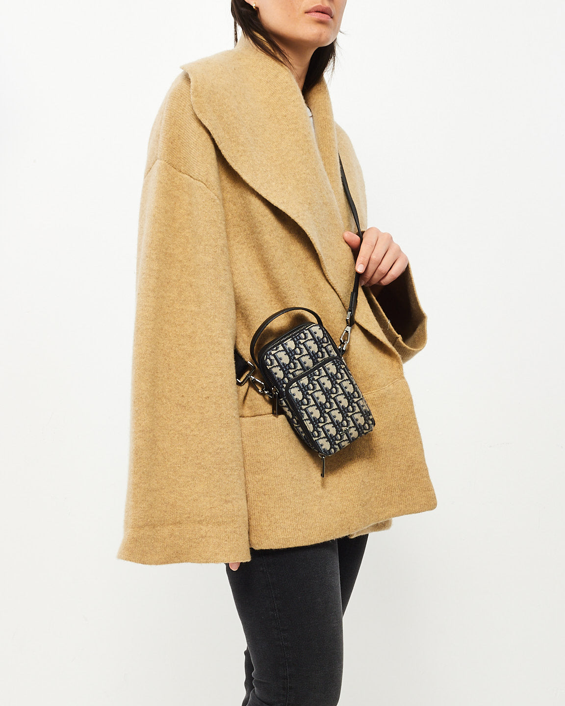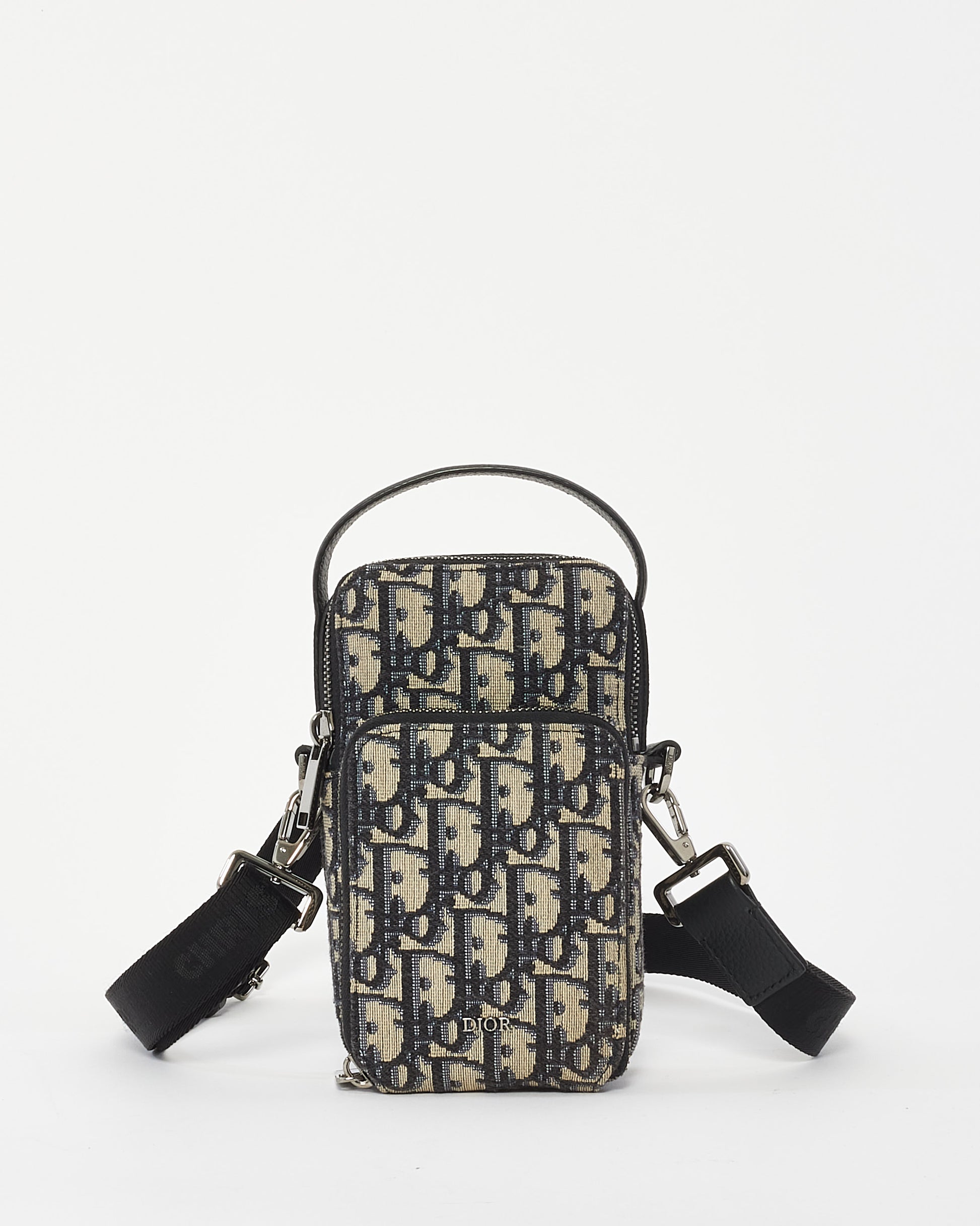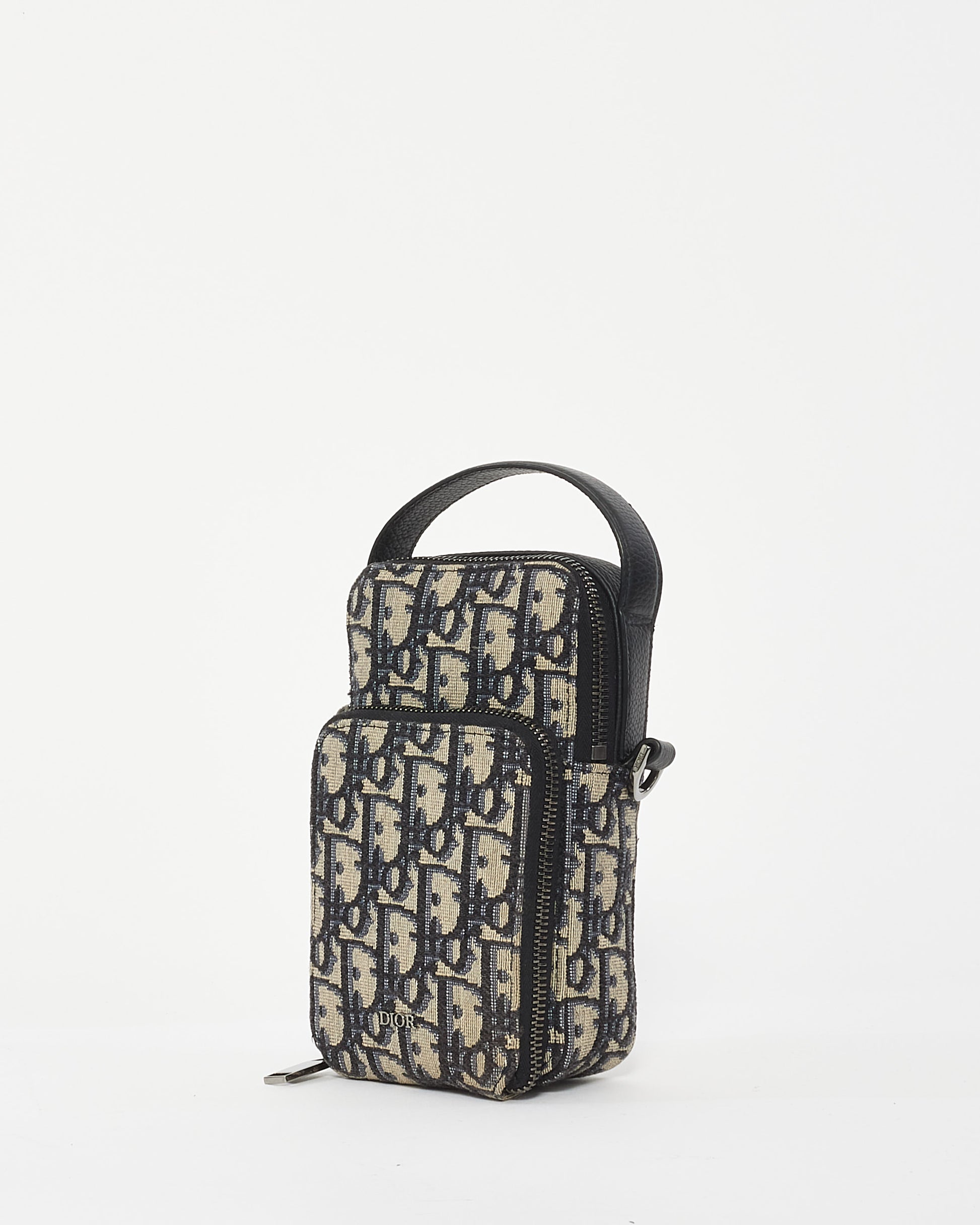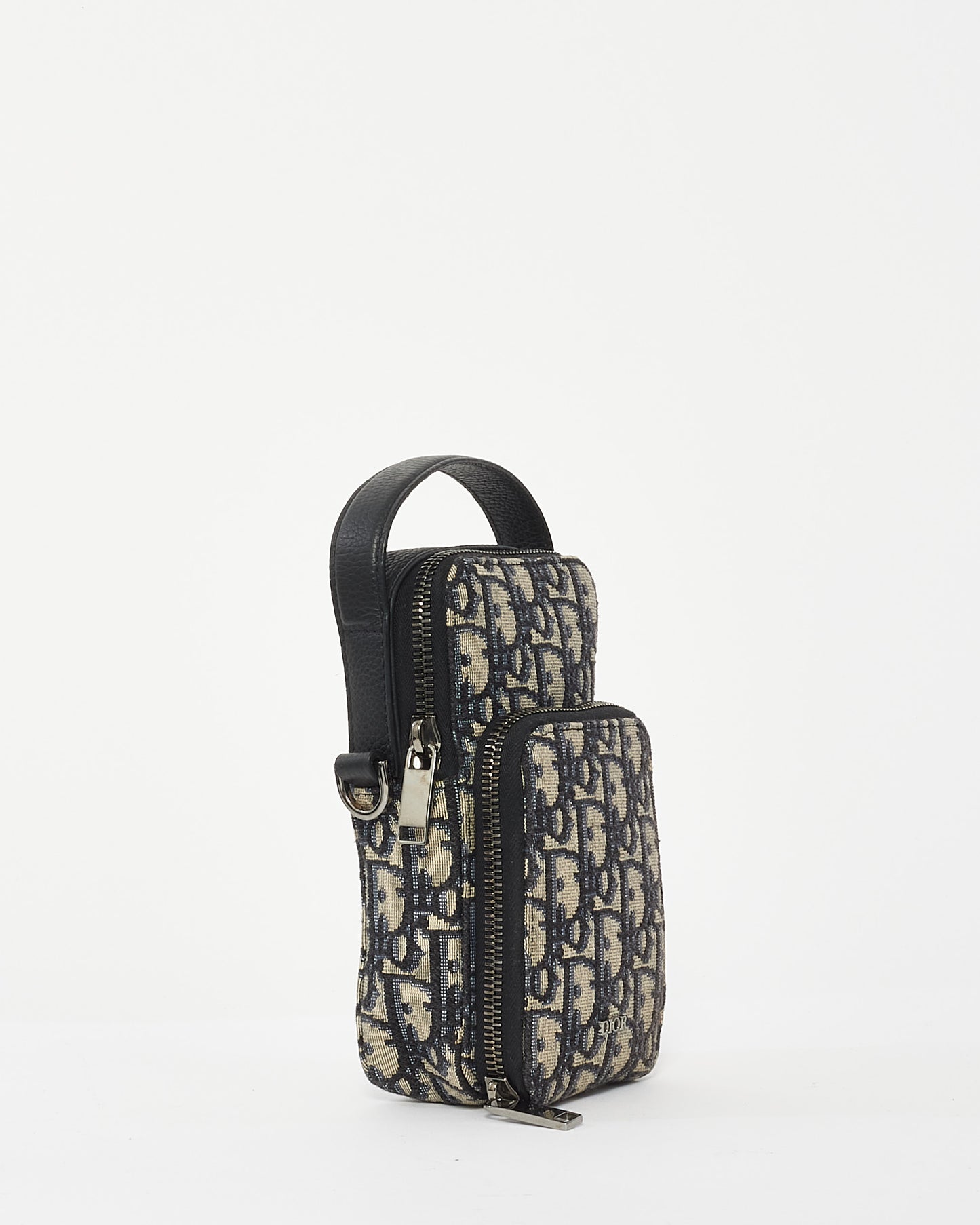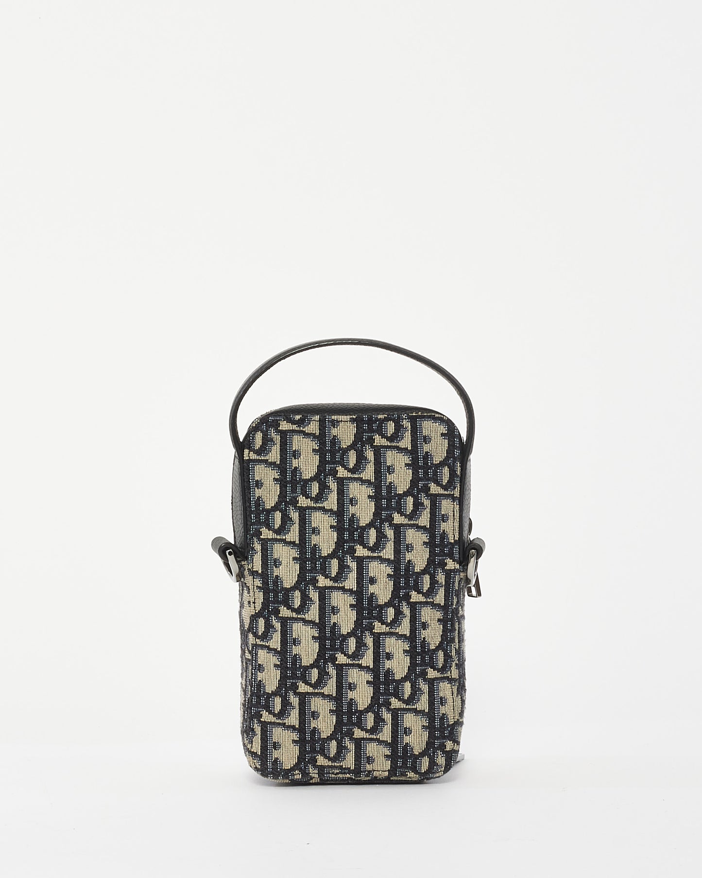 Navy Blue Oblique Canvas Micro Rider Crossbody Bag