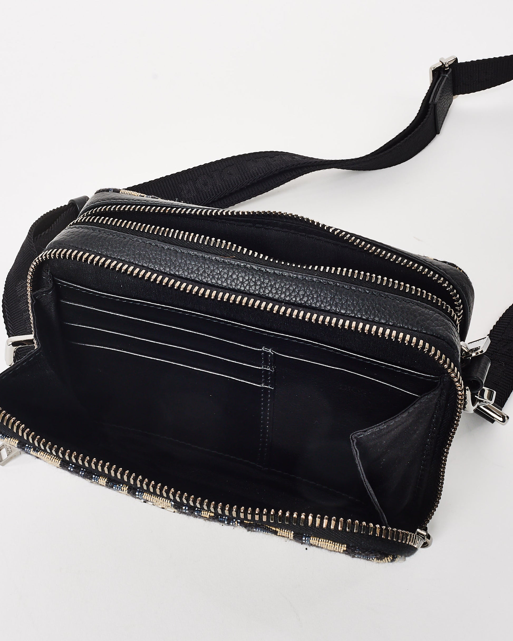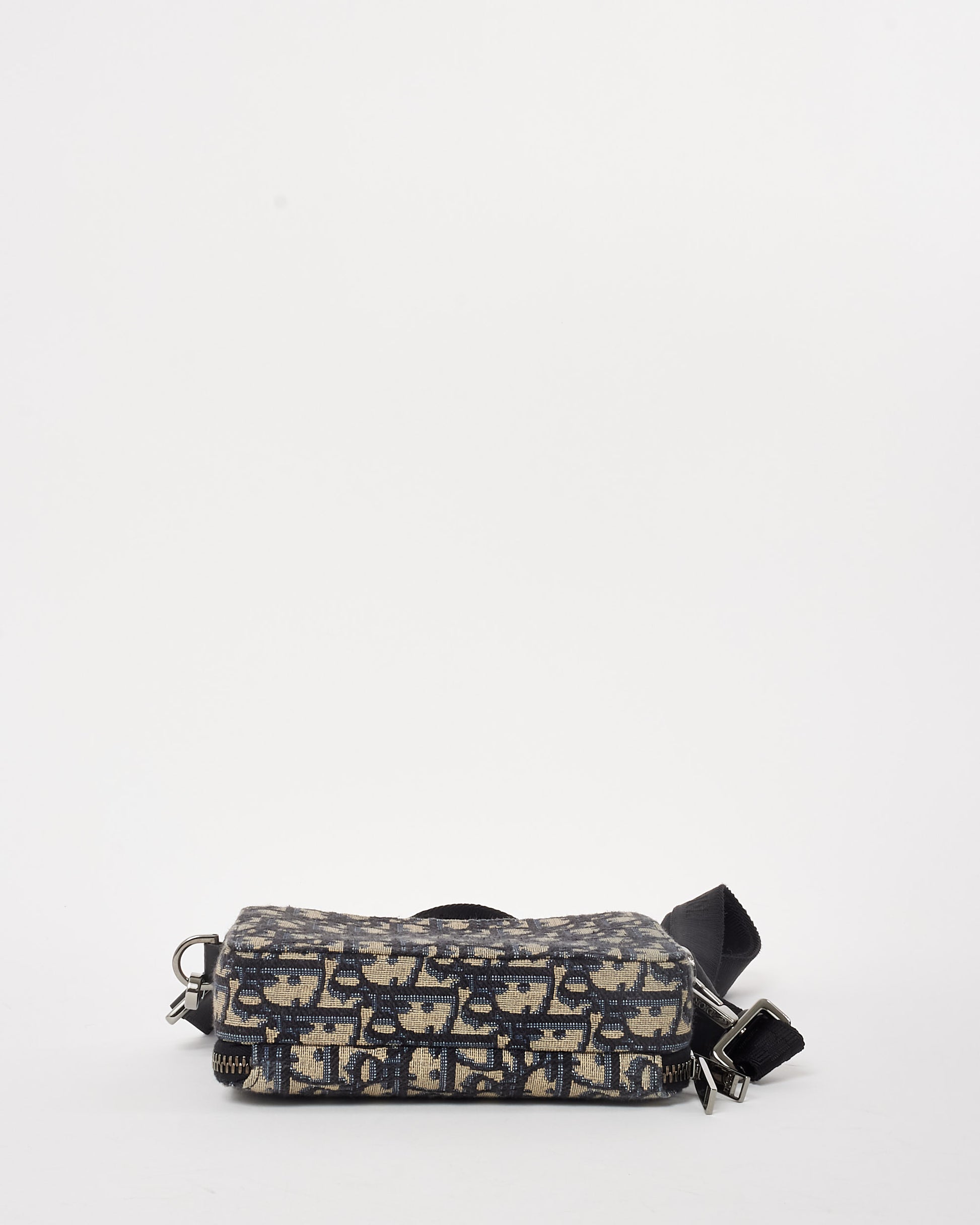 Navy Oblique Jacquard Canvas Zipped Pouch with Strap Crossbody Bag