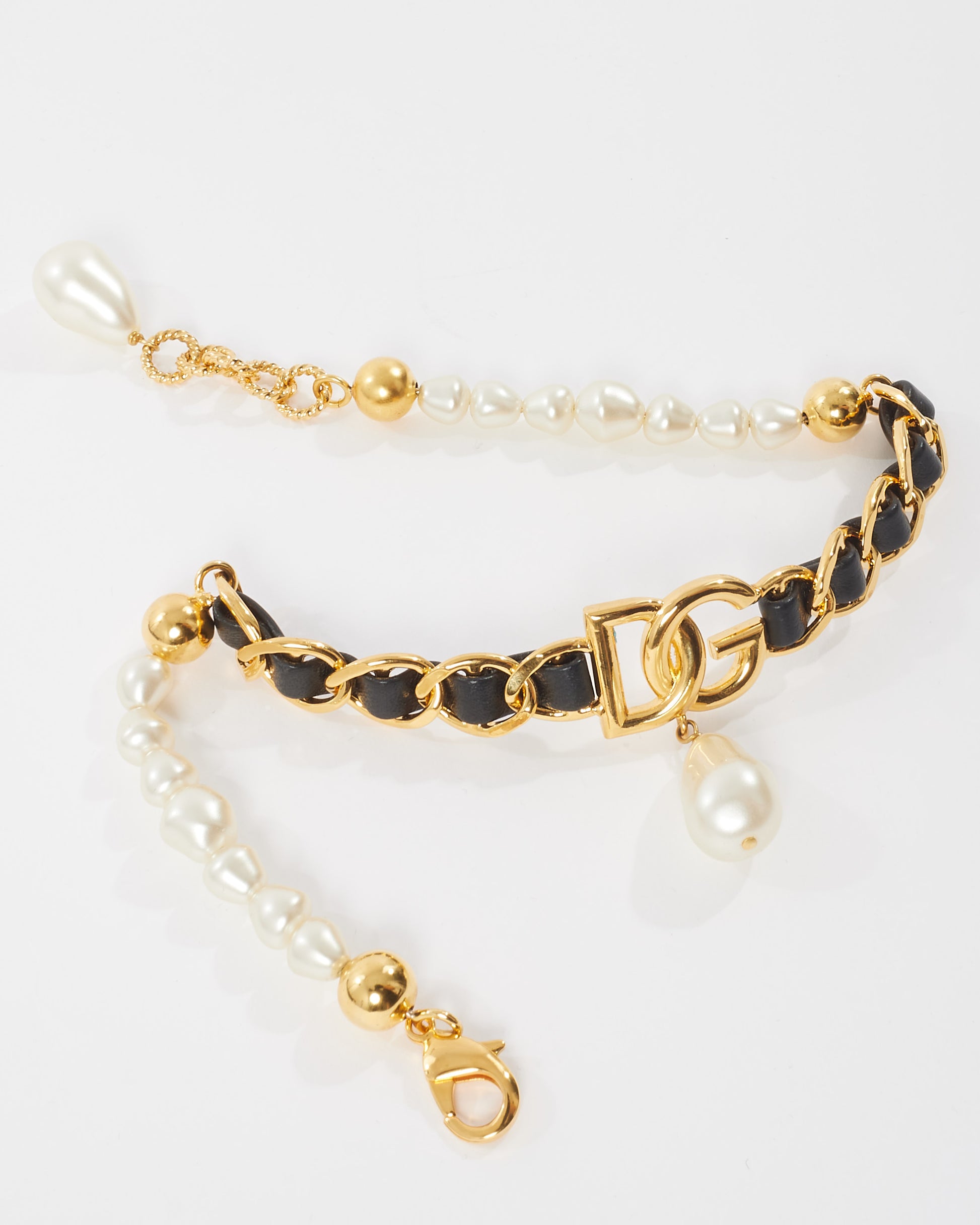 Explore Dolce & Gabbana 's exquisite collection of Jewelry, featuring this certified pre-owned Gold Leather and Pearl Logo Pearl Dangle Choker Necklace. Embodying timeless elegance and modern sustainability, each piece, including favorites like this, is authenticated by Retyche. Discover sustainable luxury — shop our current treasures or find inspiration for your next coveted find.
